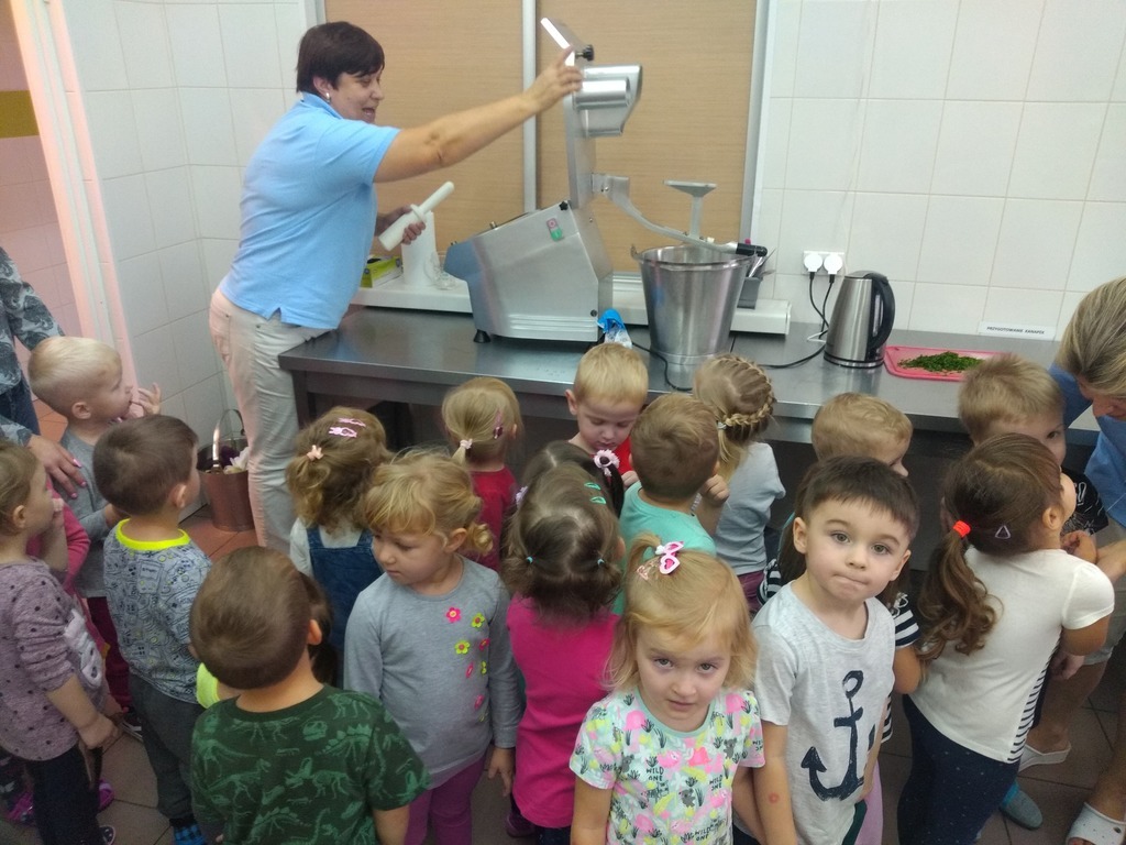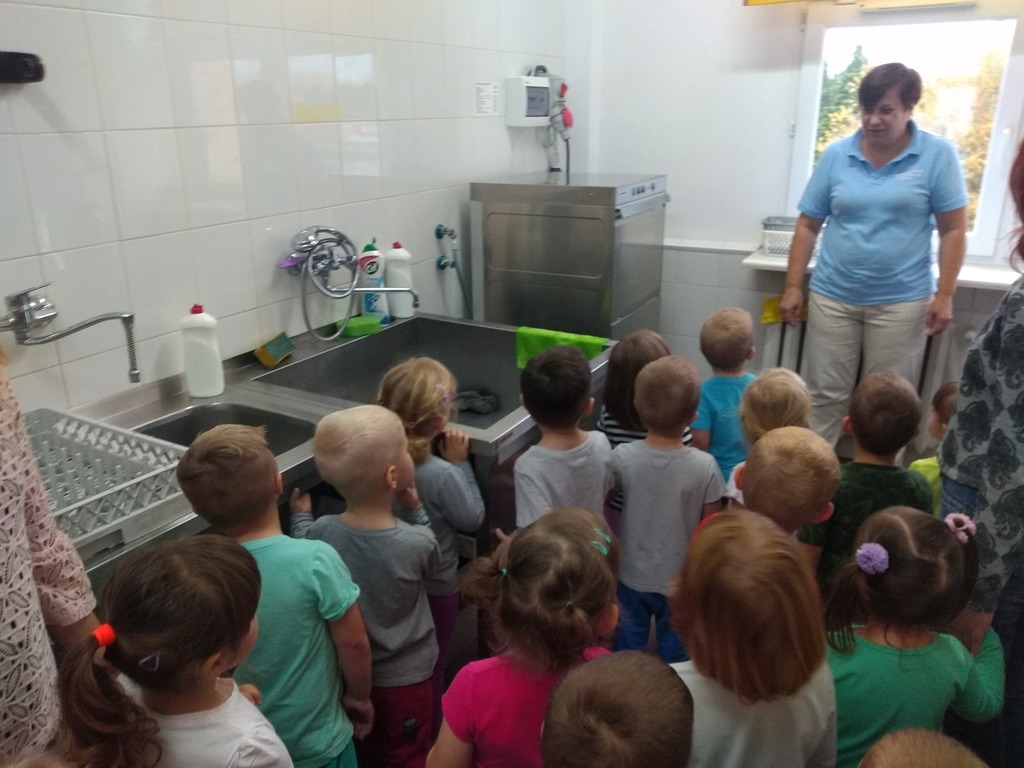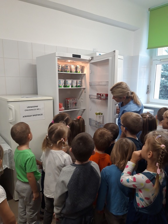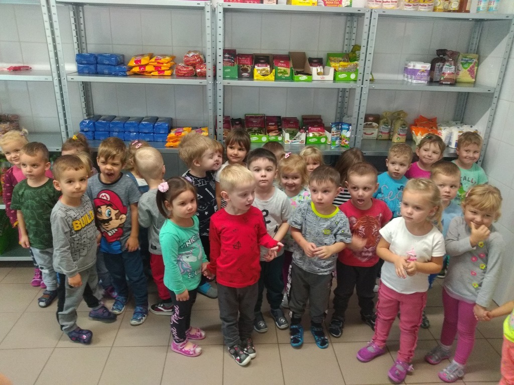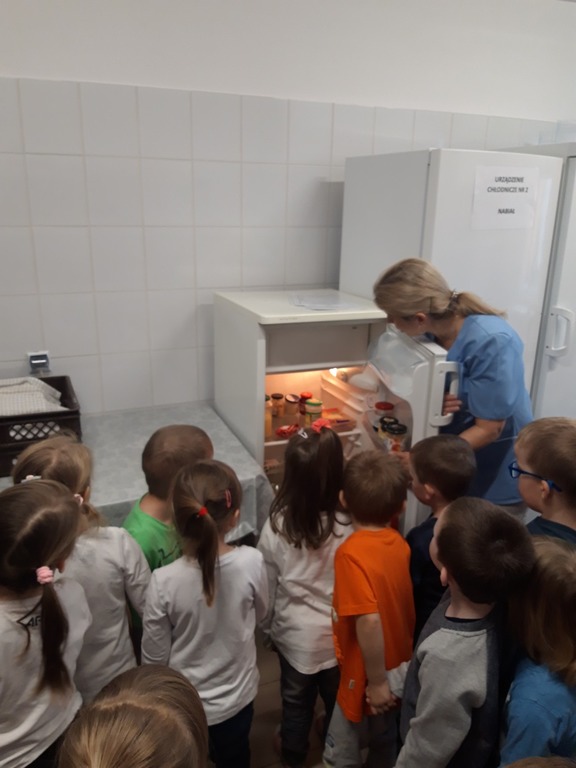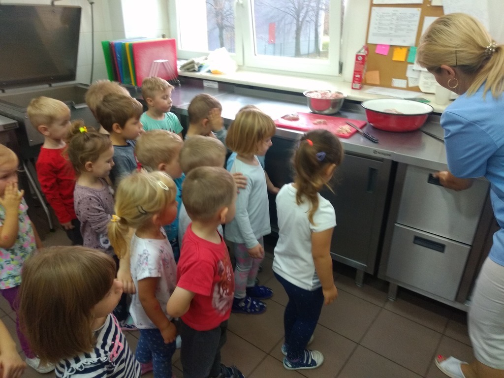 Dzieci z grupy „Jagódki” , „Krasnoludki”, „Biedronki” i „Pszczółki” w dniu 13 listopada 2019 roku odwiedziły przedszkolną kuchnię. Przedszkolaki zostały bardzo miło przywitane przez panie kucharki i oprowadzone po kuchni. Panie zapoznały dzieci ze sprzętami, których używa się do przygotowania smacznych posiłków. Dużą radością dla przedszkolaków było oglądanie ogromnych garnków, łyżek oraz innych akcesoriów niezbędnych w pracy kucharza. Dzieci z niezwykłym zaciekawieniem zwiedzały kuchnię zadając wiele pytań. Na zakończenie panie kucharki poczęstowały przedszkolaków zdrową przekąską.