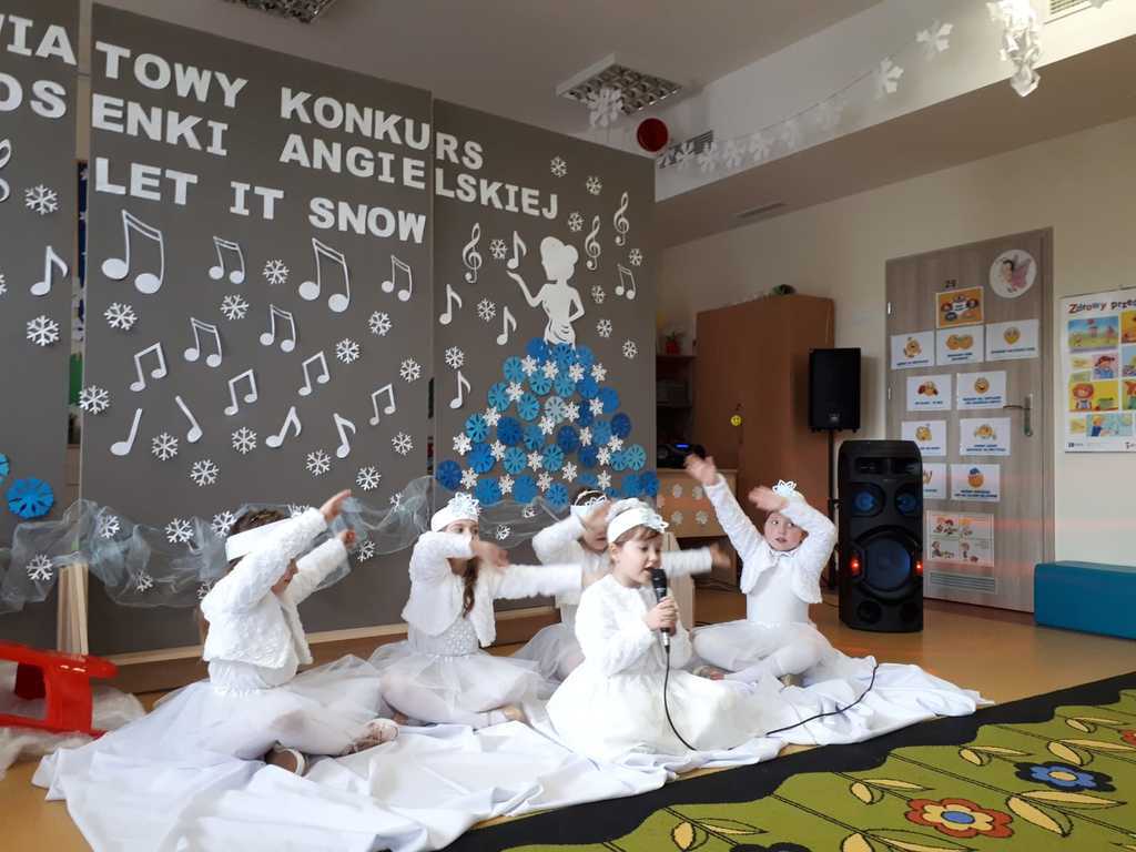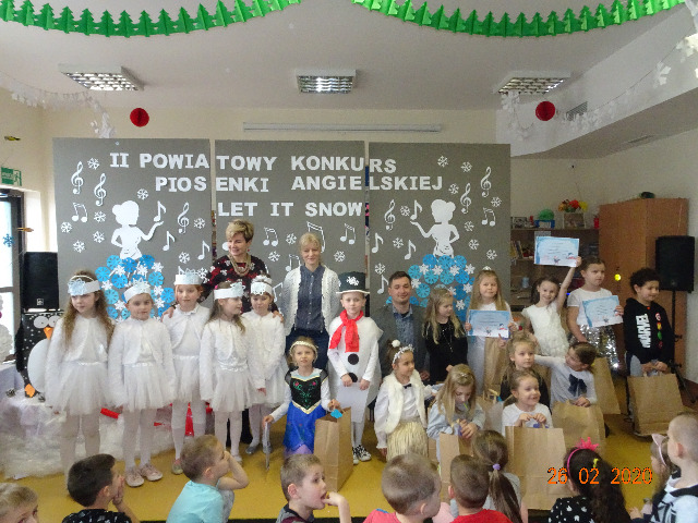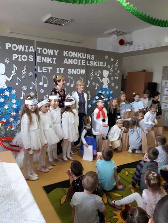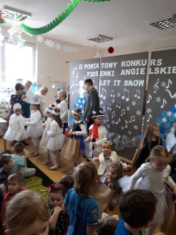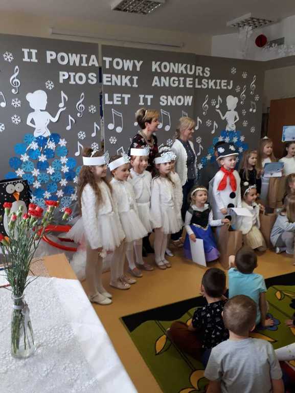 Dnia 26 lutego w Wolanowie odbył się Powiatowy Konkurs Piosenki Angielskiej "Let it snow". Organizatorem konkursu było Samorządowe Publiczne Przedszkole w Wolanowie. Nasze przedszkole reprezentowały dziewczynki z grupy "Leśne Duszki": Zuzanna Ciulkin, Gabrysia Nobis, Dorota Nowakowska oraz Hana Zaborska, które zaprezentowały się w utworze pt:, "Snow flakes" zdobywając wyróżnienie. Serdecznie dziękujemy organizatorom za przygotowanie wspaniałego konkursu dzięki, któremu dzieci mogły na wspaniałej zimowej scenie, wokół płatków sniegu zaprezentować piękne piosenki angielskie. Mali wokaliści pokazali nie tylko talent wokalny i muzyczy ale także taneczny. Wszystkim uczestniom serdecznie gratulujemy i życzymy dalszych sukcesów.