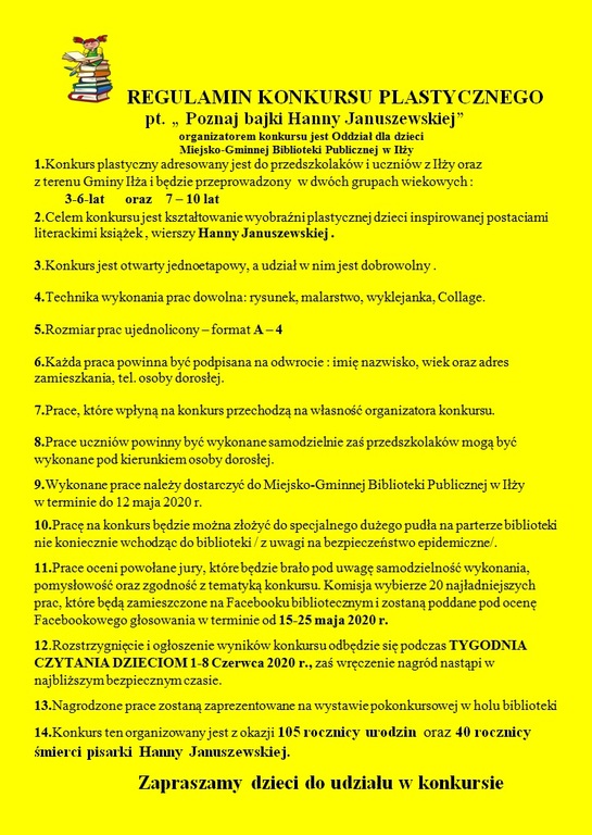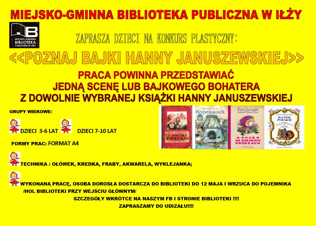 Zachęcamy wszystkie dzieci do udziału w konkursie plastycznym organizowanym przez Miejsko- Gminną Bibliotekę w Iłży.