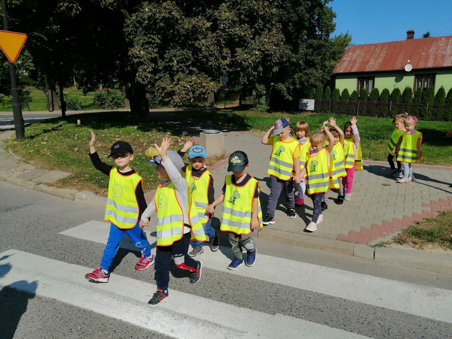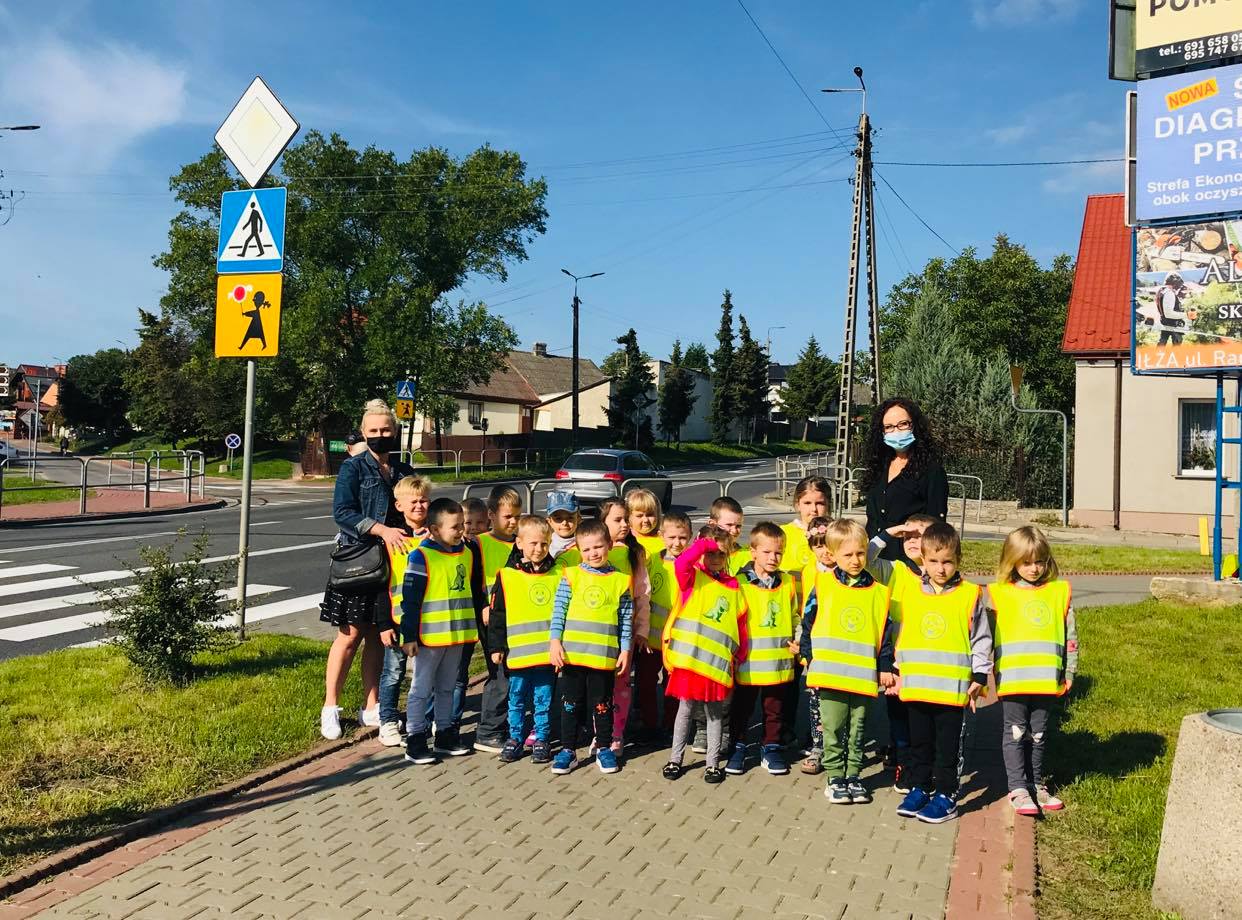 W ubiegłym tygodniu nasze przedszkolaki wybrały się na wycieczkę na pobliskie skrzyżowanie. Celem wycieczki było przypomnienie zasad ruchu drogowego, jak również zaobserwowanie zachowania pieszych i kierowców. Dzieci z uwagą obserwowały ruch uliczny, nazywały pojazdy oraz poznane znaki drogowe.