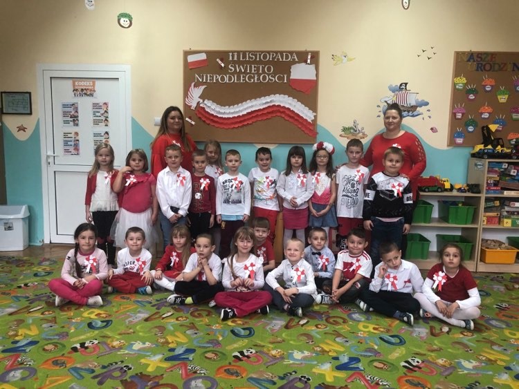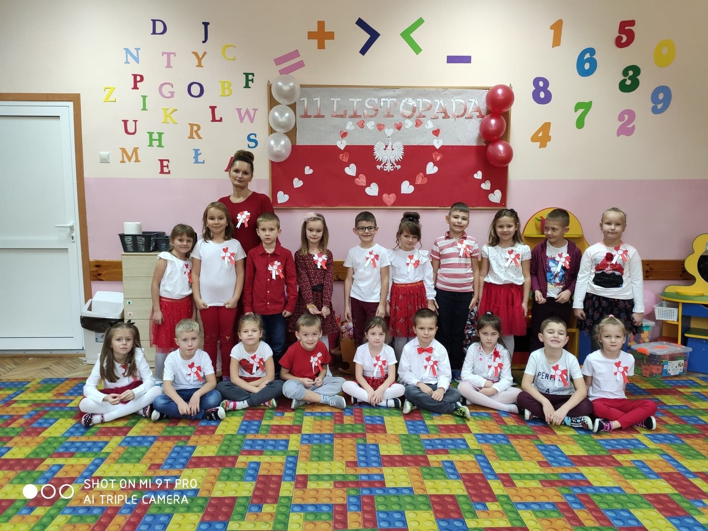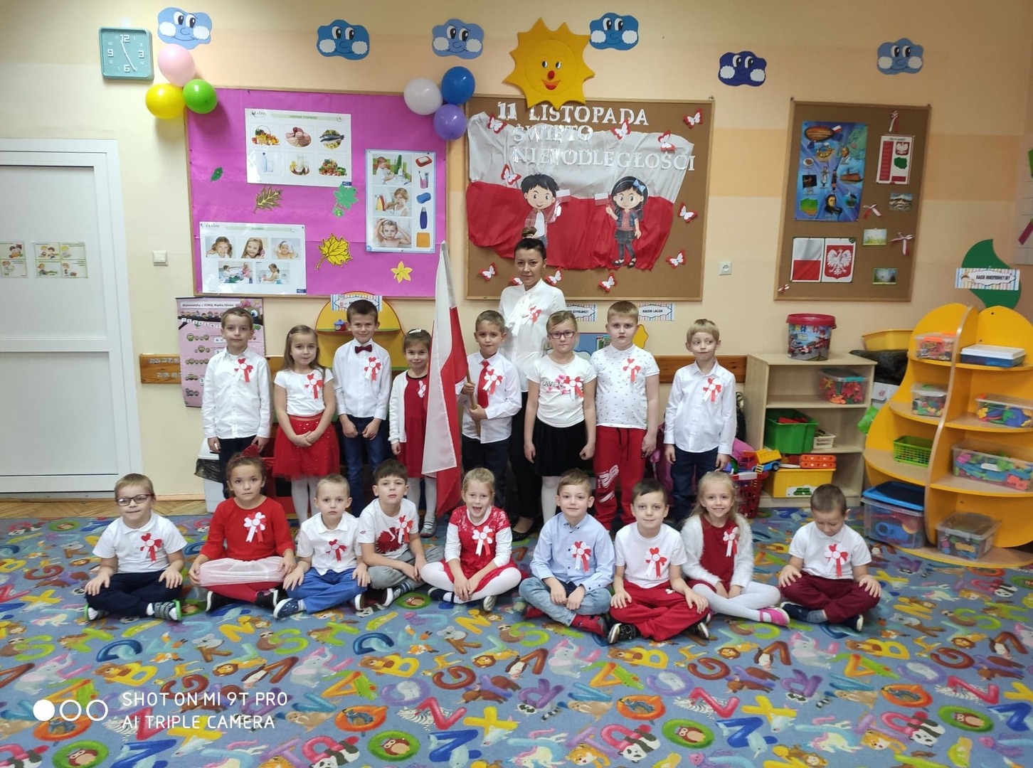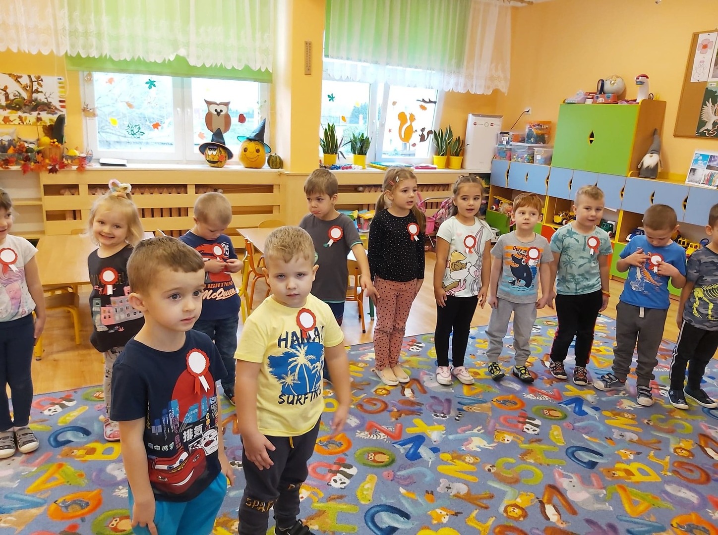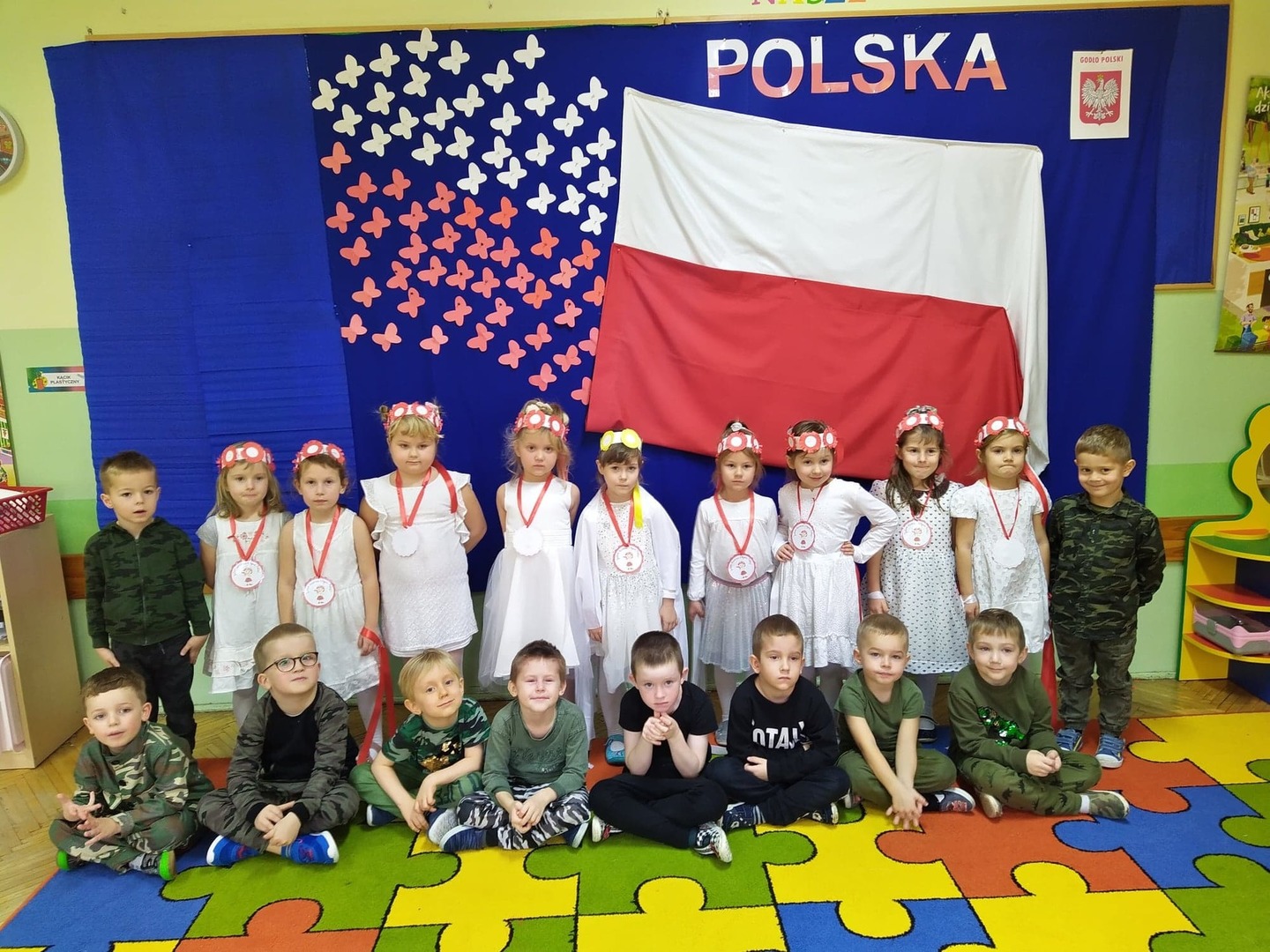 Dzień 11 listopada to jedna z najważniejszych dat w historii naszej Ojczyzny. Po wieloletniej niewoli Polska odzyskała niepodległość. W przedszkolu od najmłodszych lat uczymy dzieci patriotyzmu, przywiązania do swojej Ojczyzny, do ziemi rodzinnej, wpajamy szacunek dla polskich symboli. Dlatego też, pielęgnując polskie tradycje 10 listopada 2020 r. w naszym przedszkolu obchodziliśmy rocznicę odzyskania przez nasz kraj niepodległości. Wszystkie dzieci z biało - czerwonymi kotylionami uroczyście świętowały ten wyjątkowy dla Nas – Polaków dzień. Głównym celem uroczystości było kształtowanie miłości i przywiązania do kraju ojczystego, jego kultury i tradycji oraz poznanie symboli narodowych naszego kraju.