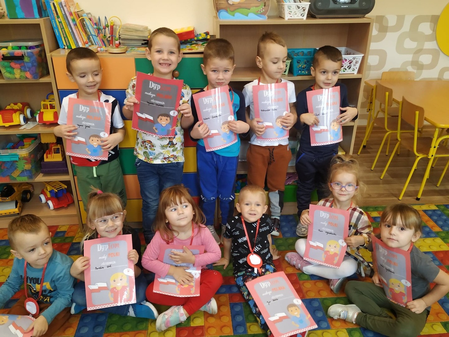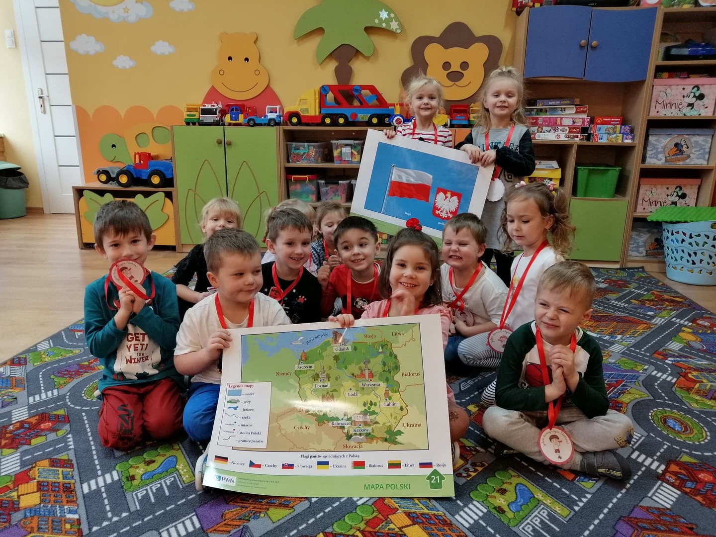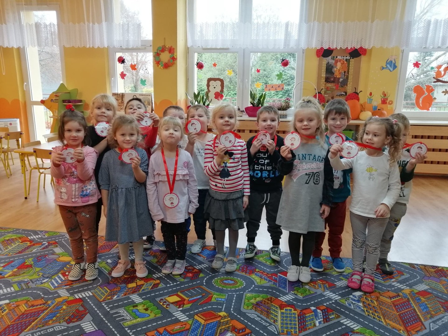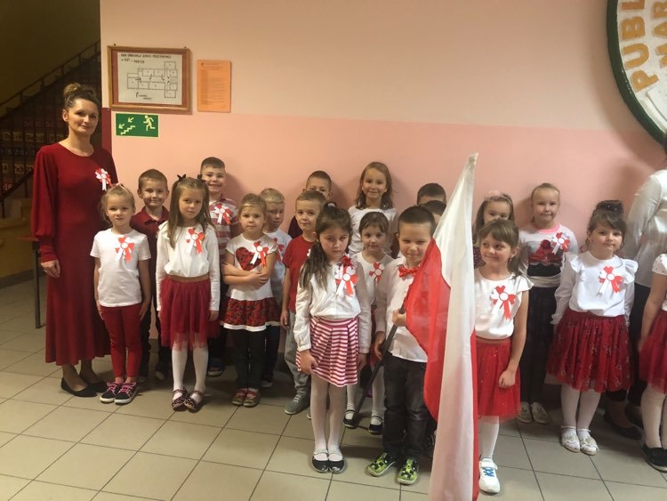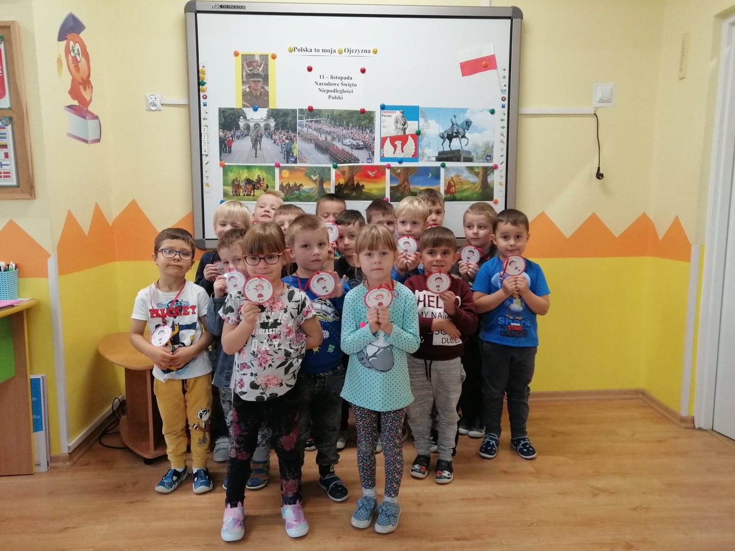 Dzień 11 listopada to jedna z najważniejszych dat w historii naszej Ojczyzny. Po wieloletniej niewoli Polska odzyskała niepodległość. W przedszkolu od najmłodszych lat uczymy dzieci patriotyzmu, przywiązania do swojej Ojczyzny, do ziemi rodzinnej, wpajamy szacunek dla polskich symboli. Dlatego też, pielęgnując polskie tradycje 10 listopada 2020 r. w naszym przedszkolu obchodziliśmy rocznicę odzyskania przez nasz kraj niepodległości. Wszystkie dzieci z biało - czerwonymi kotylionami uroczyście świętowały ten wyjątkowy dla Nas – Polaków dzień. Głównym celem uroczystości było kształtowanie miłości i przywiązania do kraju ojczystego, jego kultury i tradycji oraz poznanie symboli narodowych naszego kraju.