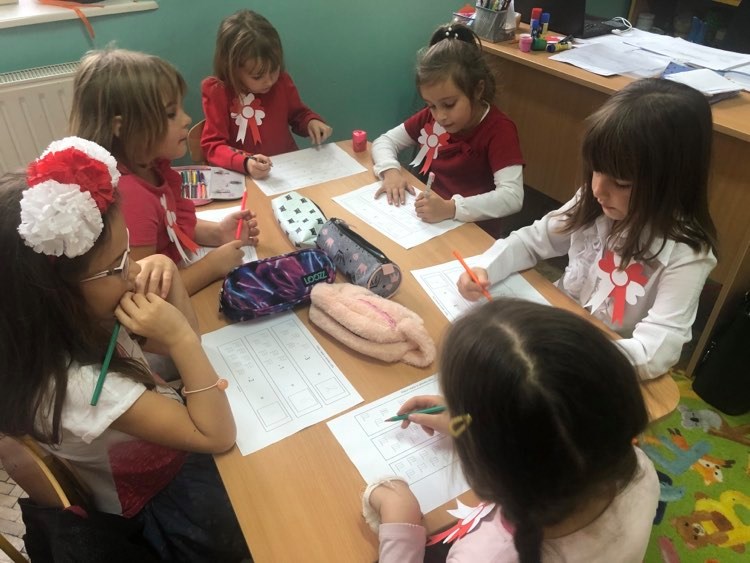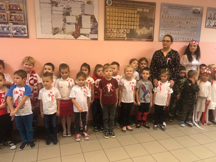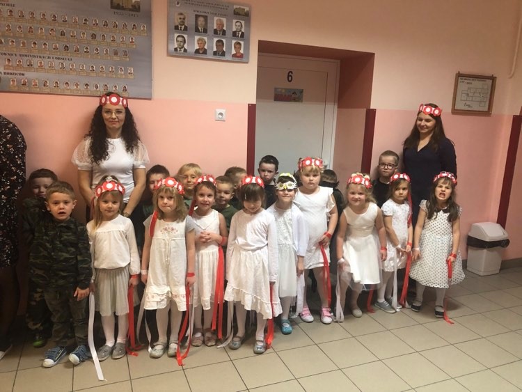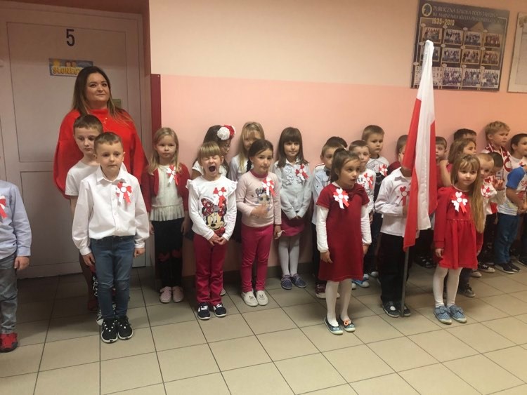 Tego dnia wzięliśmy również udział w akcji #SzkołaDoHymnu. Starszaki wraz ze swoimi wychowawczyniami dokładnie o godz. 11:11 wspólnie odśpiewały „Mazurka Dąbrowskiego” przyłączając się tym samym do placówek oświatowych z całej Polski, które w ten sposób uczciły rocznicę odzyskania Niepodległości.