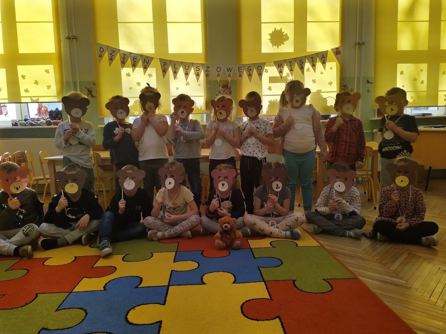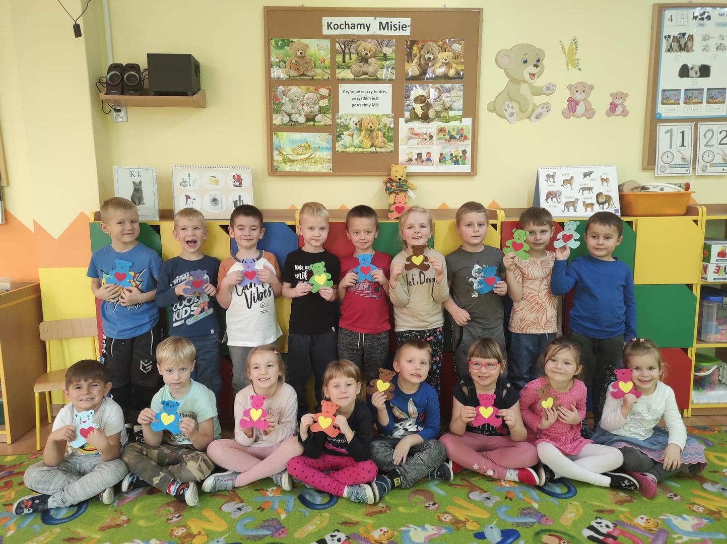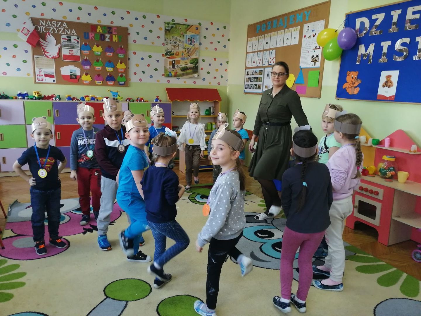 Dnia 25 listopada, w naszym przedszkolu świętowaliśmy Dzień Pluszowego Misia. Było sporo atrakcji i radości. Dzieci poznały historię pluszowego misia, dowiedziały się w jakich bajkach występują misie, obejrzały bajkę „Miś Uszatek”. Nie zabrakło tańców, wierszy, piosenek o tematyce misiowej. Przedszkolaki uczestniczyły w quizach o misiach, grach i zabawach ruchowych oraz wykonały piękne prace plastyczne. Dzieci z chęcią opowiadały o swoich ukochanych misiach.