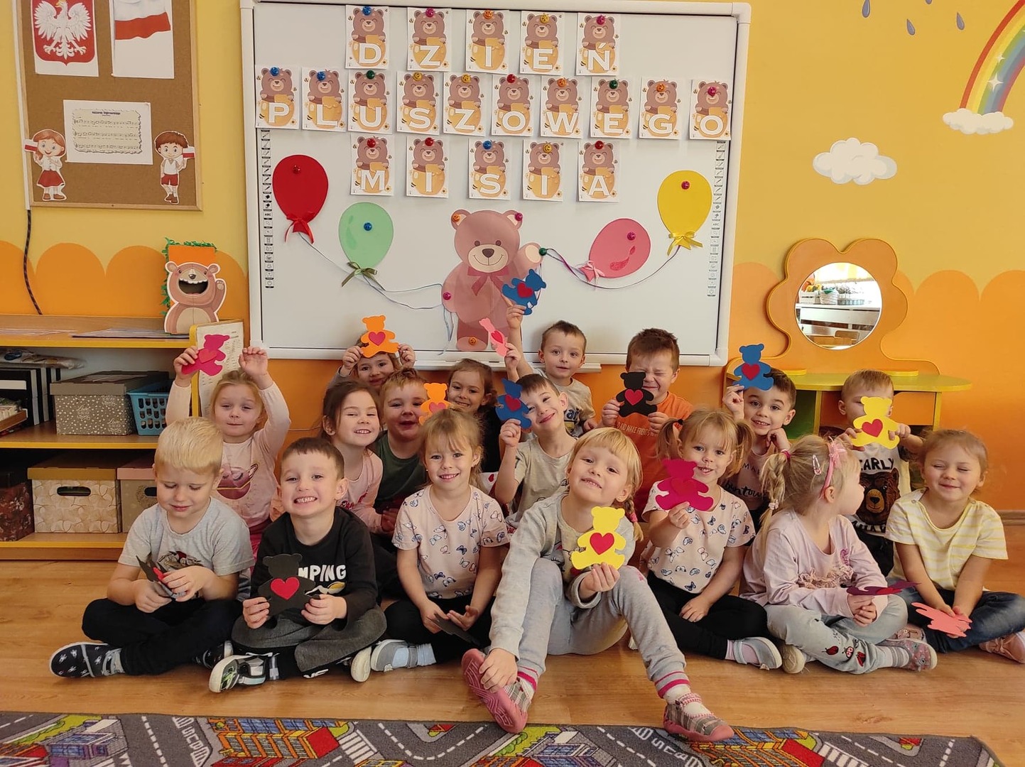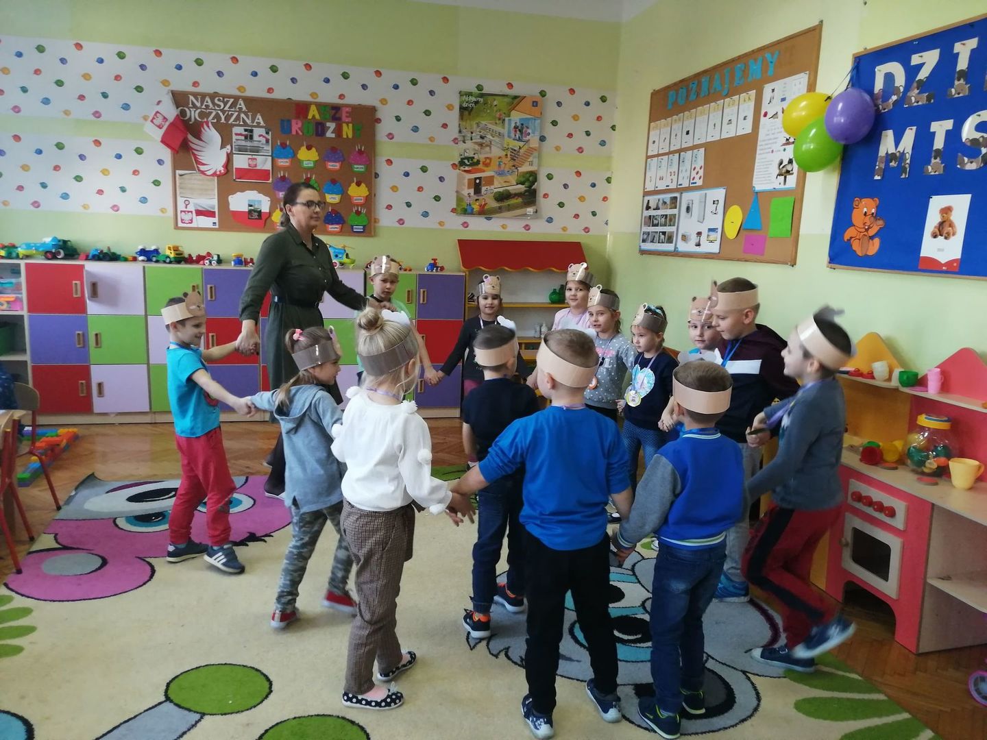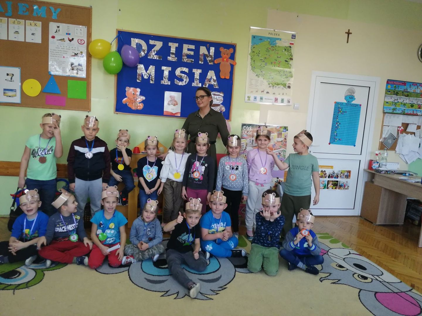 Dnia 25 listopada, w naszym przedszkolu świętowaliśmy Dzień Pluszowego Misia. Było sporo atrakcji i radości. Dzieci poznały historię pluszowego misia, dowiedziały się w jakich bajkach występują misie, obejrzały bajkę „Miś Uszatek”. Nie zabrakło tańców, wierszy, piosenek o tematyce misiowej. Przedszkolaki uczestniczyły w quizach o misiach, grach i zabawach ruchowych oraz wykonały piękne prace plastyczne. Dzieci z chęcią opowiadały o swoich ukochanych misiach.