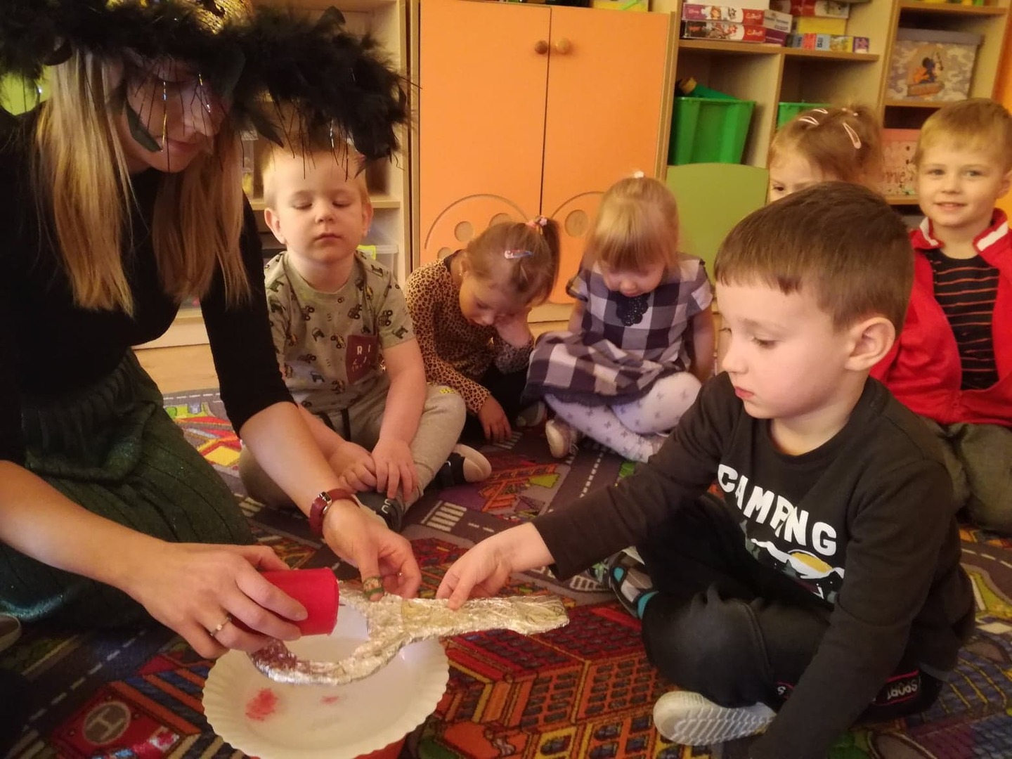 „Święty Andrzeju daj nam znać co się będzie z nami dziać!” -tymi słowami dzieci z naszego przedszkola rozpoczęły zabawę andrzejkową. Każda z grup w sposób wyjątkowy przygotowała się do tego magicznego dnia. Tajemnicze dekoracje sal, panie przebrane za wróżki a także zabawa starszaków na sali gimnastycznej sprawiły, że przedszkolaki przeniosły się w krainę czarów i wróżb. Poprzez zabawę miały również okazję przybliżyć się do tradycji i obrzędów ludowych. Gdy magia zaczęła unosić się w powietrzu rozpoczęto ekscytujący dzień wróżb i tańców. Przyszłość przepowiadana była na wiele sposobów: losowanie karteczek z zawodami, przekłuwanie serc z imionami przyszłych sympatii, „wędrówka butów” itp. Każdy miał szansę odkryć, co przyniesie mu los. Spotkanie dobiegło końca, a przedszkolaki wracały do swoich domów jeszcze długo rozpamiętując przepowiednie, które przyniósł im wspaniały andrzejkowy dzień.