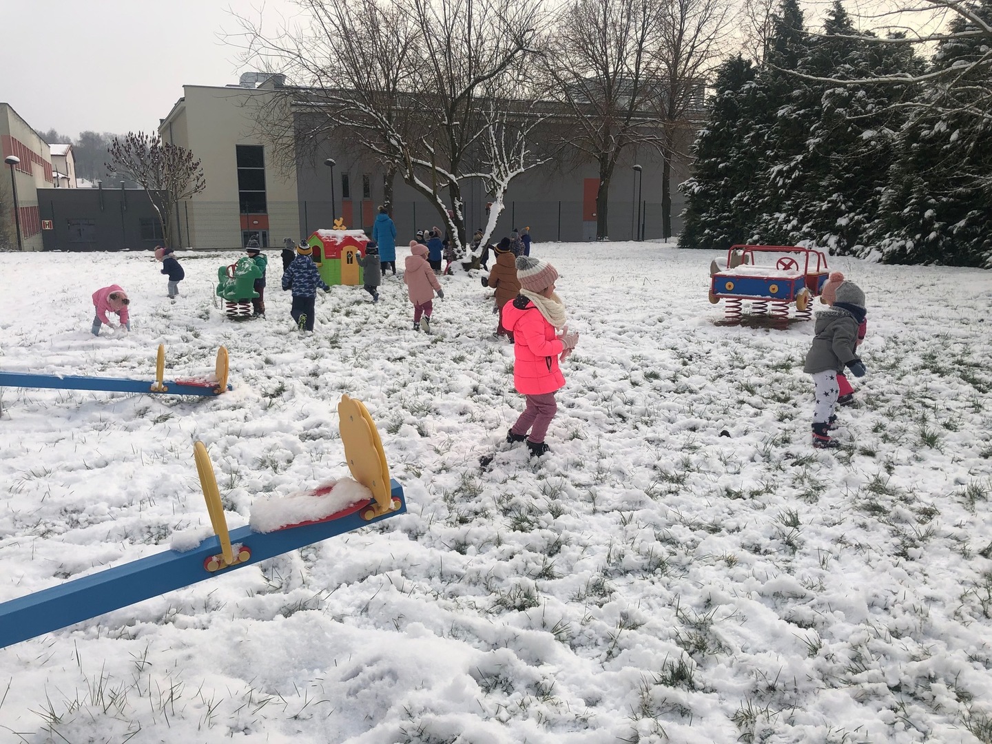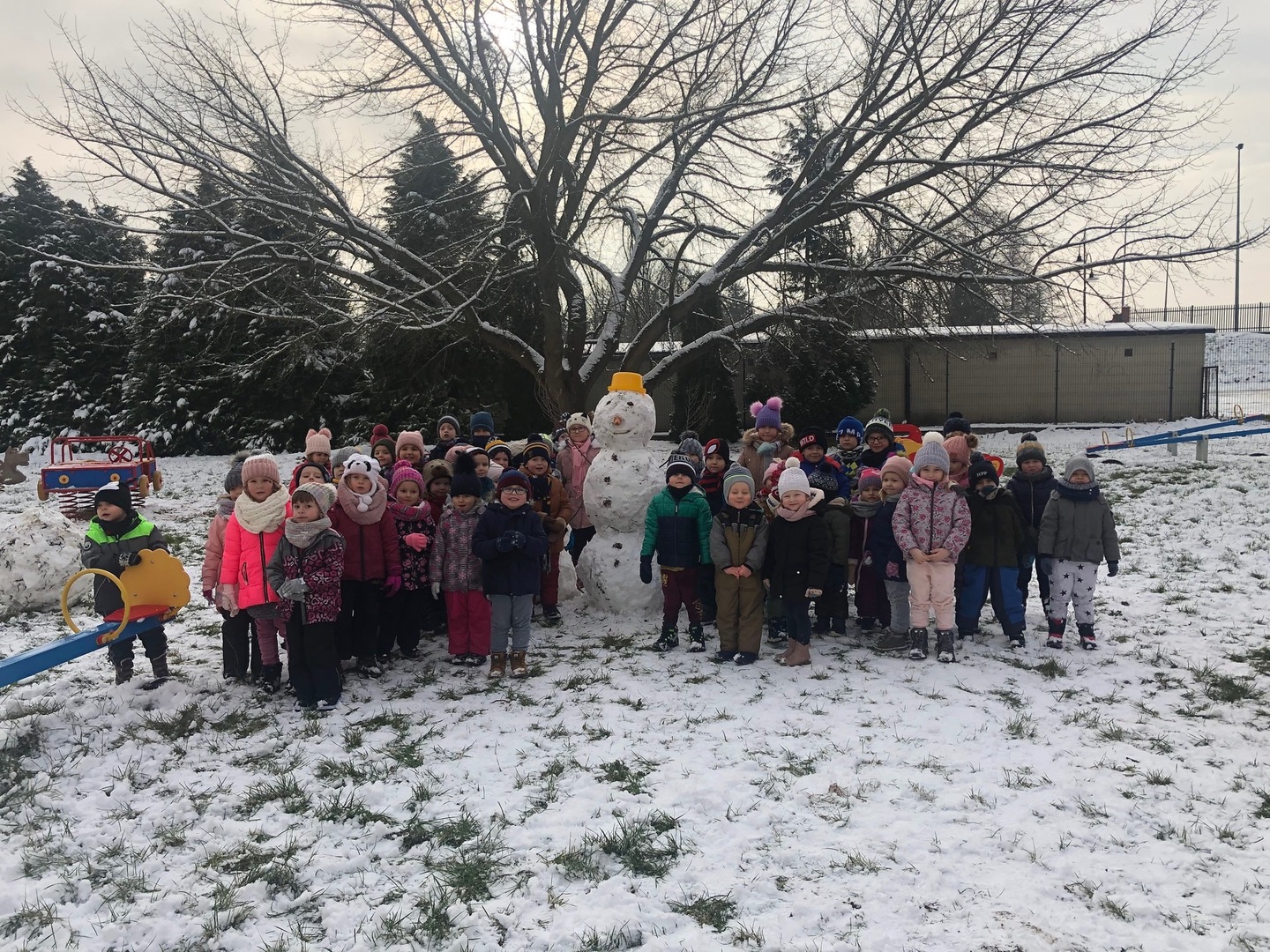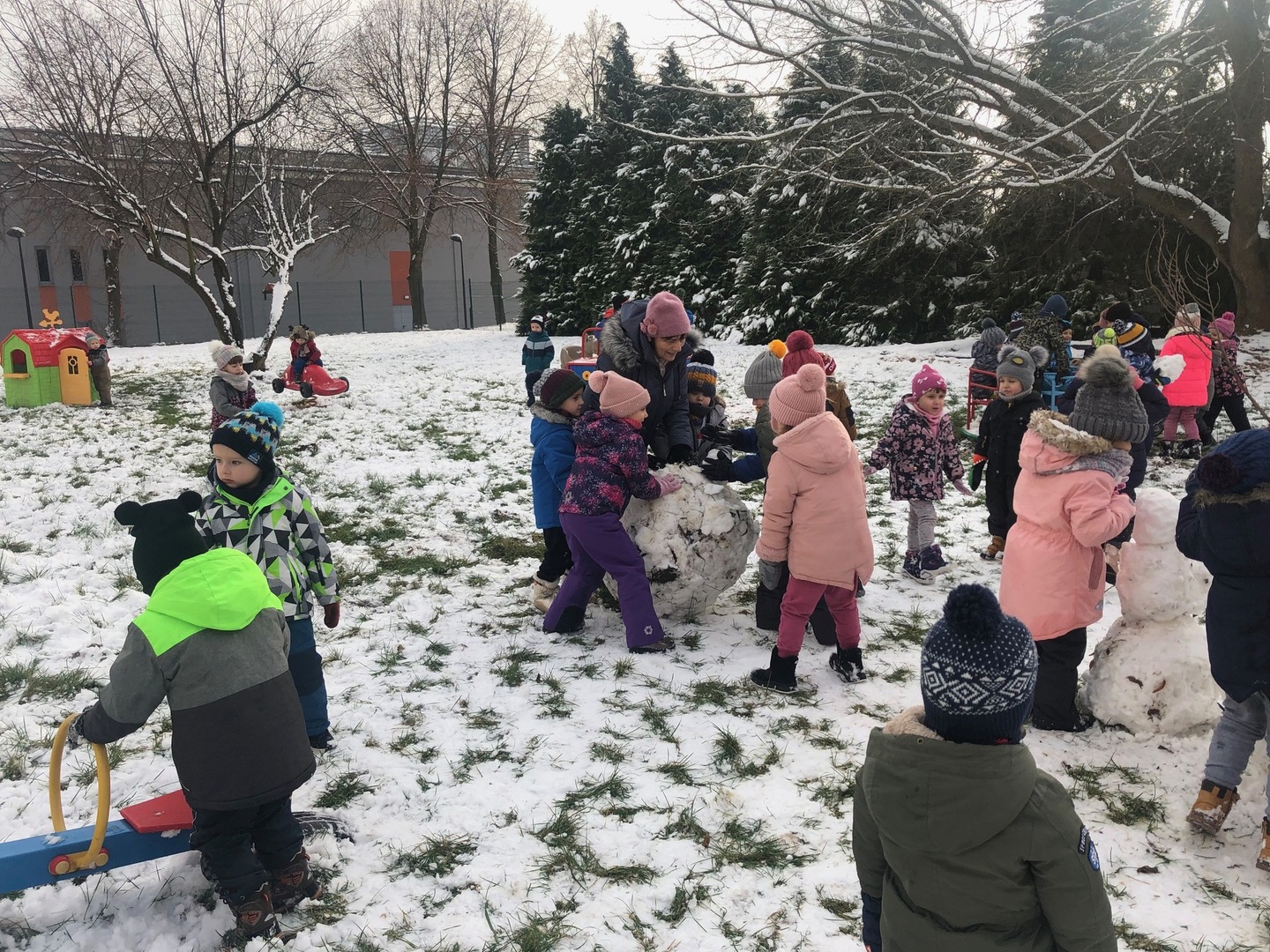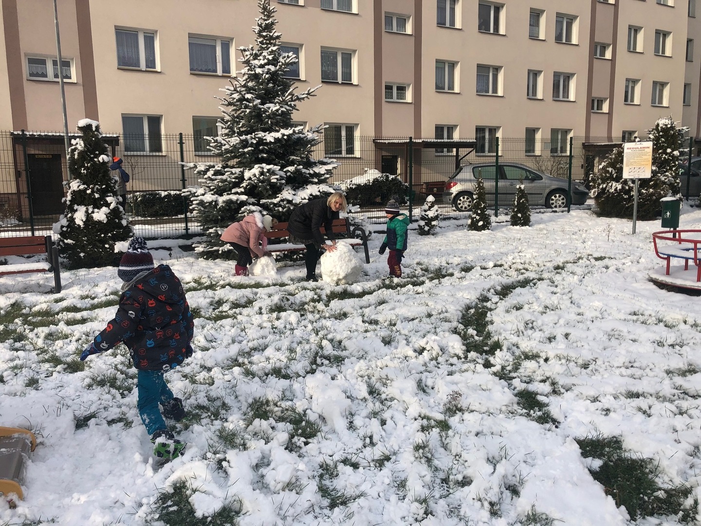 Korzystając z pierwszych uroków zimy, nasze przedszkolaki wybrały się do ogrodu przedszkolnego, aby pobawic sie na śniegu. Dzieci z wielką radością ulepiły bałwankową rodzinę, rzucały sie śnieżkami i podziwiały uroki pięknej zimy. Z czerwonymi noskami i z uśmiechem na buzi wróciły do przedszkola na ciepły posiłek.