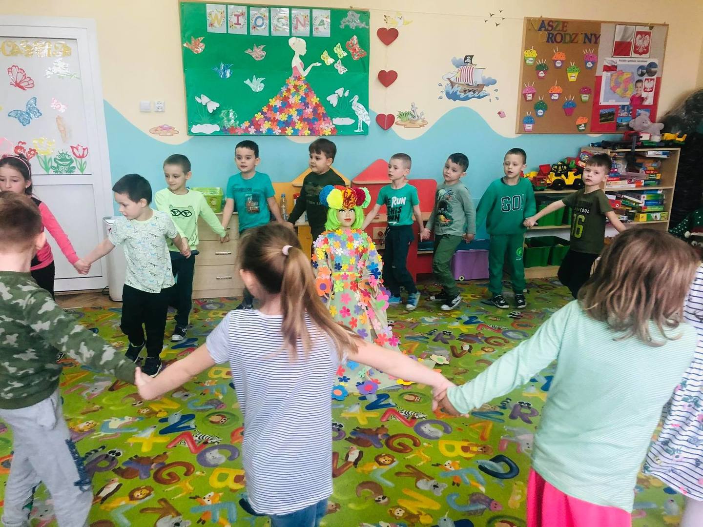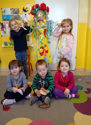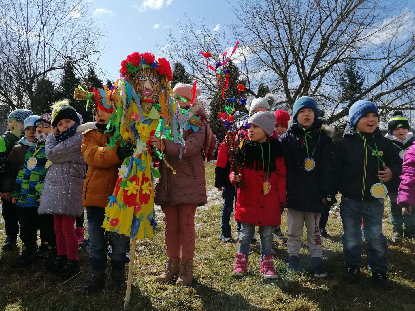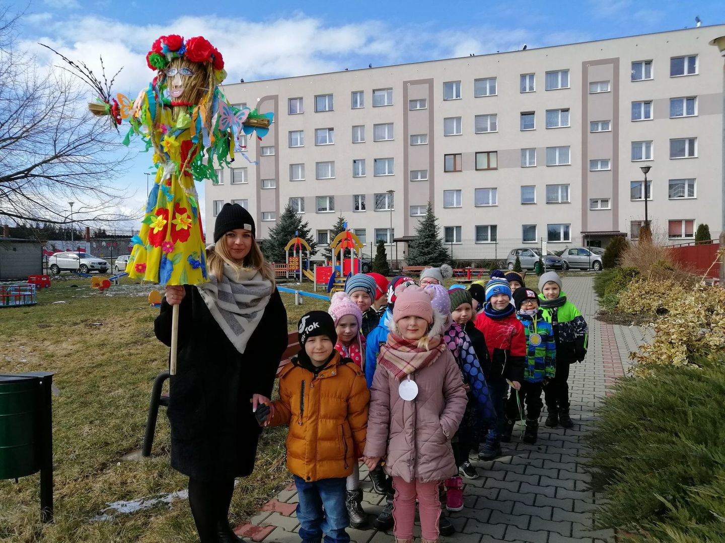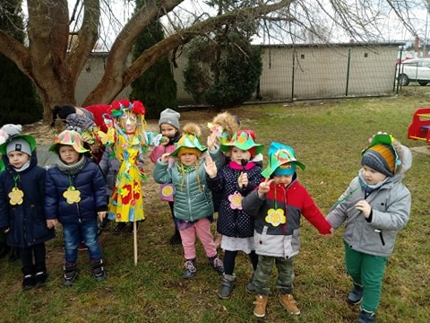 Pierwszy Dzień Wiosny jest bardzo radosnym i wyczekiwanym dniem w naszym przedszkolu. Zgodnie z tradycją, dzieci z młodszych i starszych grup pożegnały zimę, a powitały upragnioną wiosnę. Każda grupa rozpoczęła zajęcia od odśpiewania na powitanie piosenki pt. ,,Maszeruje wiosna”. Na młodsze dzieci czekał List od Pani Wiosny, a na starsze- List od Bociana. Zadaniem dzieci było przejście mini toru przeszkód, a także rozwiązanie wiosennych zagadek. Tego dnia każda grupa stworzyła swoją ,,Panią Wiosnę’’, dzięki czemu w holu przedszkola zorganizowana została wystawa prac. Na zakończenie grupy wybrały się na przedszkolny plac zabaw, gdzie przedszkolaki śpiewali piosenki, szukali zwiastunów wiosny i skandowali hasło: ,,Zgiń przepadnij zimo i nie wracaj do nas, na przyjęcie wiosny otwórzmy ramiona”. Mamy nadzieję, że teraz wiosna na dobre u nas zagości!
