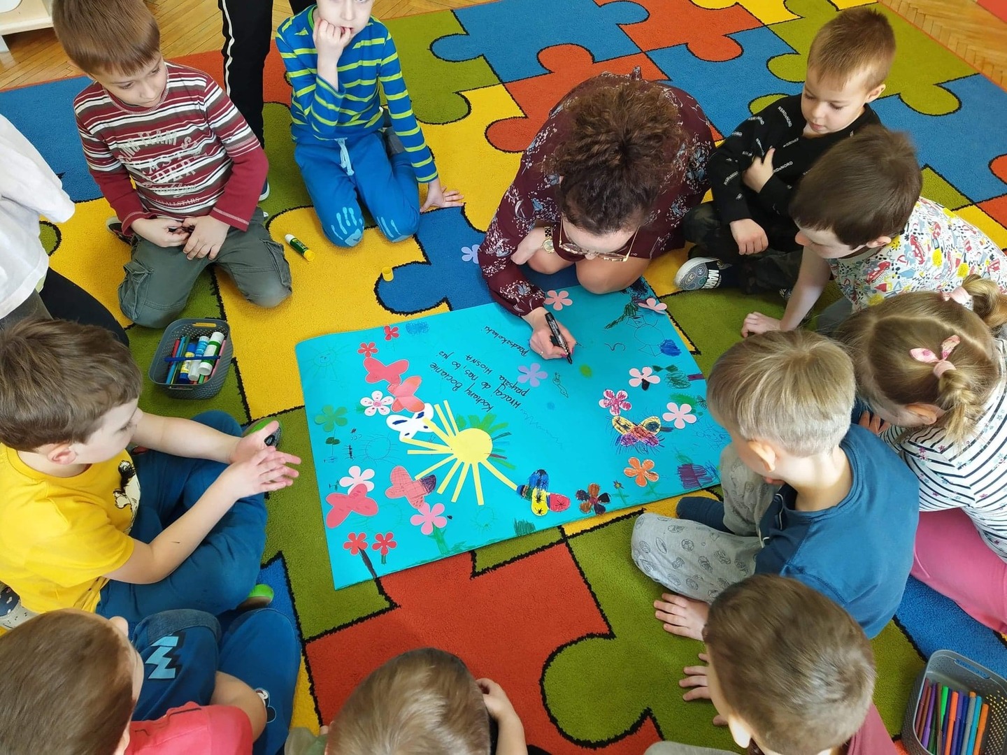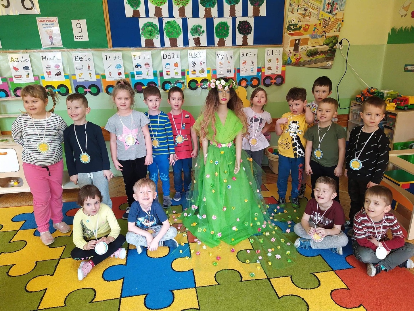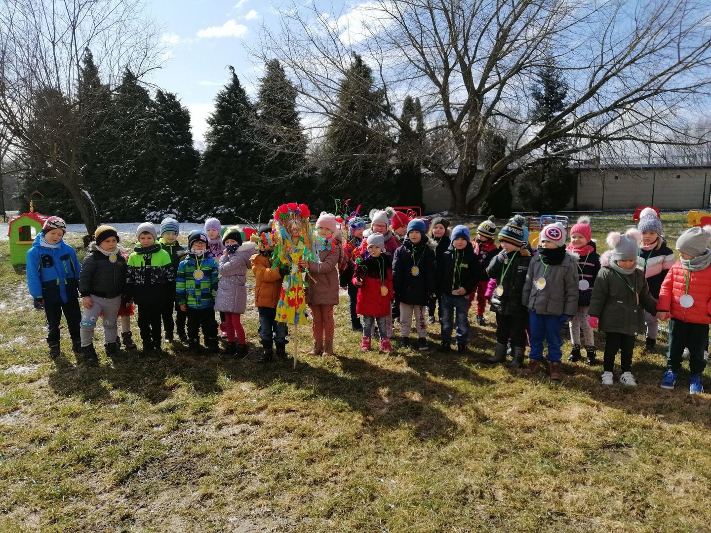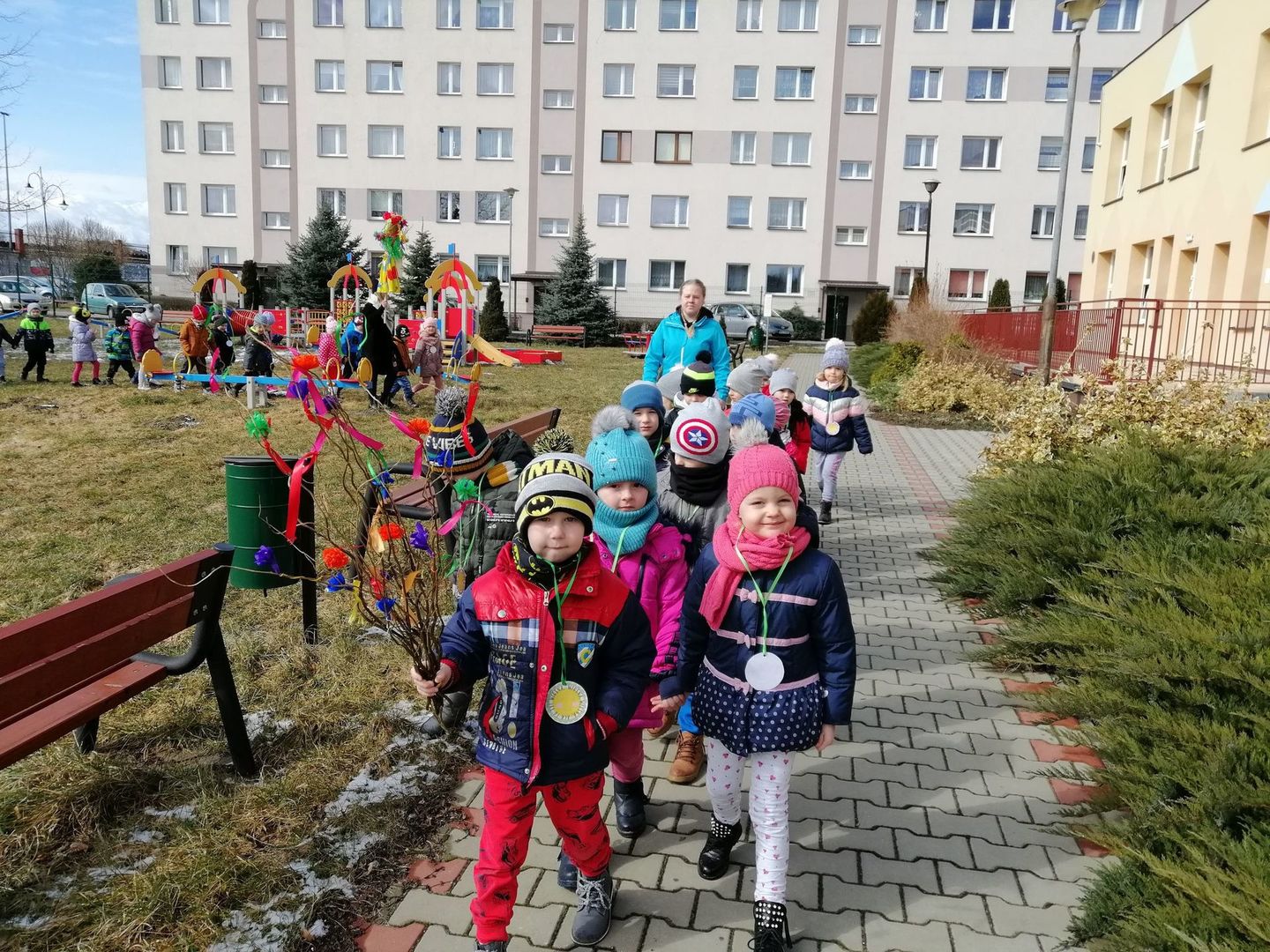 Pierwszy Dzień Wiosny jest bardzo radosnym i wyczekiwanym dniem w naszym przedszkolu. Zgodnie z tradycją, dzieci z młodszych i starszych grup pożegnały zimę, a powitały upragnioną wiosnę. Każda grupa rozpoczęła zajęcia od odśpiewania na powitanie piosenki pt. ,,Maszeruje wiosna”. Na młodsze dzieci czekał List od Pani Wiosny, a na starsze- List od Bociana. Zadaniem dzieci było przejście mini toru przeszkód, a także rozwiązanie wiosennych zagadek. Tego dnia każda grupa stworzyła swoją ,,Panią Wiosnę’’, dzięki czemu w holu przedszkola zorganizowana została wystawa prac. Na zakończenie grupy wybrały się na przedszkolny plac zabaw, gdzie przedszkolaki śpiewali piosenki, szukali zwiastunów wiosny i skandowali hasło: ,,Zgiń przepadnij zimo i nie wracaj do nas, na przyjęcie wiosny otwórzmy ramiona”. Mamy nadzieję, że teraz wiosna na dobre u nas zagości!