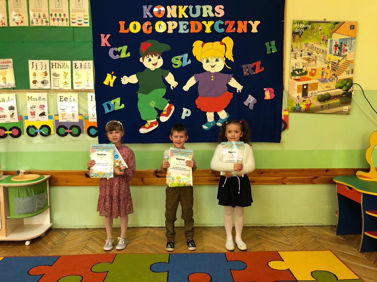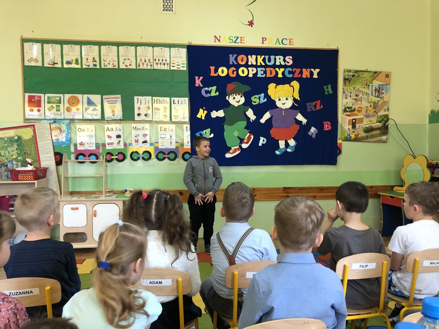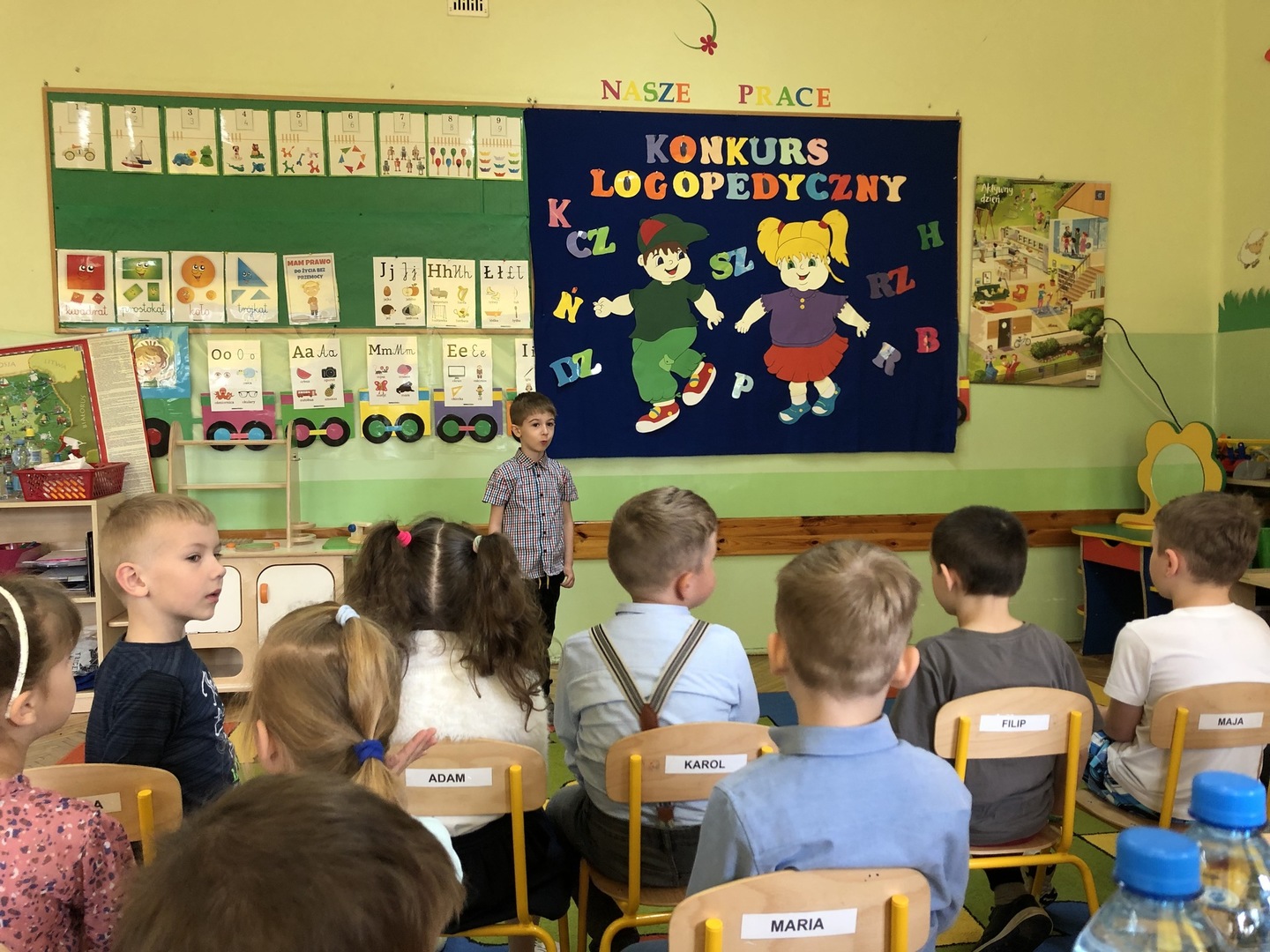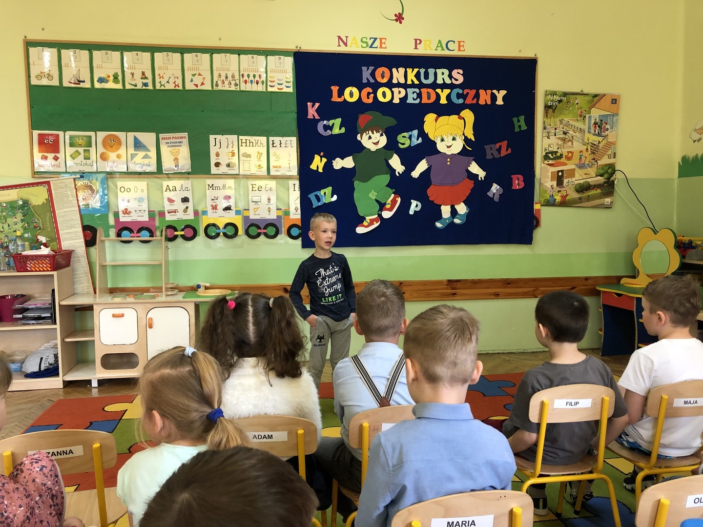 Dnia 24.05.2021 r. w naszym przedszkolu odbył się konkurs logopedyczny. Celem konkursu było utrwalenie prawidłowej artykulacji, rozwijanie słownictwa oraz twórczej zdolności dziecka. Jury wyłoniło trzech zwycięzców, a pozostałe dzieci dostały wyróżnienia. Brawa dla przedszkolaków!