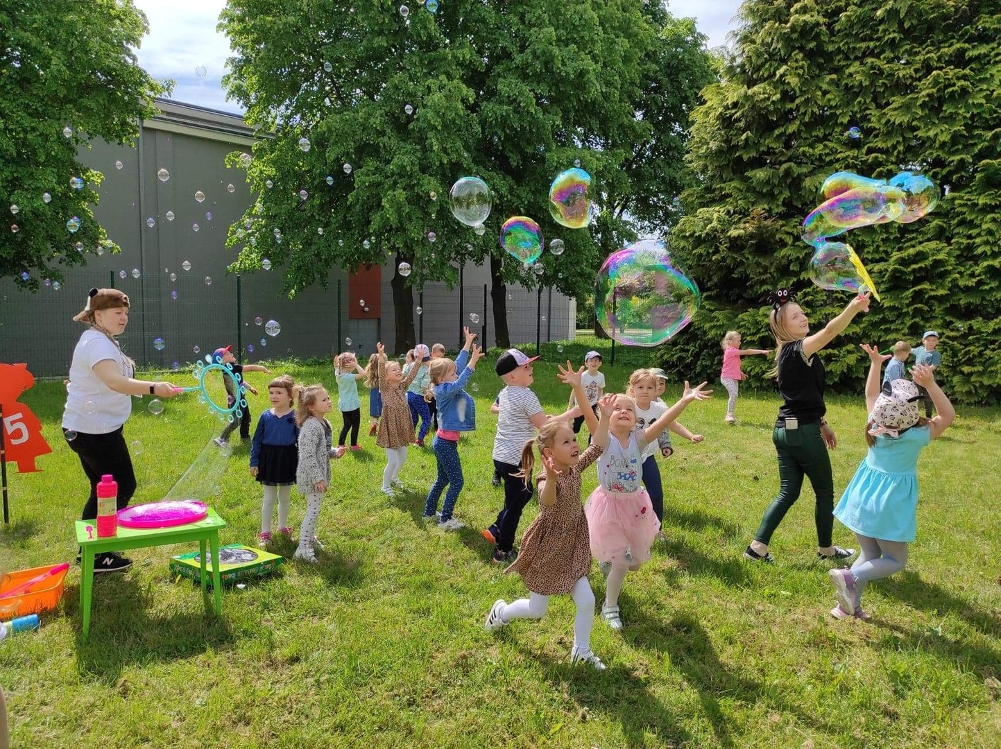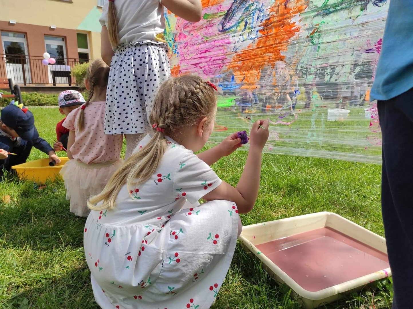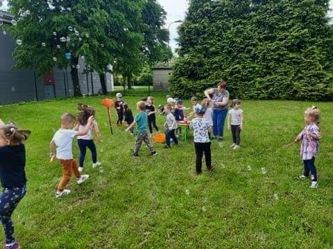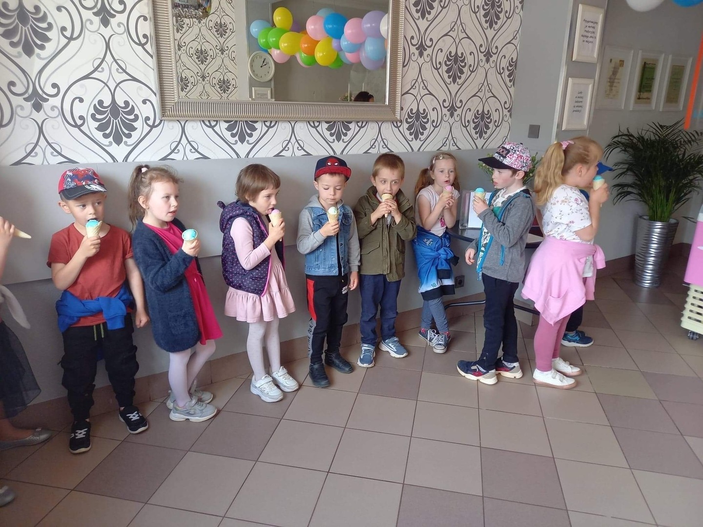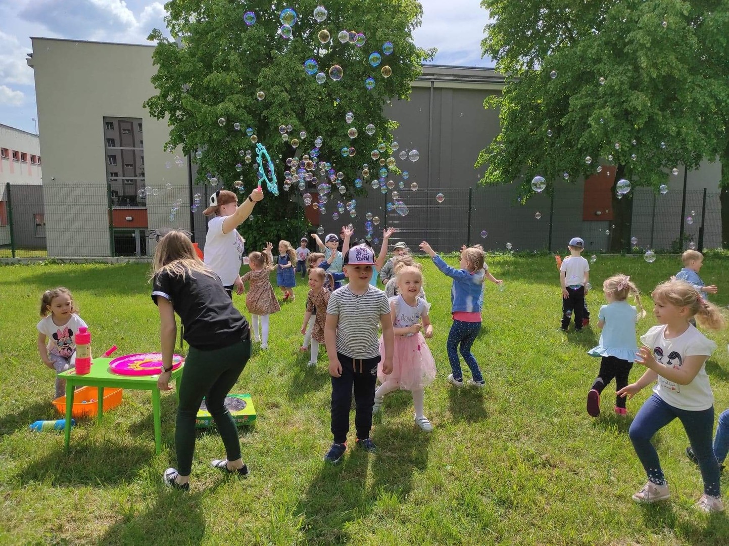 1 czerwca to szczególny dzień na który dzieci czekają z wielką niecierpliwością. Nic dziwnego – przedszkolaki doskonale wiedziały, że będzie to dzień pełen radości i wspaniałych przeżyć. Z okazji Dnia Dziecka w naszym przedszkolu na dzieci czekało wiele atrakcji. Świętowanie rozpoczęliśmy od wyjścia do ogrodu przedszkolnego. Przedszkolaki z wielkim zainteresowaniem wzięły udział w licznych zabawach: malowanie na foli, chodzenie po linie, skakanie po kółeczkach, rysowanie kredą. Najwięcej emocji i przeżyć dostarczyło przedszkolakom puszczanie baniek mydlanych i zabawy chustą animacyjną. Starszaki wybrały się także na lody do pobliskiej lodziarni. Nie zabrakło również upominków dla każdego dziecka. To był wspaniały i radosny dzień, który z pewnością na długo pozostanie w pamięci dzieci!