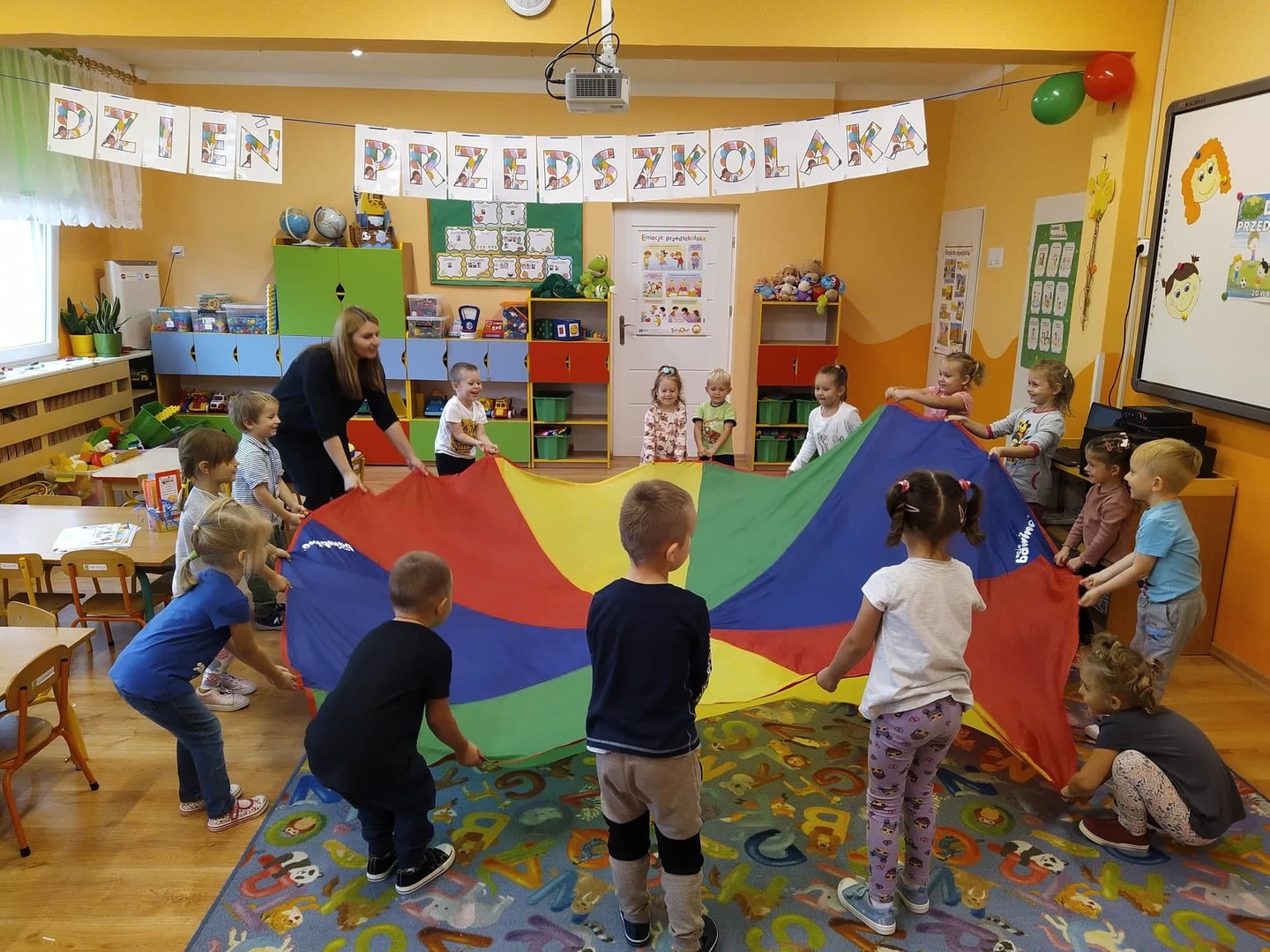 Dnia 20 września w naszym przedszkolu obchodziliśmy „Ogólnopolski Dzień Przedszkolaka”. Była to super okazja do świętowania. Przedszkolaki chętnie brały udział w zaproponowanych aktywnościach, m.in.: zabawach z chustą animacyjną, zabawach tanecznnych czy zawodach sportowych. Na zakończenie wspólnej zabawy dzieci otrzymały słodki upominek i pamiątkowy dyplom. Był to wspaniały dzień pełen uśmiechów i niezapomnianych wrażeń.