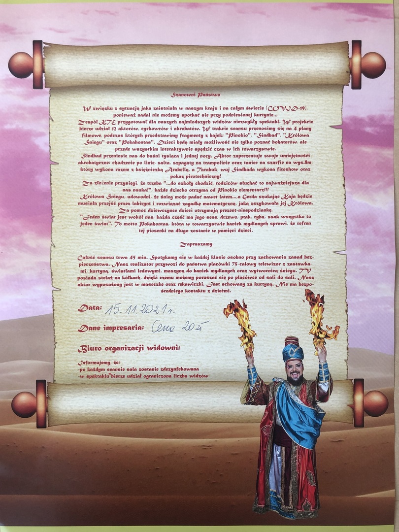 Cena za spektakl wynosi 20 zł od dziecka.