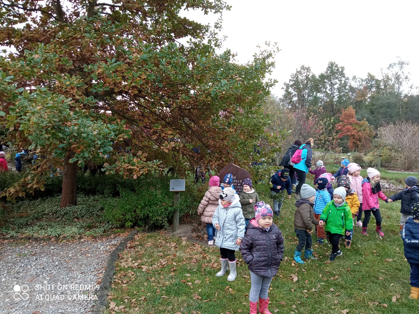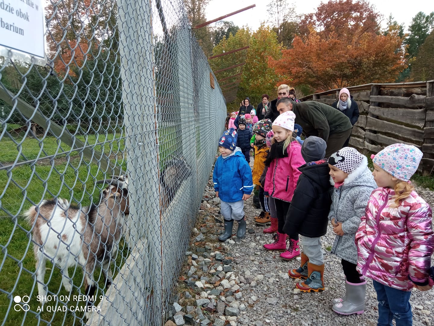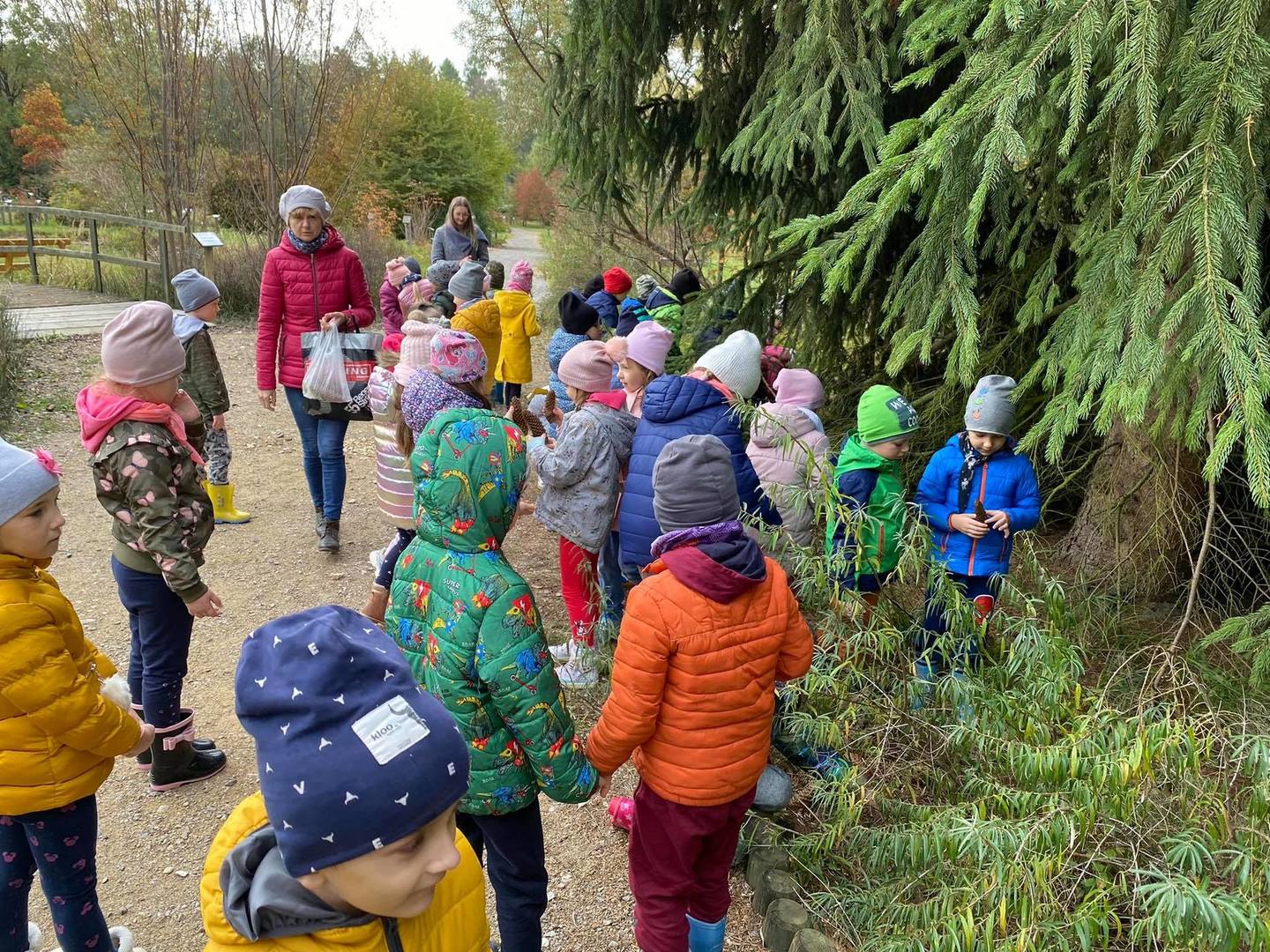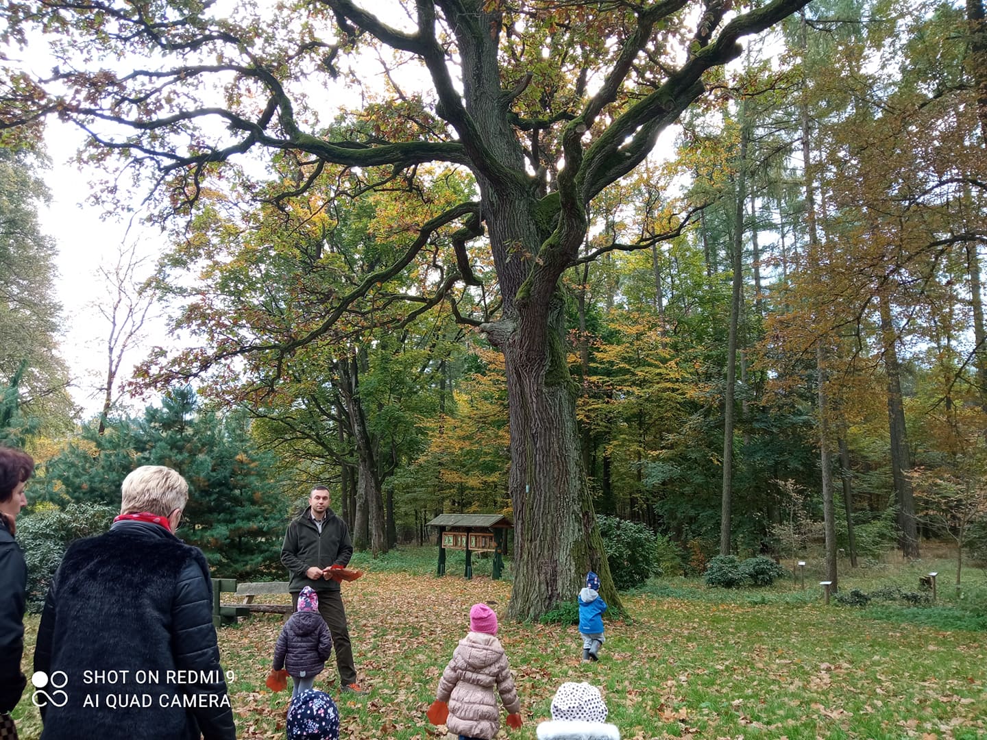 i krzewach znajdujących się w tym niezwykłym miejscu. Na dzieci czekało także wiele wspaniałych atrakcji, m.in. „wspinaczka” po Alpinarium, zabawa wokół największego dębu, Marcela, zbieranie wielu ciekawych okazów liści i poznawanie owoców krzewów jadalnych. Ostatnim punktem i zwieńczeniem wycieczki było zwiedzanie Zwierzyńca, w którym dzieci nie tylko podziwiały wspaniałe zwierzęta, ale także miały okazje nakarmić je przygotowanymi przez leśniczego smakołykami.