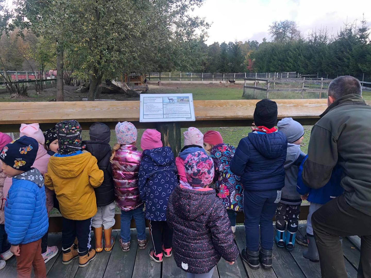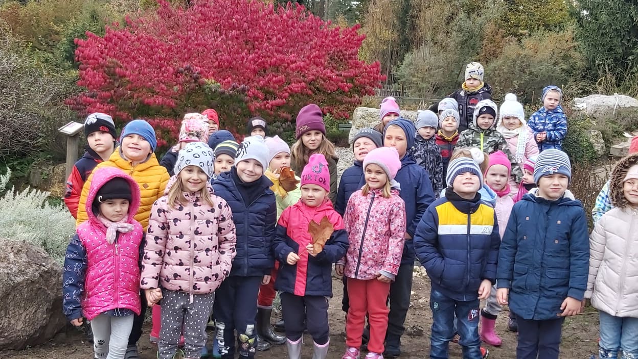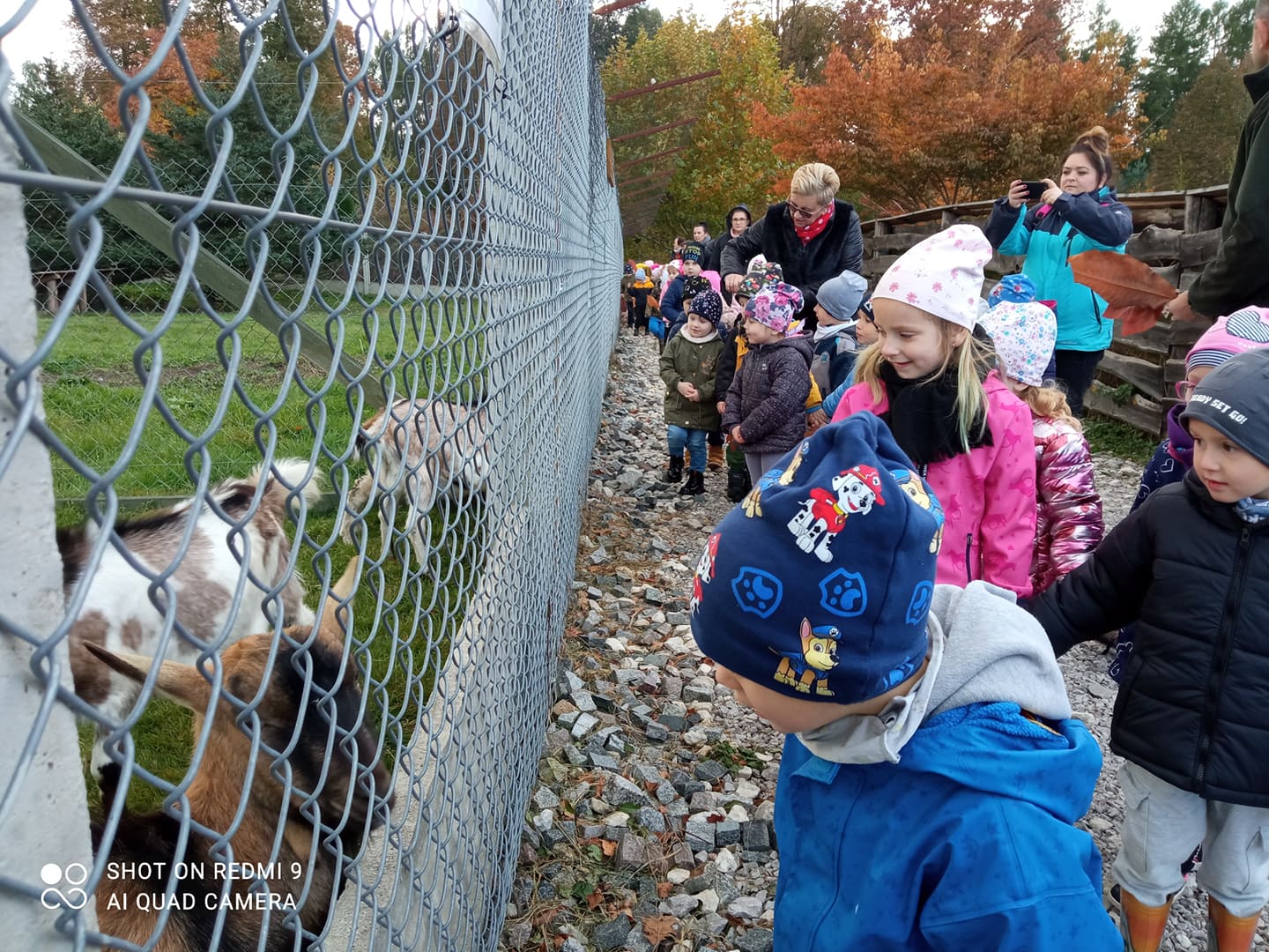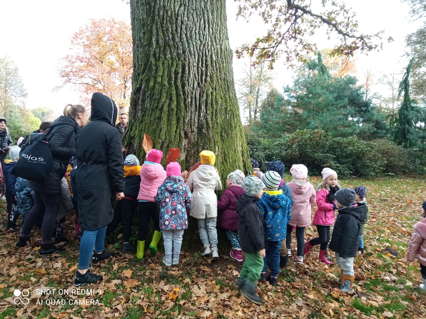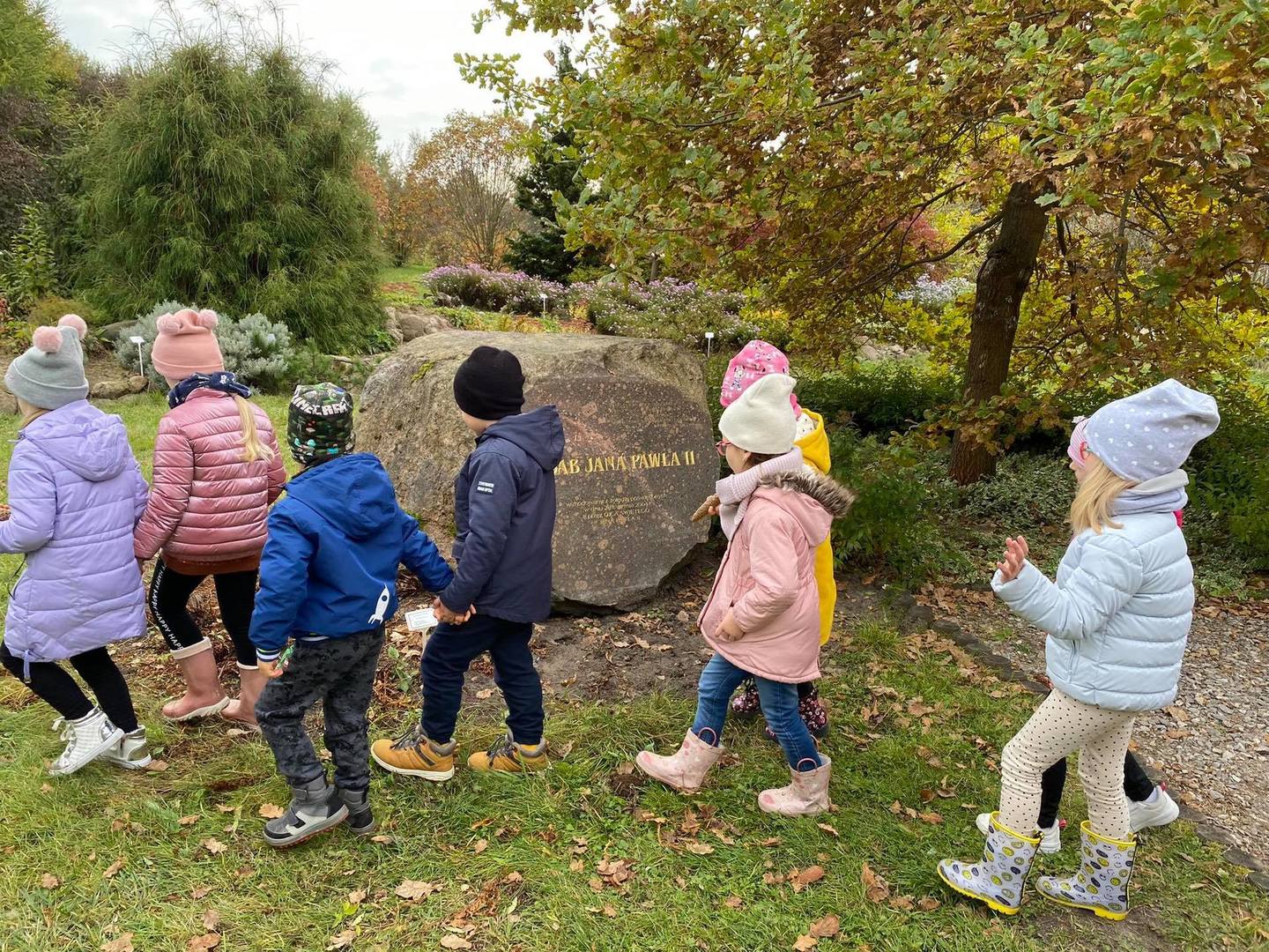 i krzewach znajdujących się w tym niezwykłym miejscu. Na dzieci czekało także wiele wspaniałych atrakcji, m.in. „wspinaczka” po Alpinarium, zabawa wokół największego dębu, Marcela, zbieranie wielu ciekawych okazów liści i poznawanie owoców krzewów jadalnych. Ostatnim punktem i zwieńczeniem wycieczki było zwiedzanie Zwierzyńca, w którym dzieci nie tylko podziwiały wspaniałe zwierzęta, ale także miały okazje nakarmić je przygotowanymi przez leśniczego smakołykami.