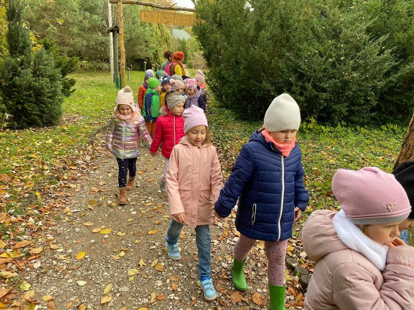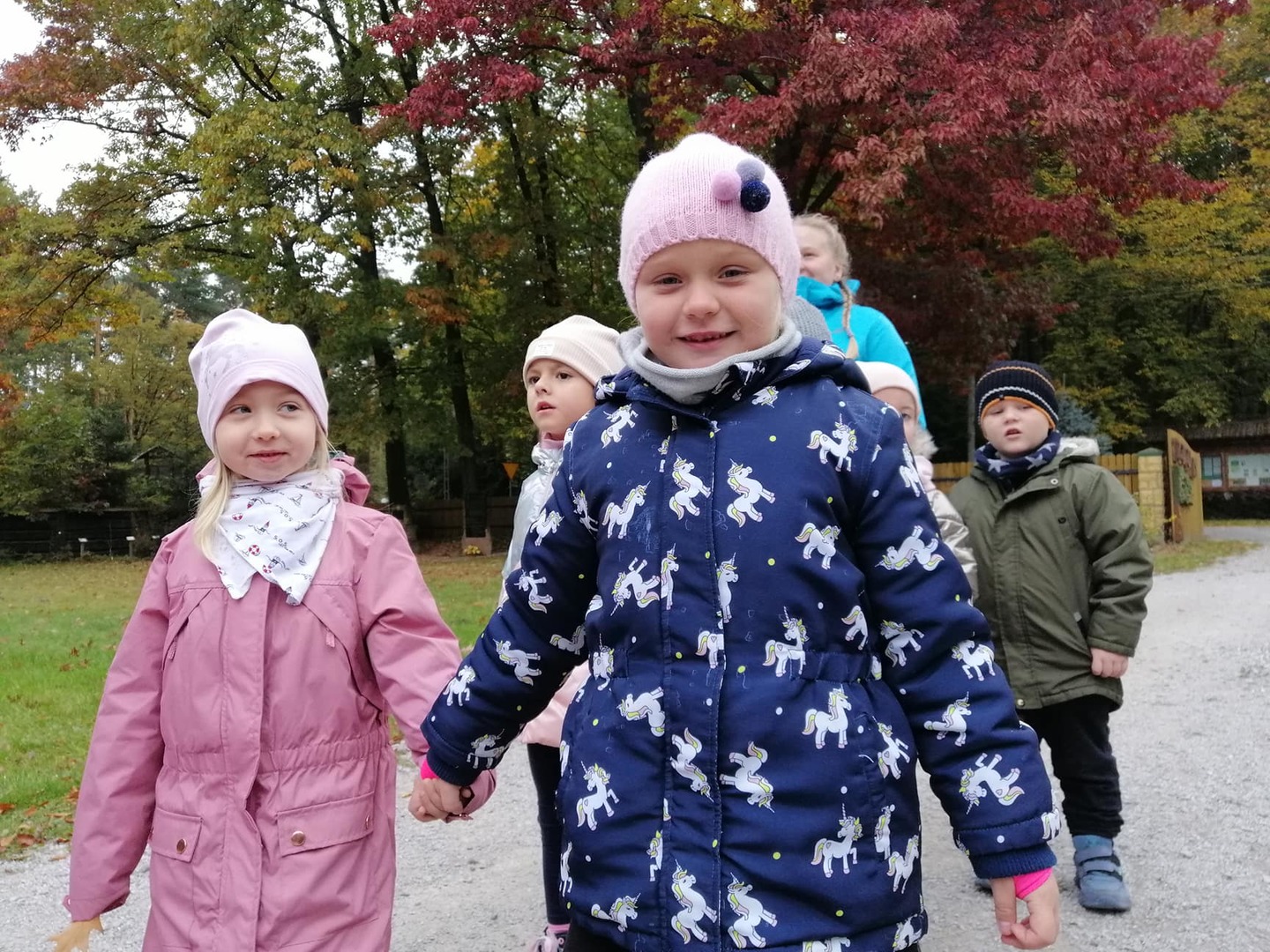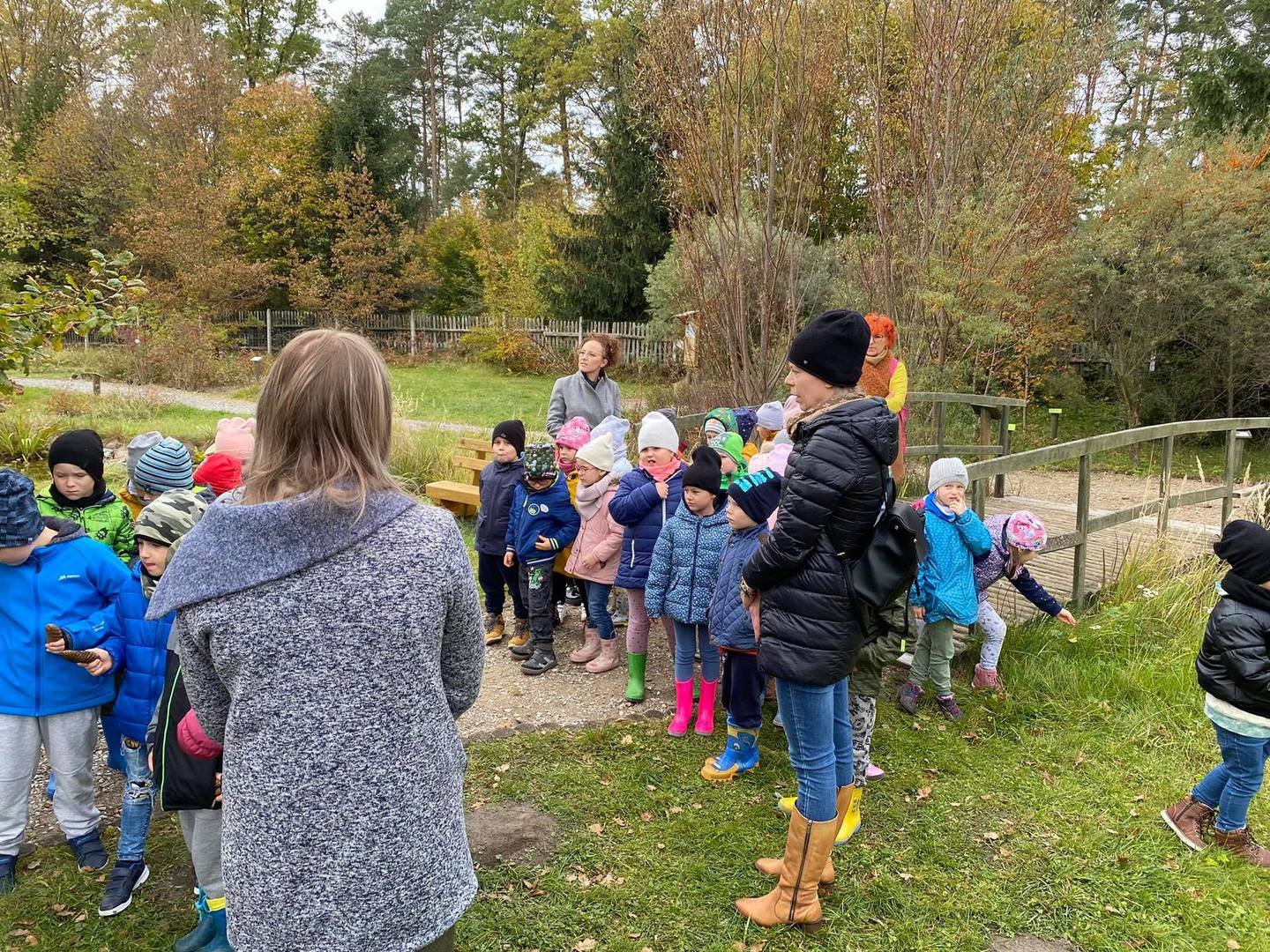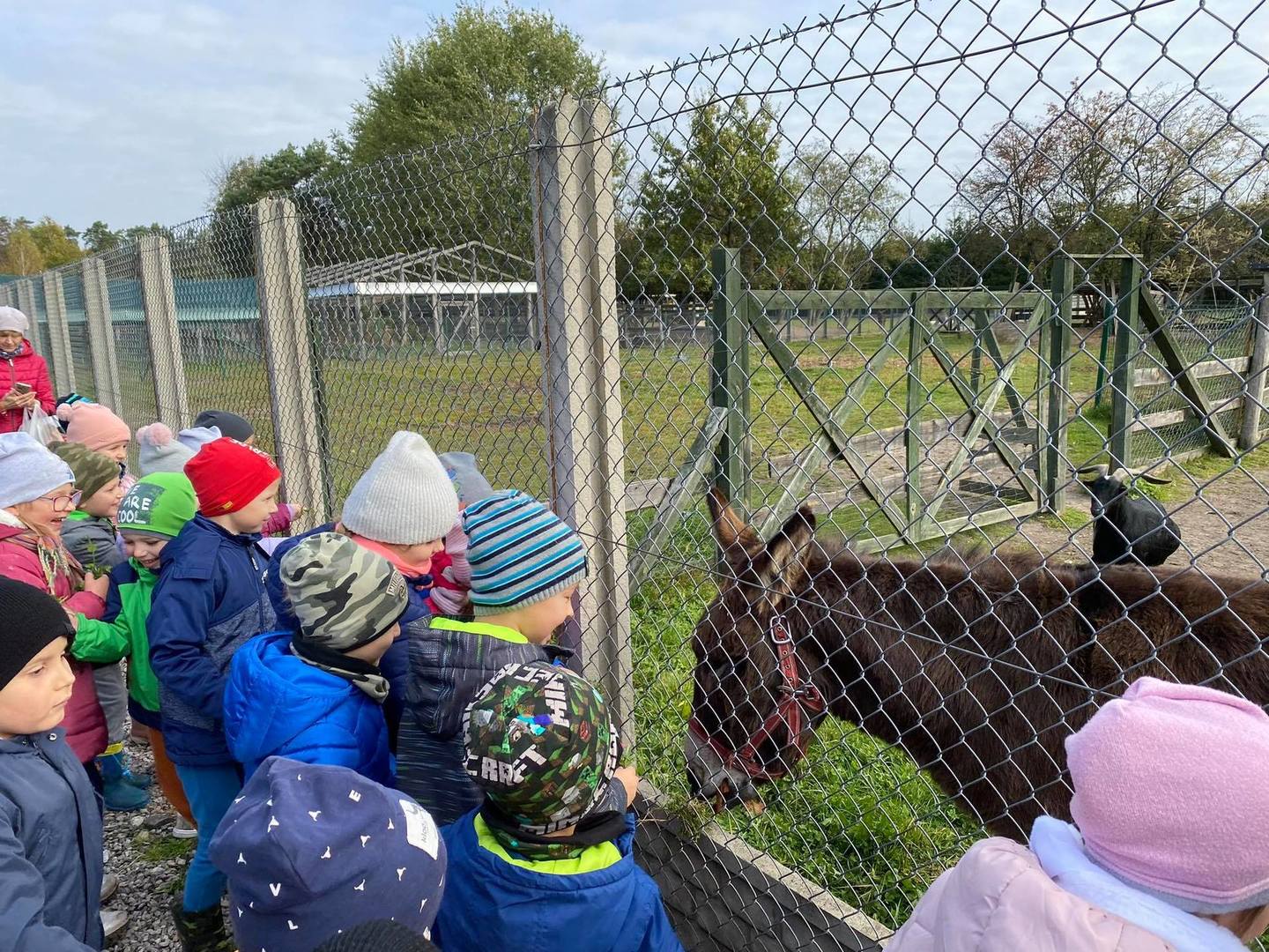 i krzewach znajdujących się w tym niezwykłym miejscu. Na dzieci czekało także wiele wspaniałych atrakcji, m.in. „wspinaczka” po Alpinarium, zabawa wokół największego dębu, Marcela, zbieranie wielu ciekawych okazów liści i poznawanie owoców krzewów jadalnych. Ostatnim punktem i zwieńczeniem wycieczki było zwiedzanie Zwierzyńca, w którym dzieci nie tylko podziwiały wspaniałe zwierzęta, ale także miały okazje nakarmić je przygotowanymi przez leśniczego smakołykami.