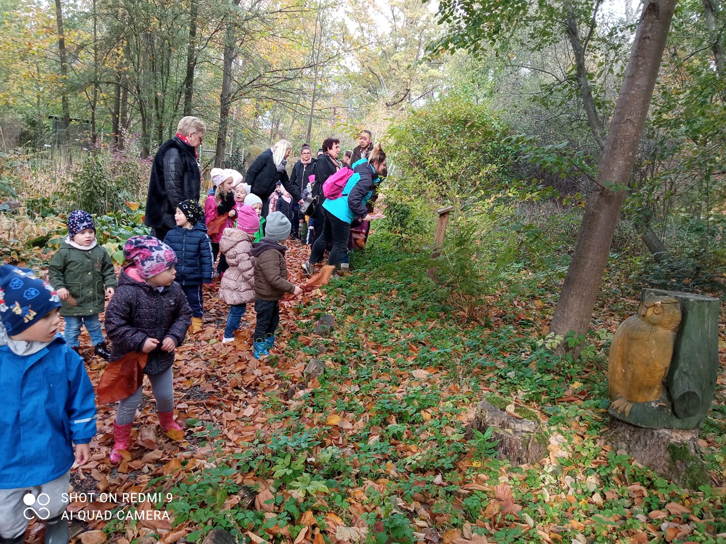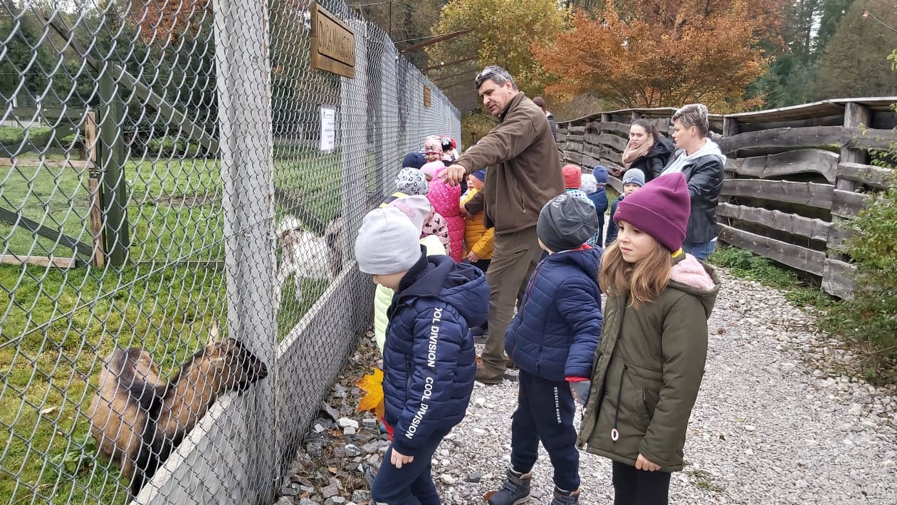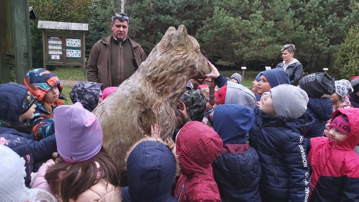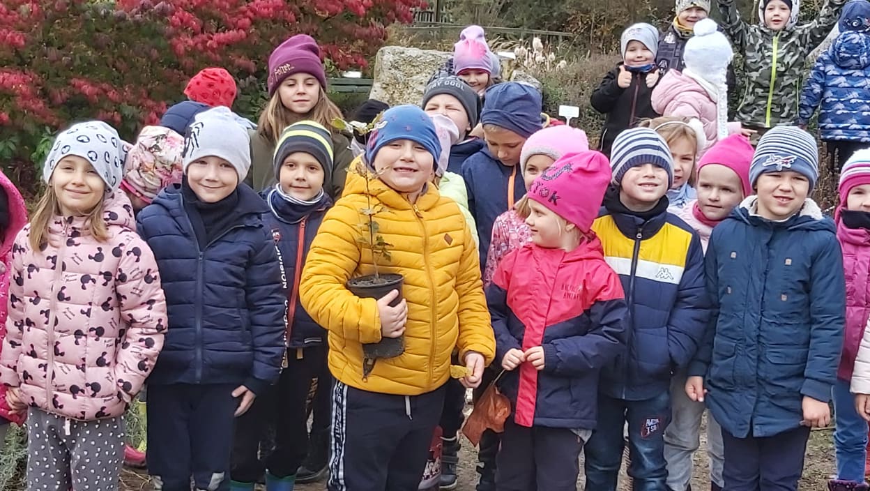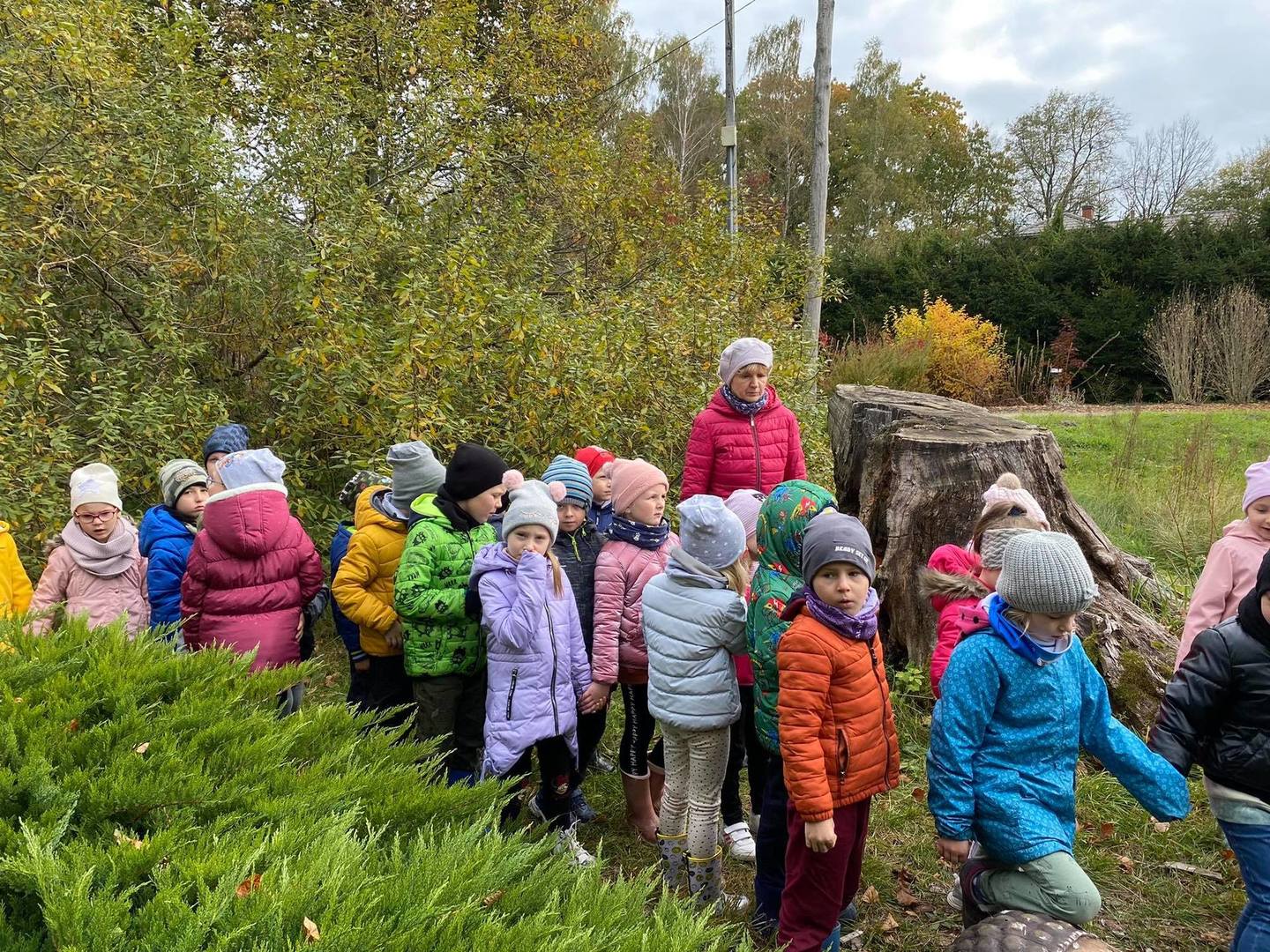 i krzewach znajdujących się w tym niezwykłym miejscu. Na dzieci czekało także wiele wspaniałych atrakcji, m.in. „wspinaczka” po Alpinarium, zabawa wokół największego dębu, Marcela, zbieranie wielu ciekawych okazów liści i poznawanie owoców krzewów jadalnych. Ostatnim punktem i zwieńczeniem wycieczki było zwiedzanie Zwierzyńca, w którym dzieci nie tylko podziwiały wspaniałe zwierzęta, ale także miały okazje nakarmić je przygotowanymi przez leśniczego smakołykami.