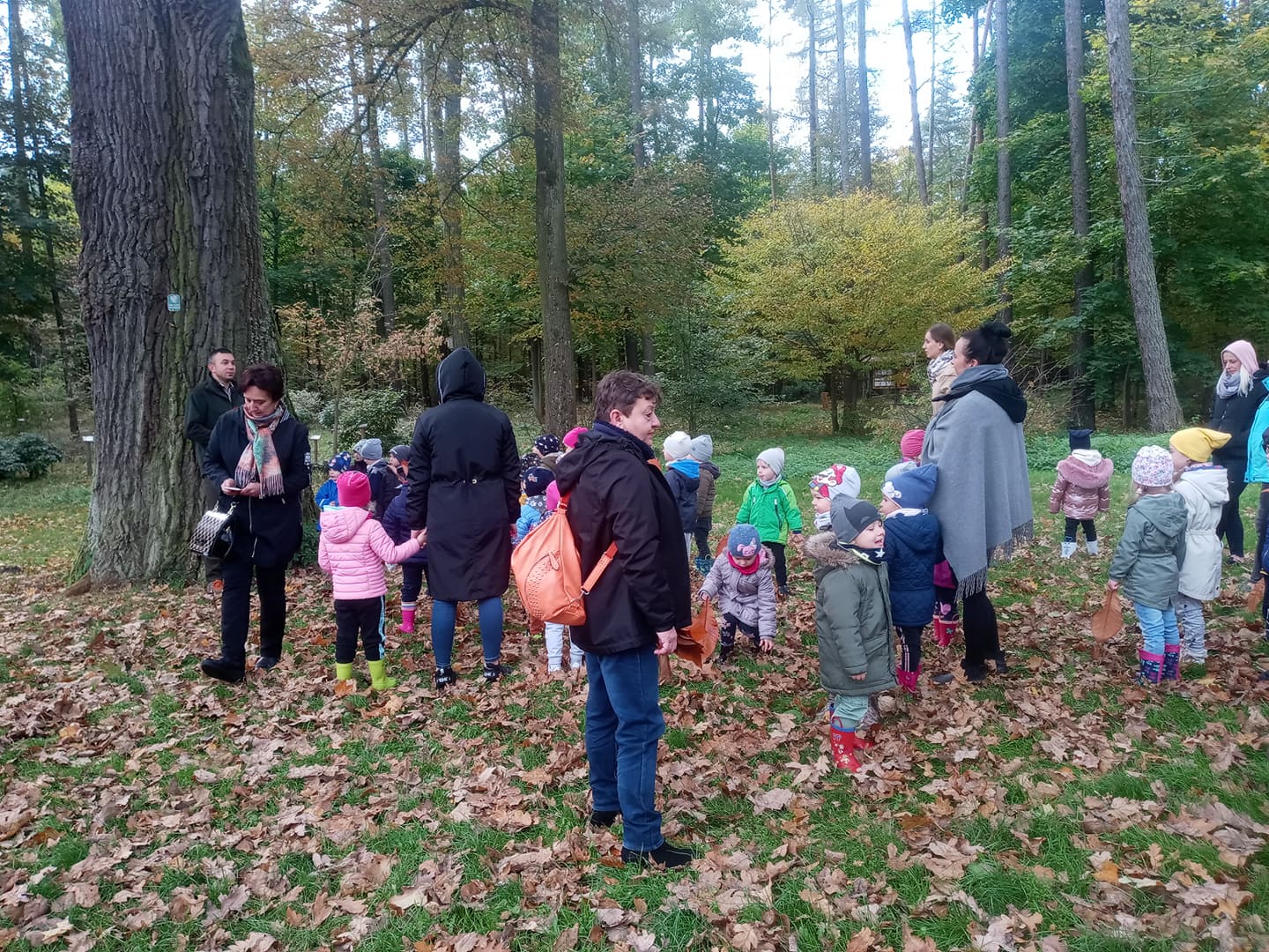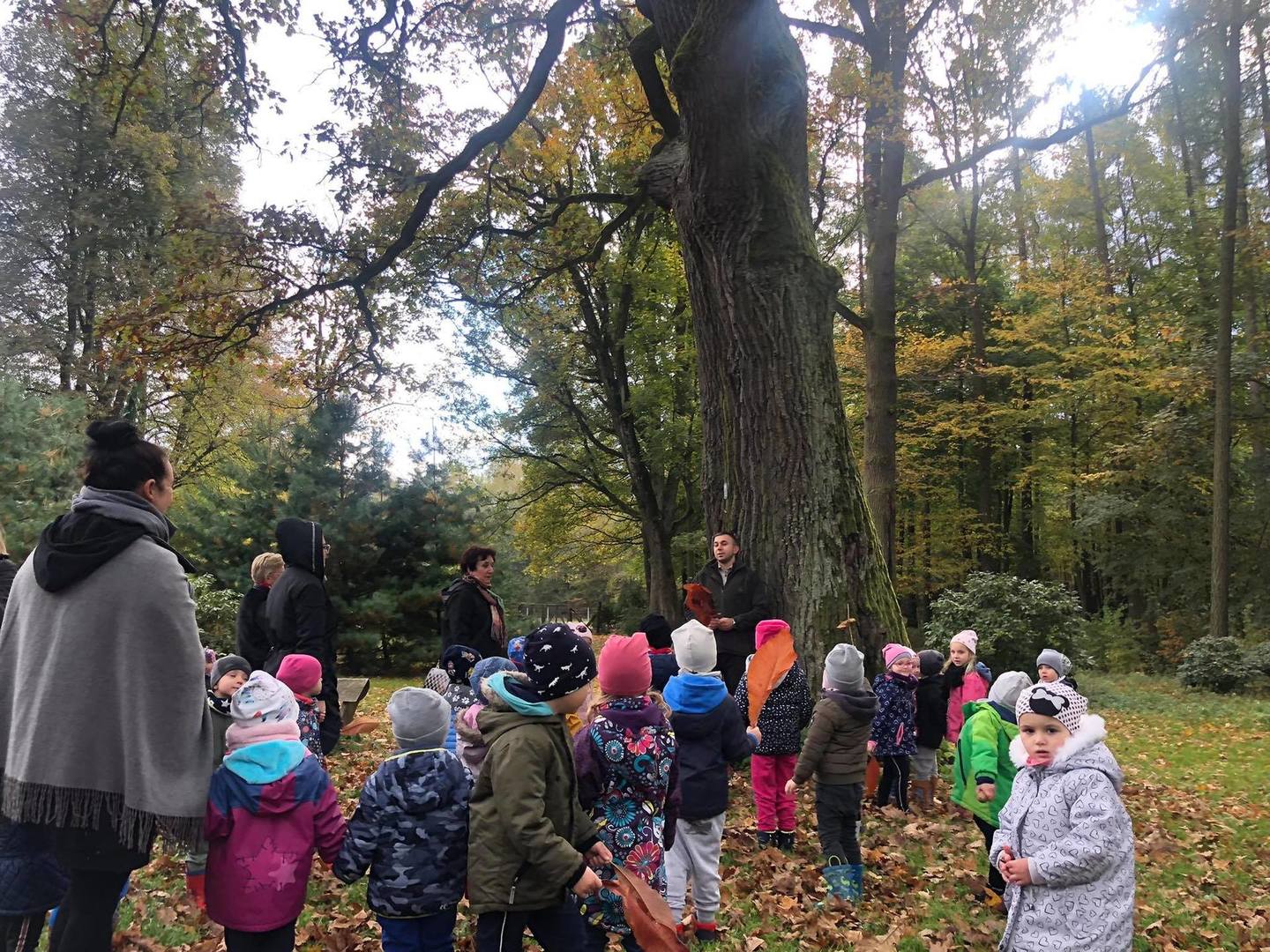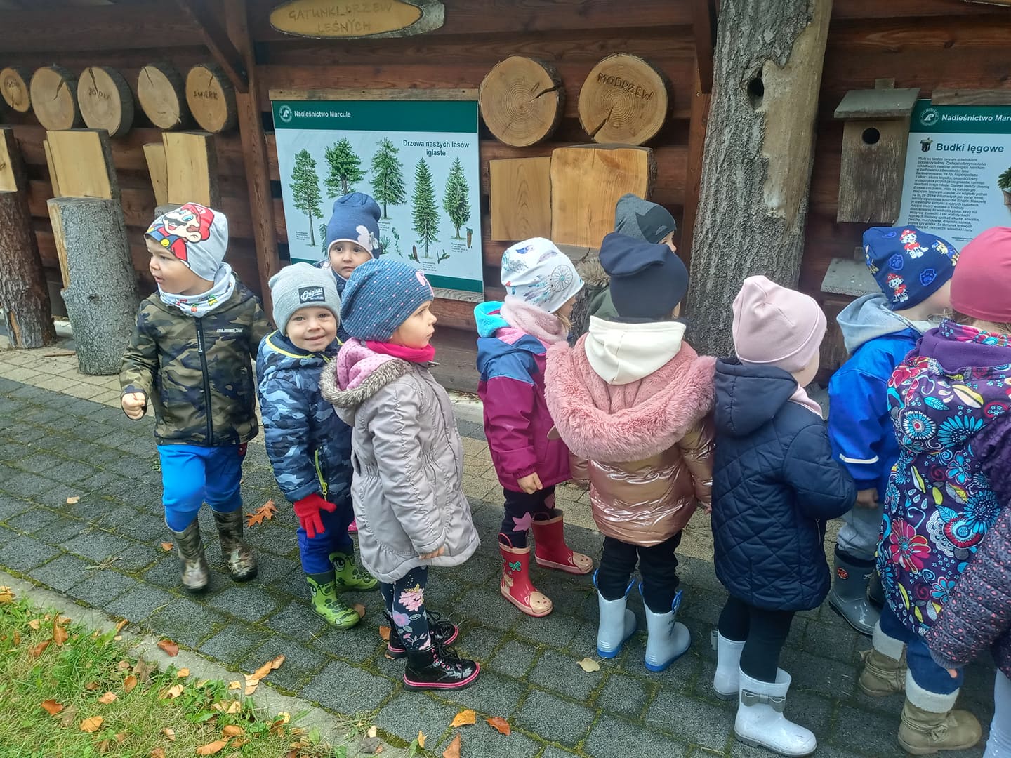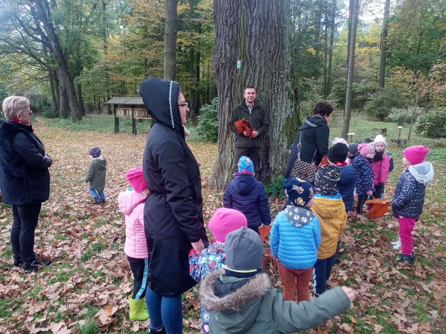 W dniach 13 i 15 października 2021 roku nasze przedszkolaki odwiedziły Nadleśnictwo w Marculach. Na miejscu przywitał nas pan leśniczy, który oprowadził nas po Arboretum. W trakcie wycieczki dzieci mogły usłyszeć wiele ciekawych opowieści o drzewach