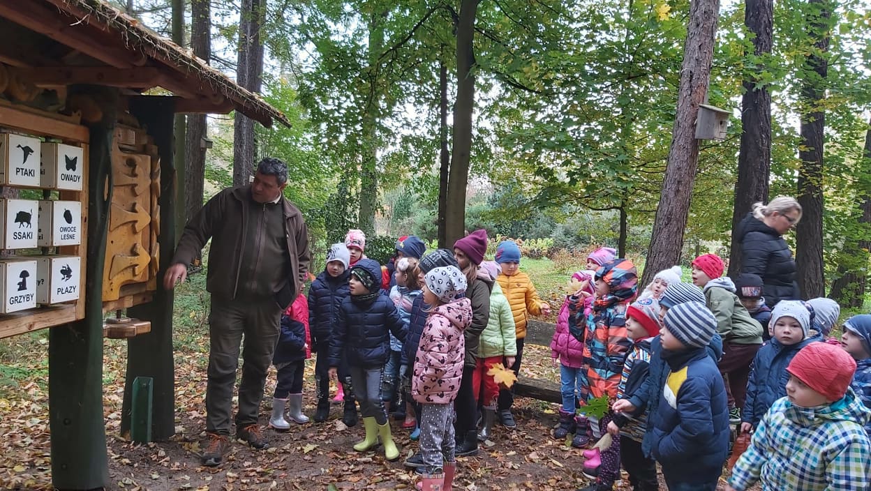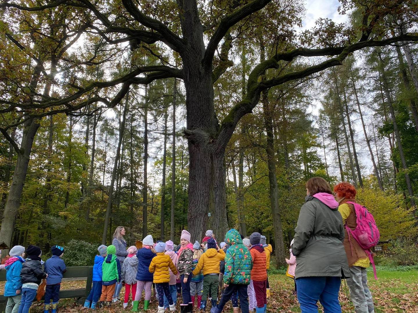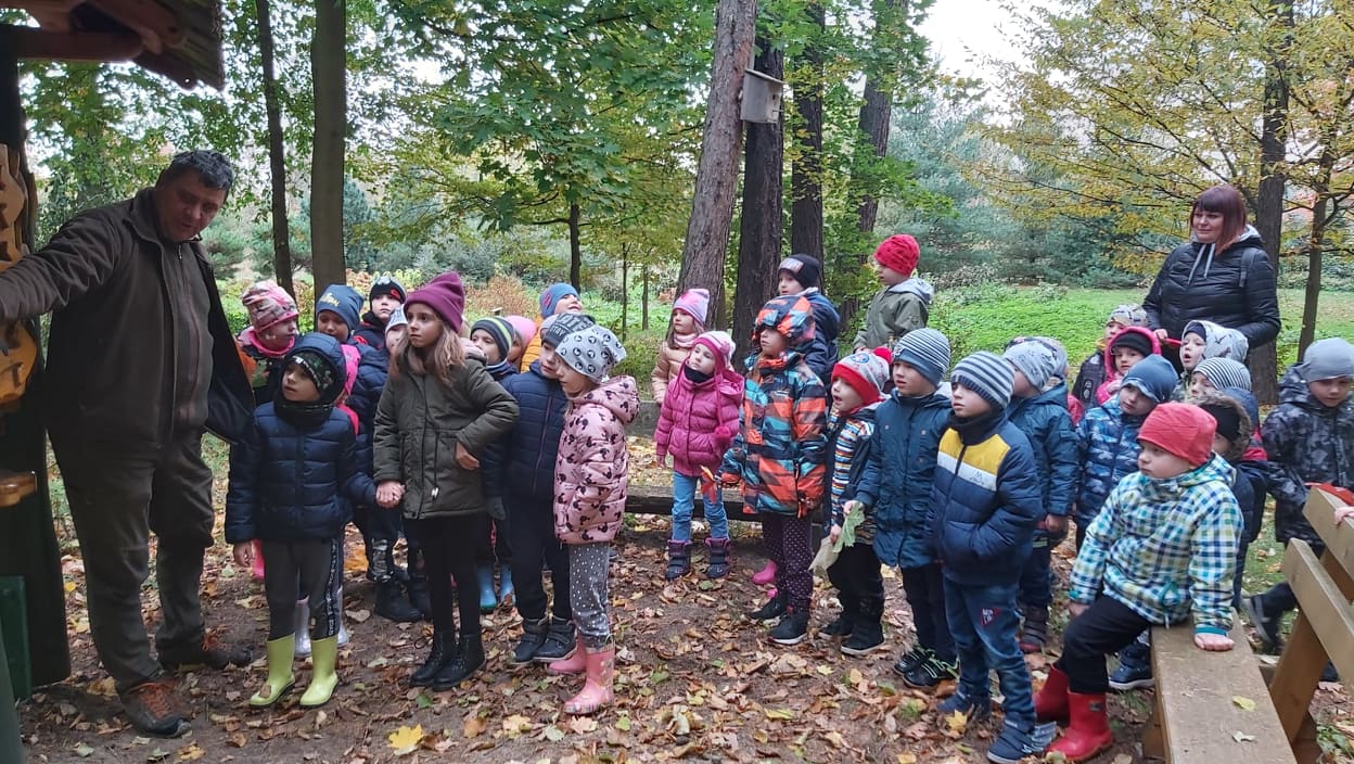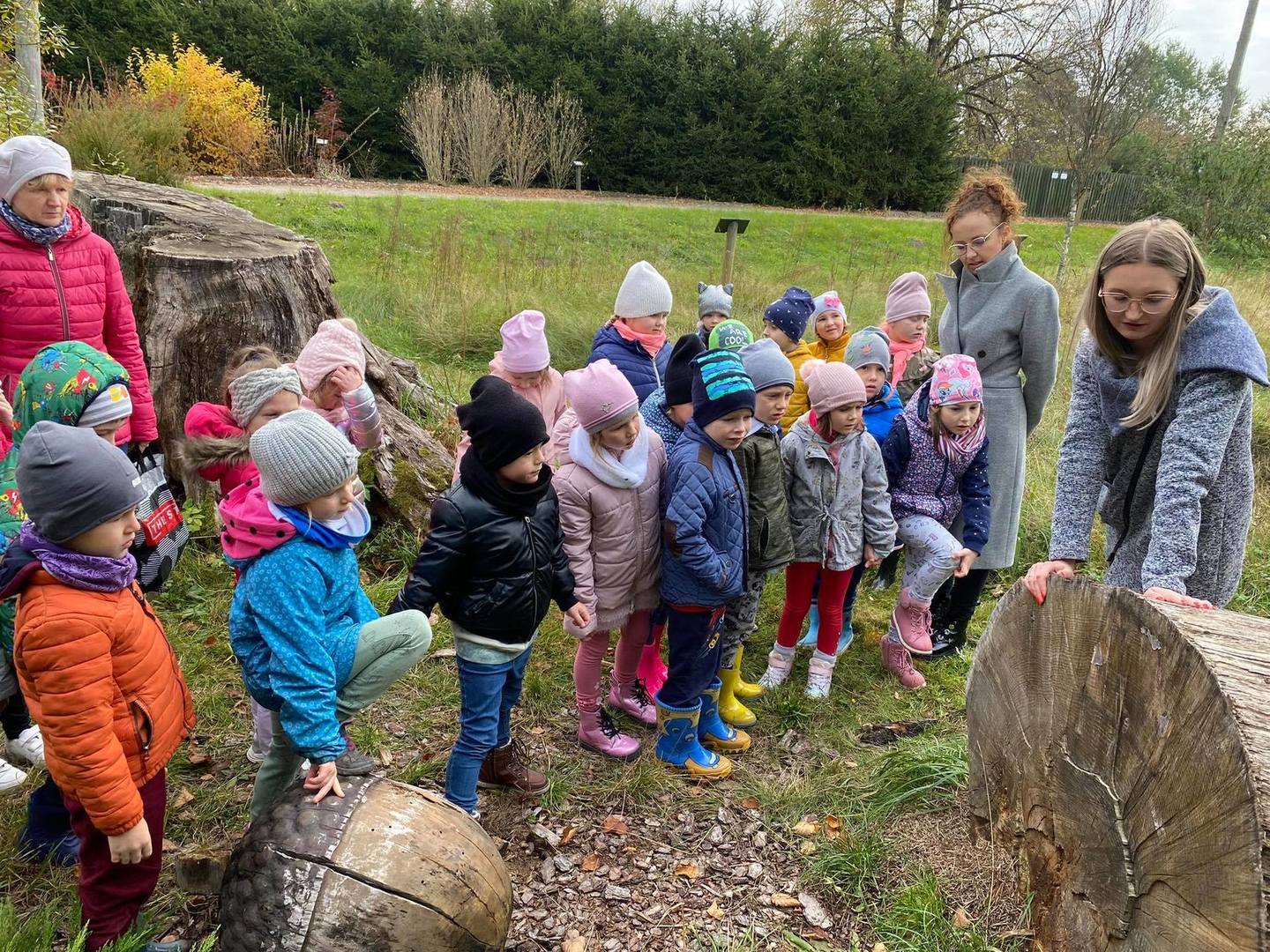 W dniach 13 i 15 października 2021 roku nasze przedszkolaki odwiedziły Nadleśnictwo w Marculach. Na miejscu przywitał nas pan leśniczy, który oprowadził nas po Arboretum. W trakcie wycieczki dzieci mogły usłyszeć wiele ciekawych opowieści o drzewach