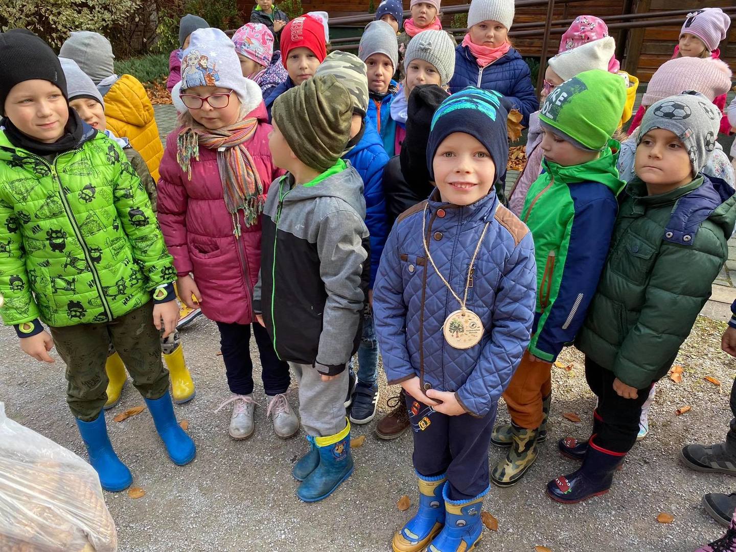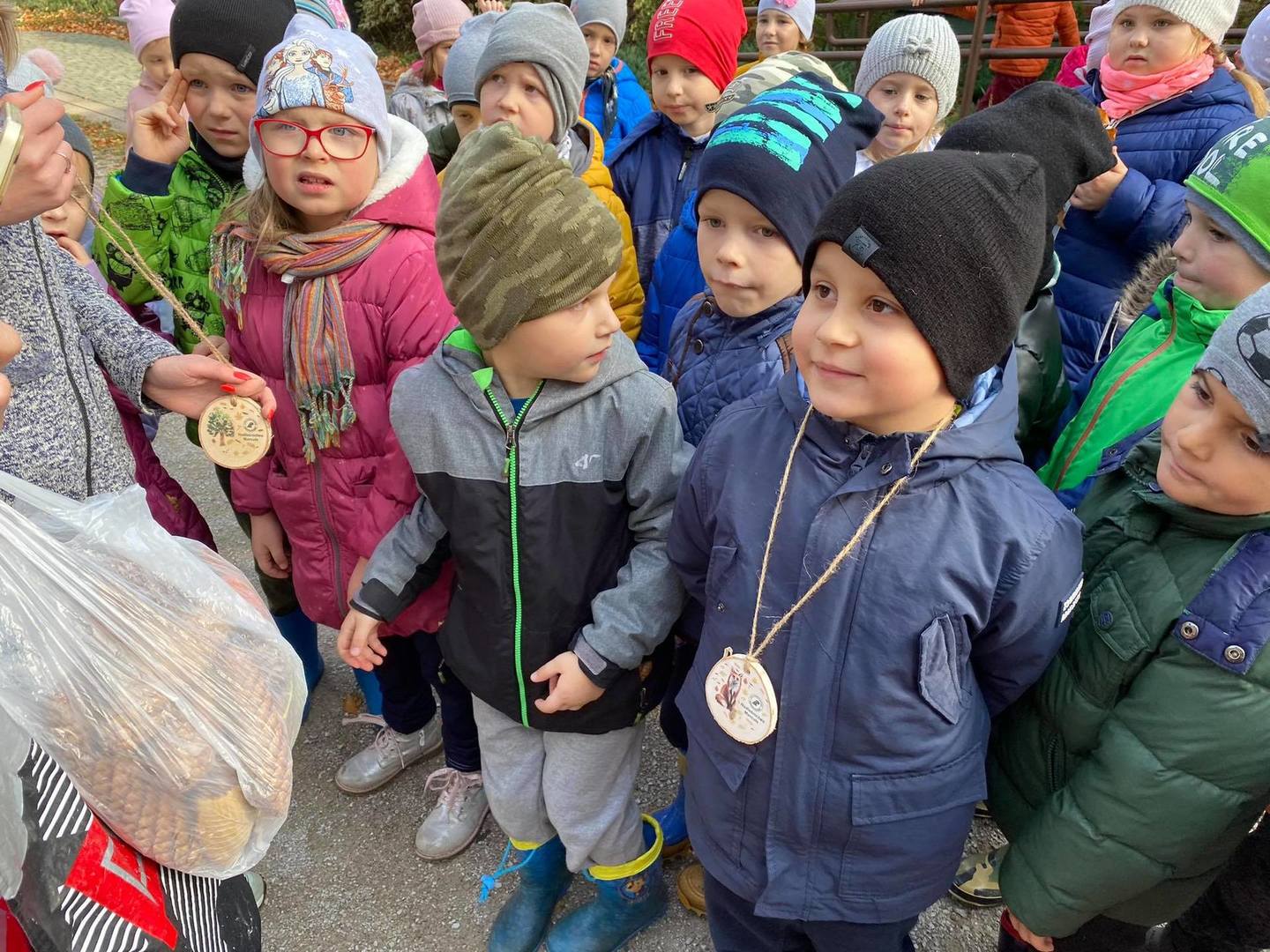 Nasze przedszkolaki na długo nie zapomną o tej wycieczce, ponieważ przywieźli z niej nie tylko uśmiechnięte buzie, ale również pamiątkowe medale wykonane z drewna. Hojny pan leśniczy obdarował także nasze przedszkole sadzonką dębu, która będzie nam przypominać o tym niezwykłym miejscu jakim jest Arboretum w Marculach.