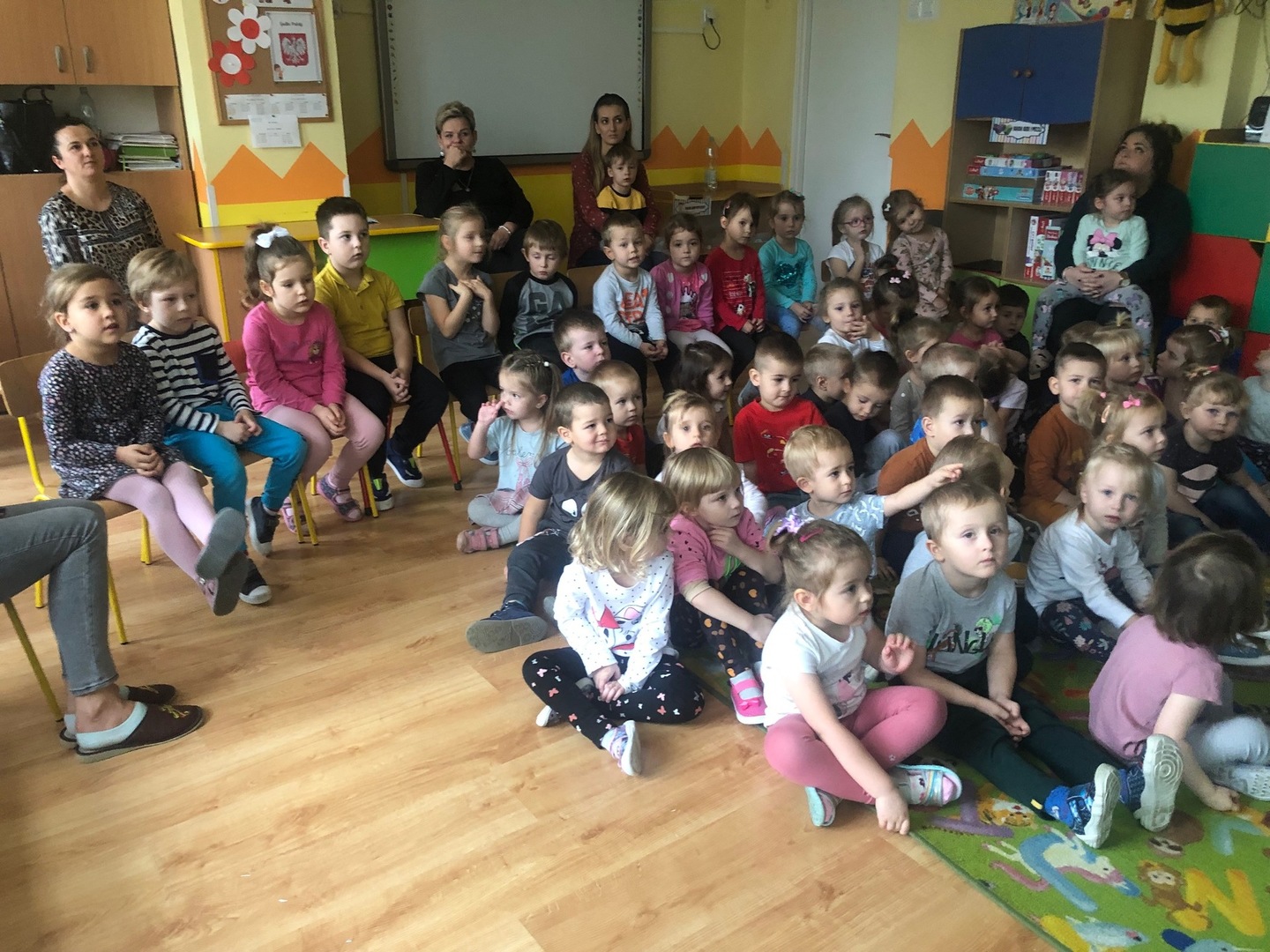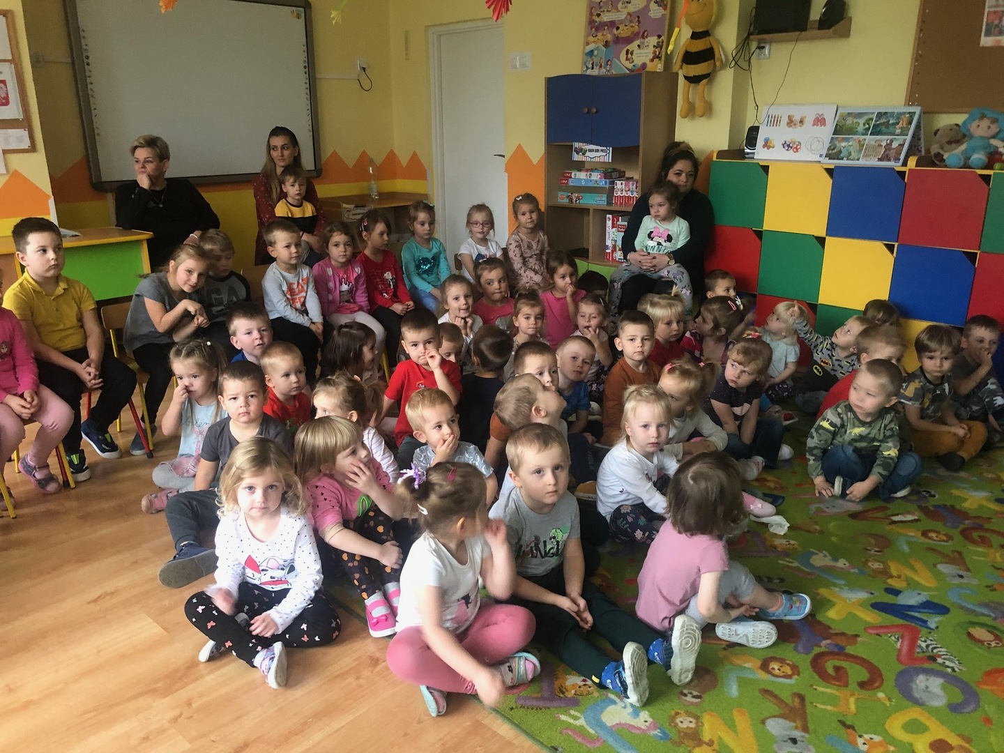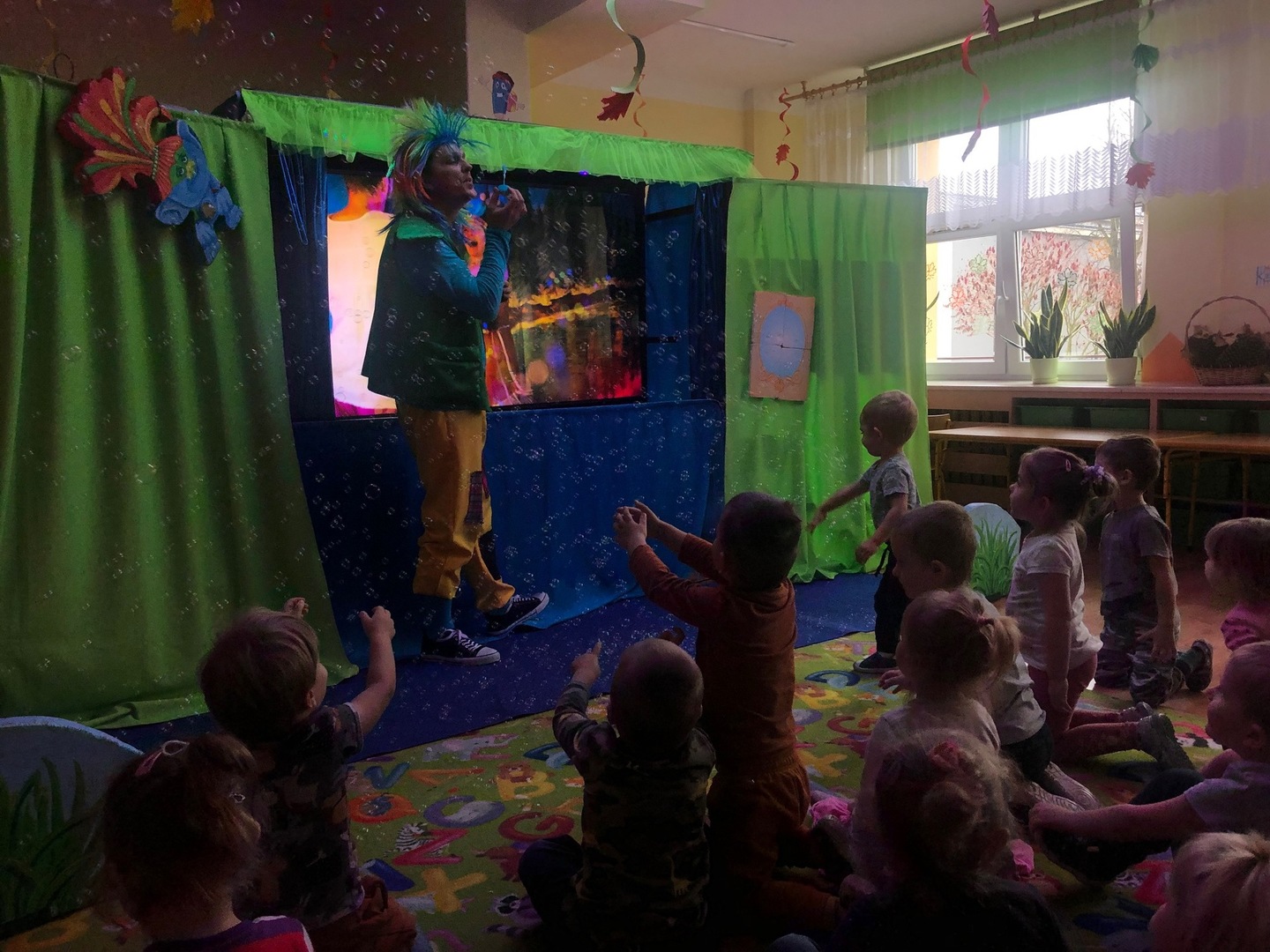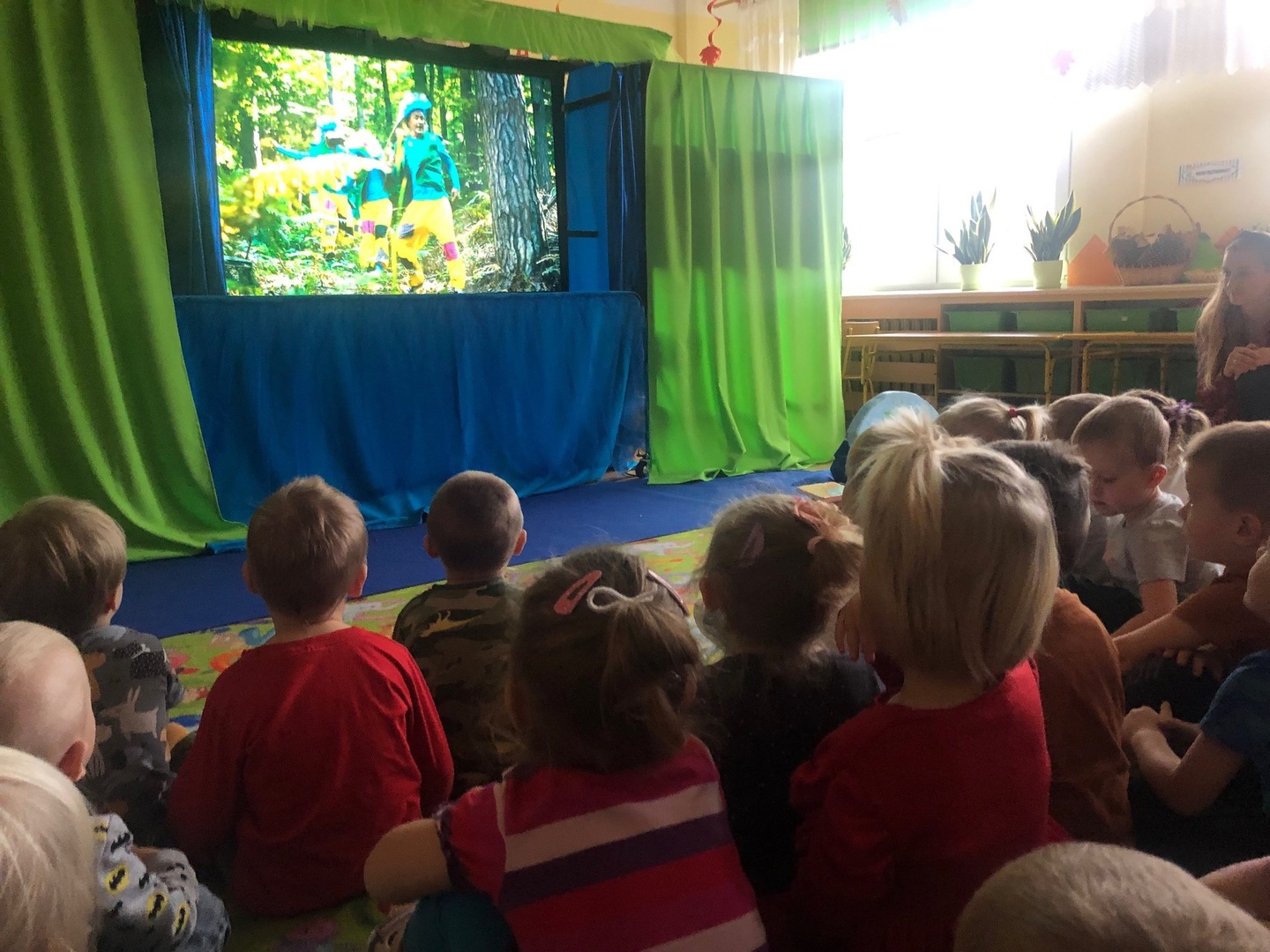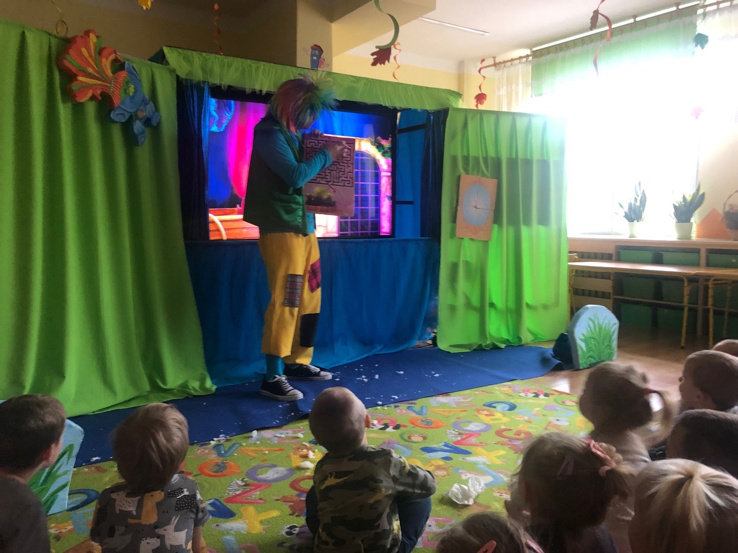 W poniedziałek 15 listopada nasze przedszkolaki obejrzały spektakl teatralny pt. "Interaktywne spotkanie z bajką". Dzieci poznały bohaterów bajek: „Pinokio”, „Sindbad”, „Królowa Śniegu” i „Pocahontas”. Projekcja dostarczyła dzieciom wielu emocji. Z zaciekawieniem słuchały narratora, odpowiadały na jego pytania oraz obserwowały iluminację i łapały bańki mydlane. Na zakończenie każde dziecko otrzymało książeczkę wraz z zakładkami z wizerunkiem bohaterów obejrzanych bajek.