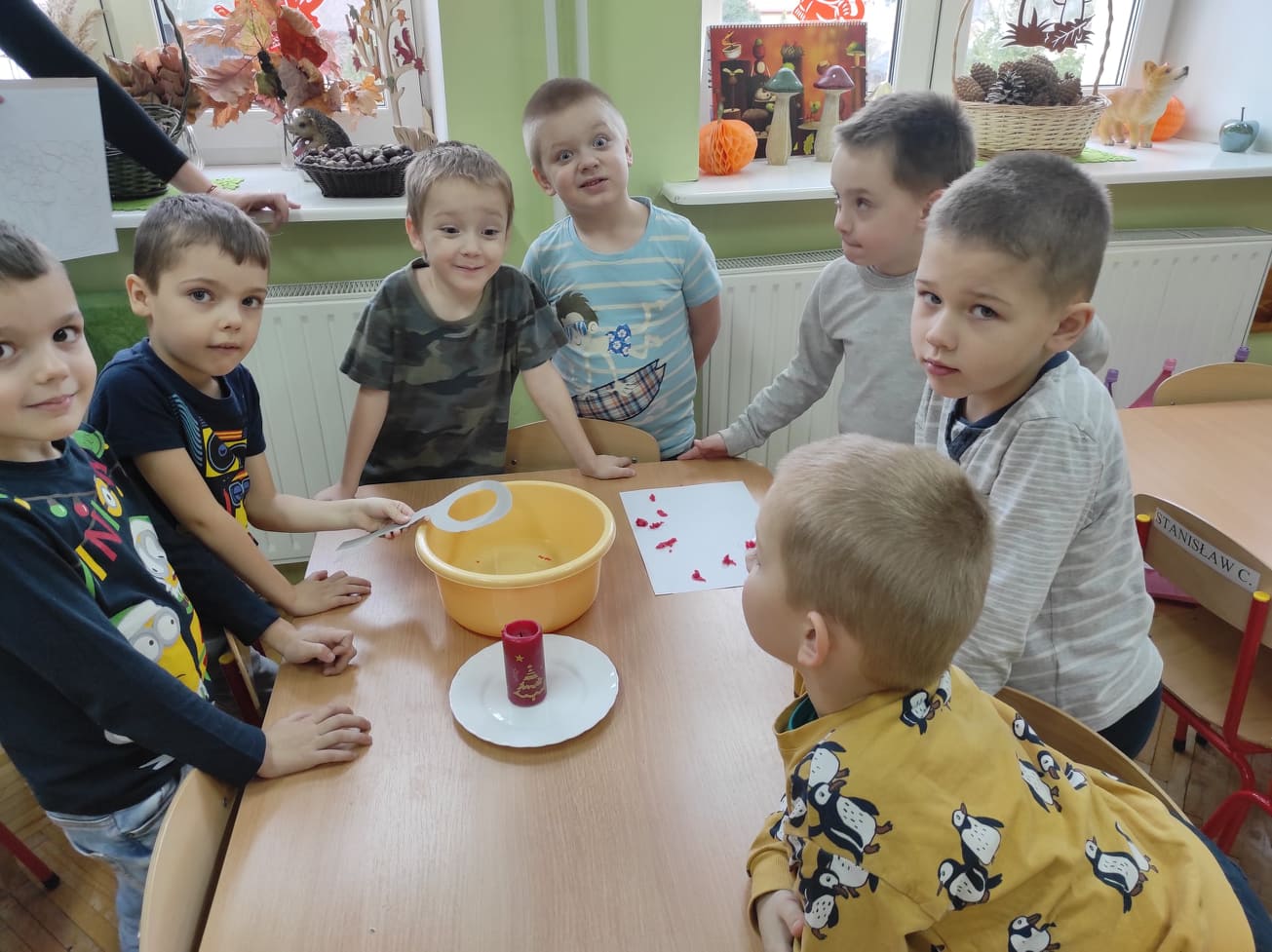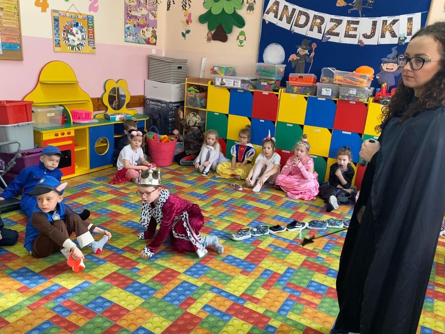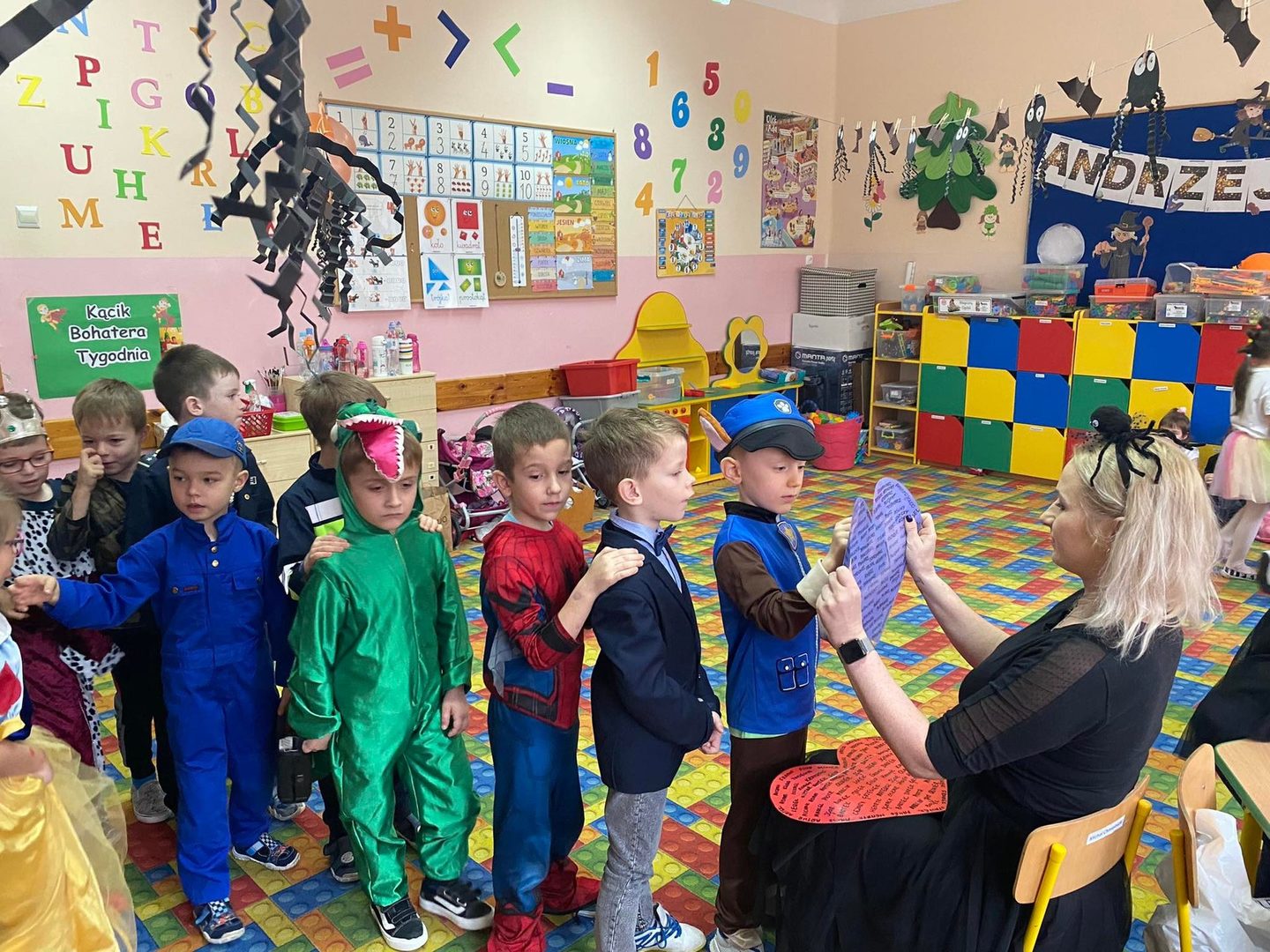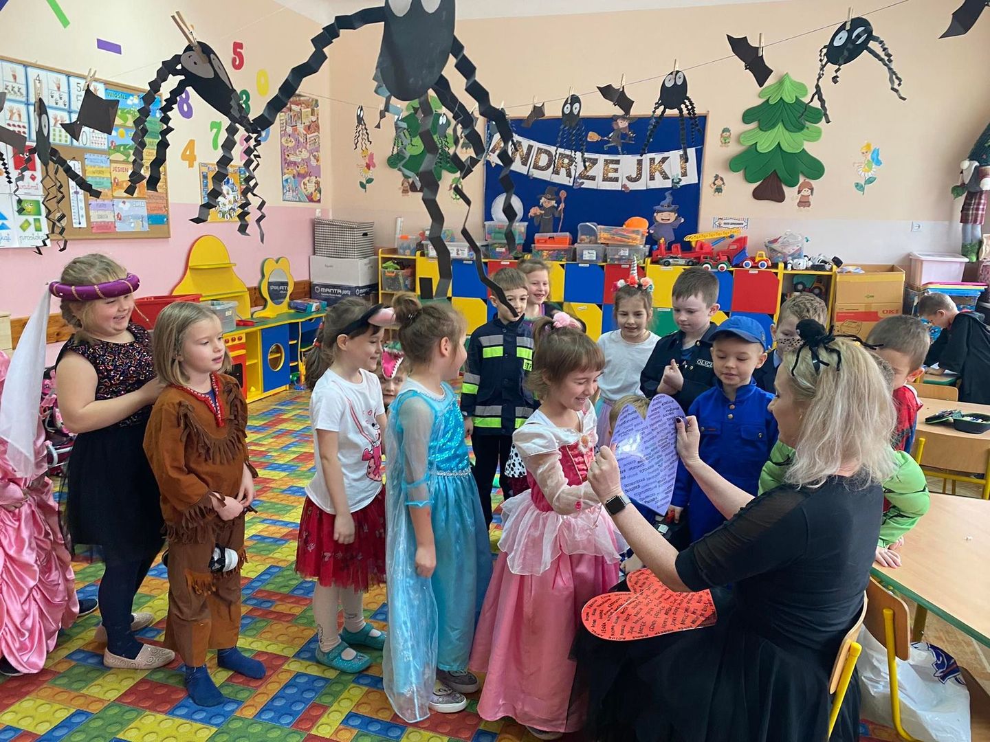 30 listopada nasze Starszaki przeniosły się w magiczny świat wróżb i zabaw andrzejkowych. W każdej grupie przedszkolaki chciały zajrzeć w przyszłość, sprawdzić co je czeka. Poznały zwyczaje i tradycje andrzejkowe, integrowały się w zabawie, współdziałały z grupą kolegów i koleżanek. Ten dzień był dniem radosnych zabaw i wróżb, w których dzieci mogły poznać swoją bliższą i dalszą przyszłość. Nie zabrakło przekłuwania serduszek z imionami, losowania swoich przyszłych zawodów, a także ustawiania butów, aby sprawdzić, który chłopiec pierwszy się ożeni i która dziewczynka pierwsza wyjdzie za mąż. Wróżby przeplatane były tańcami oraz zabawami przy skocznej muzyce. Pod koniec zabawy przedszkolaki częstowały się słodkim poczęstunkiem. Czy wróżby się spełnią? Przyszłość nam pokaże. Jednego możemy być pewni, że dały one naszym Starszakom wiele radości i po raz kolejny były okazją do wspólnej, wesołej zabawy.
