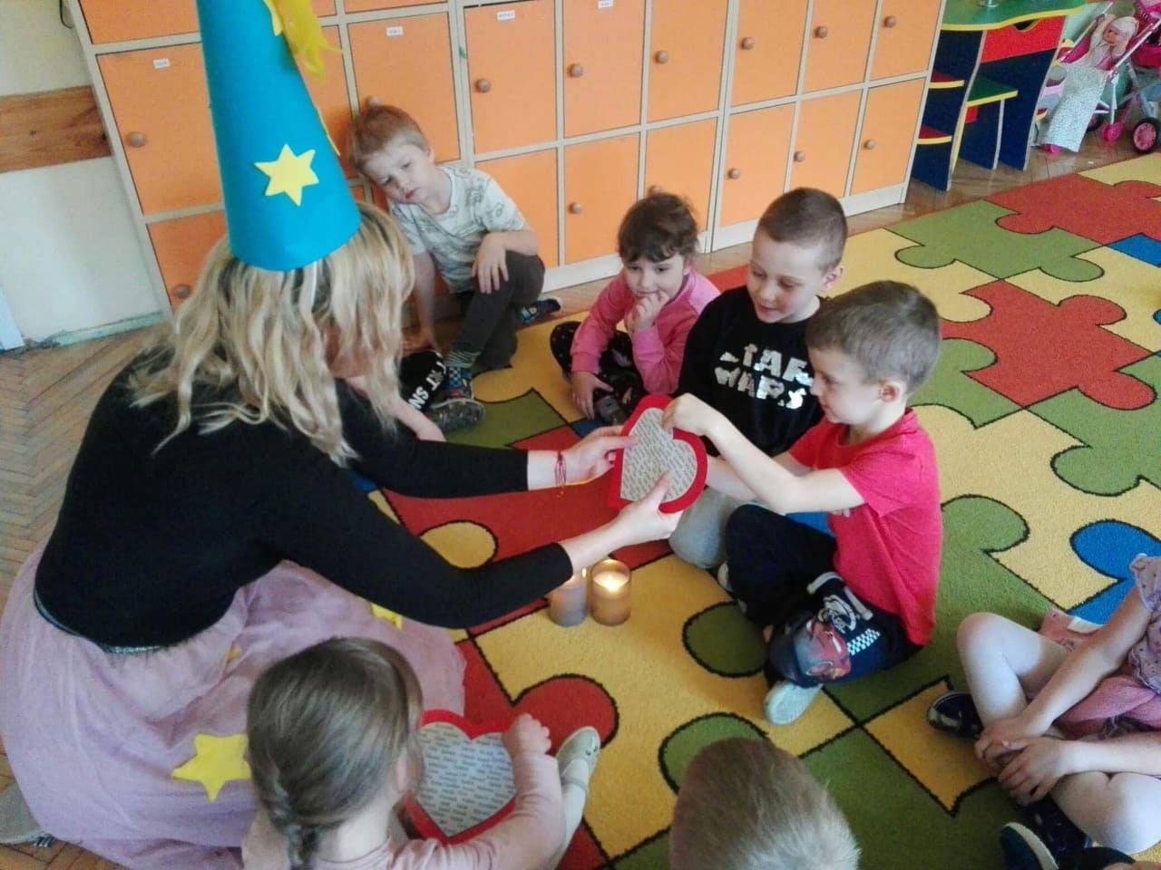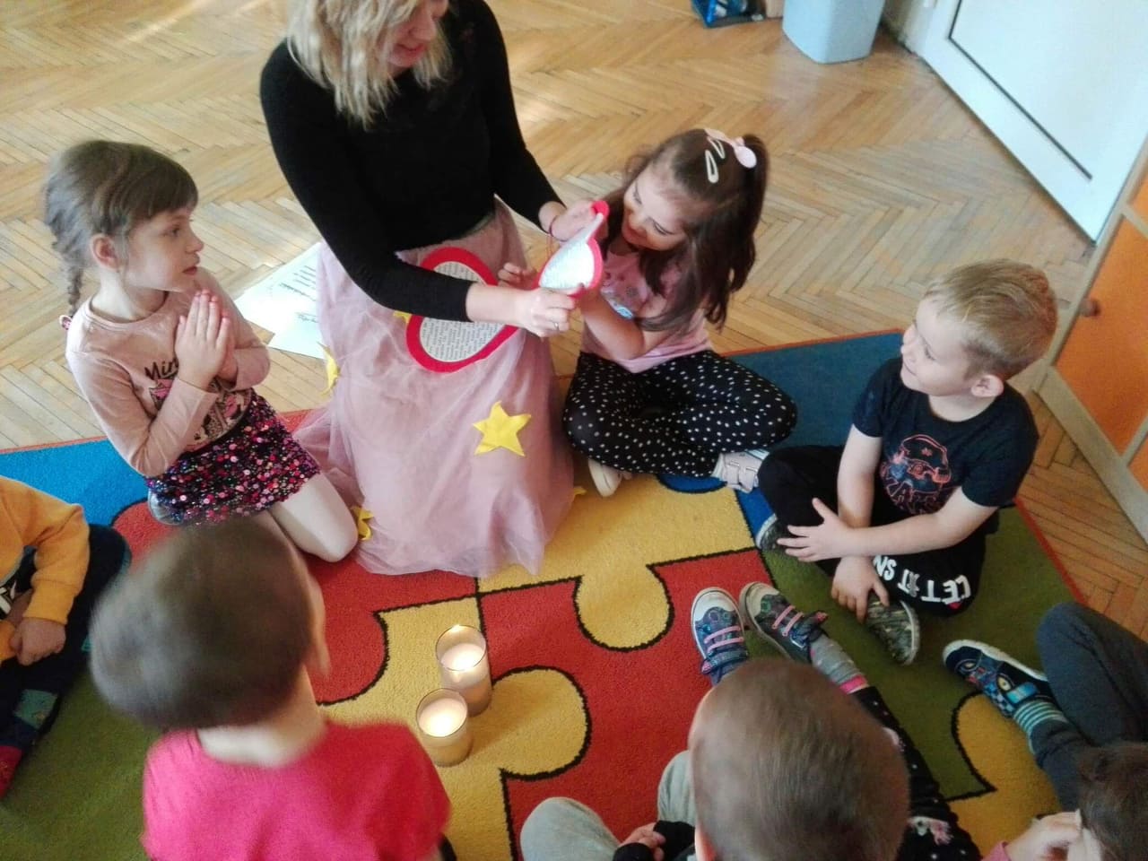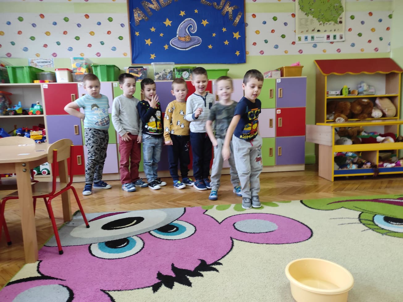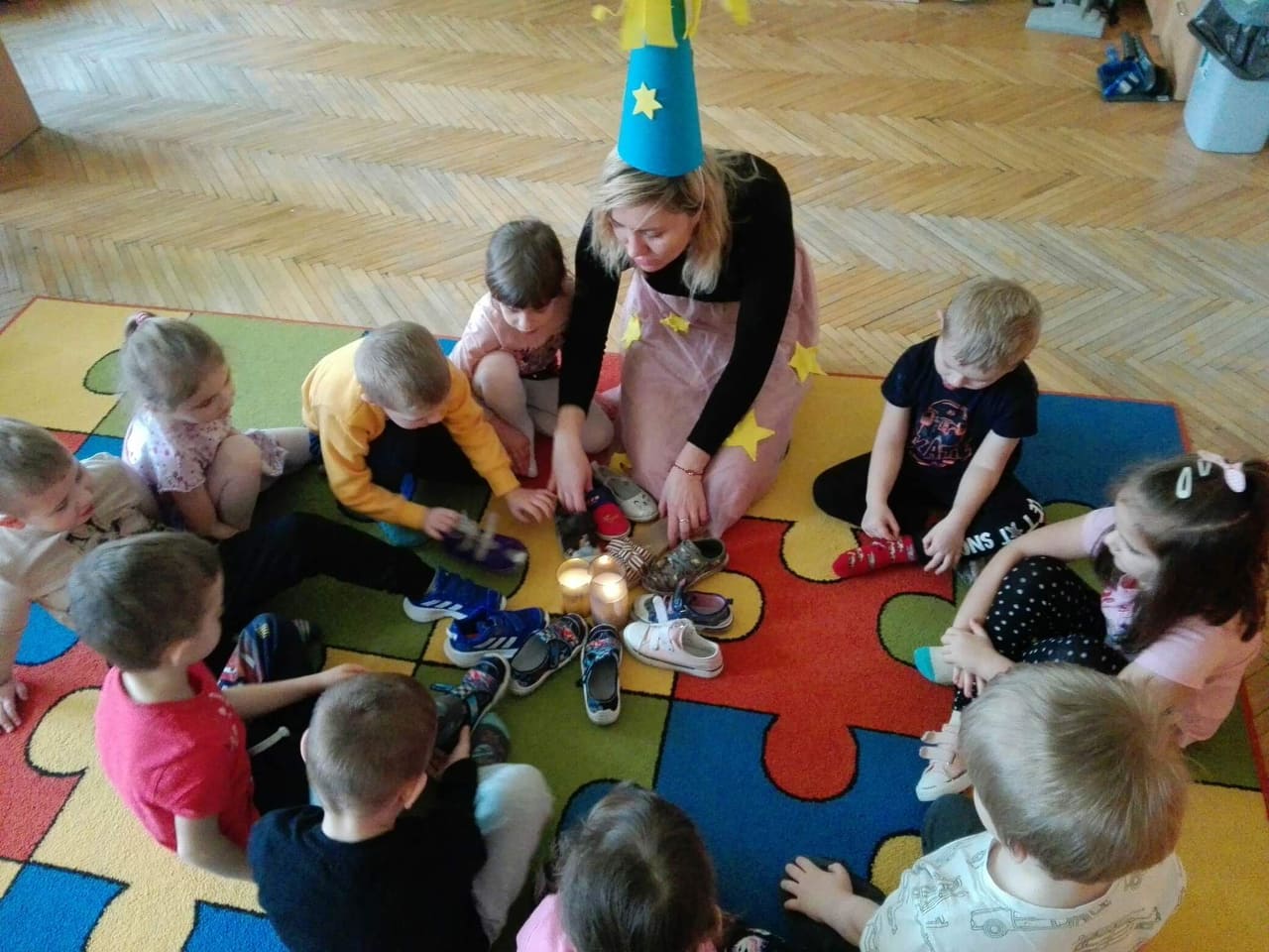 30 listopada nasze Starszaki przeniosły się w magiczny świat wróżb i zabaw andrzejkowych. W każdej grupie przedszkolaki chciały zajrzeć w przyszłość, sprawdzić co je czeka. Poznały zwyczaje i tradycje andrzejkowe, integrowały się w zabawie, współdziałały z grupą kolegów i koleżanek. Ten dzień był dniem radosnych zabaw i wróżb, w których dzieci mogły poznać swoją bliższą i dalszą przyszłość. Nie zabrakło przekłuwania serduszek z imionami, losowania swoich przyszłych zawodów, a także ustawiania butów, aby sprawdzić, który chłopiec pierwszy się ożeni i która dziewczynka pierwsza wyjdzie za mąż. Wróżby przeplatane były tańcami oraz zabawami przy skocznej muzyce. Pod koniec zabawy przedszkolaki częstowały się słodkim poczęstunkiem. Czy wróżby się spełnią? Przyszłość nam pokaże. Jednego możemy być pewni, że dały one naszym Starszakom wiele radości i po raz kolejny były okazją do wspólnej, wesołej zabawy.