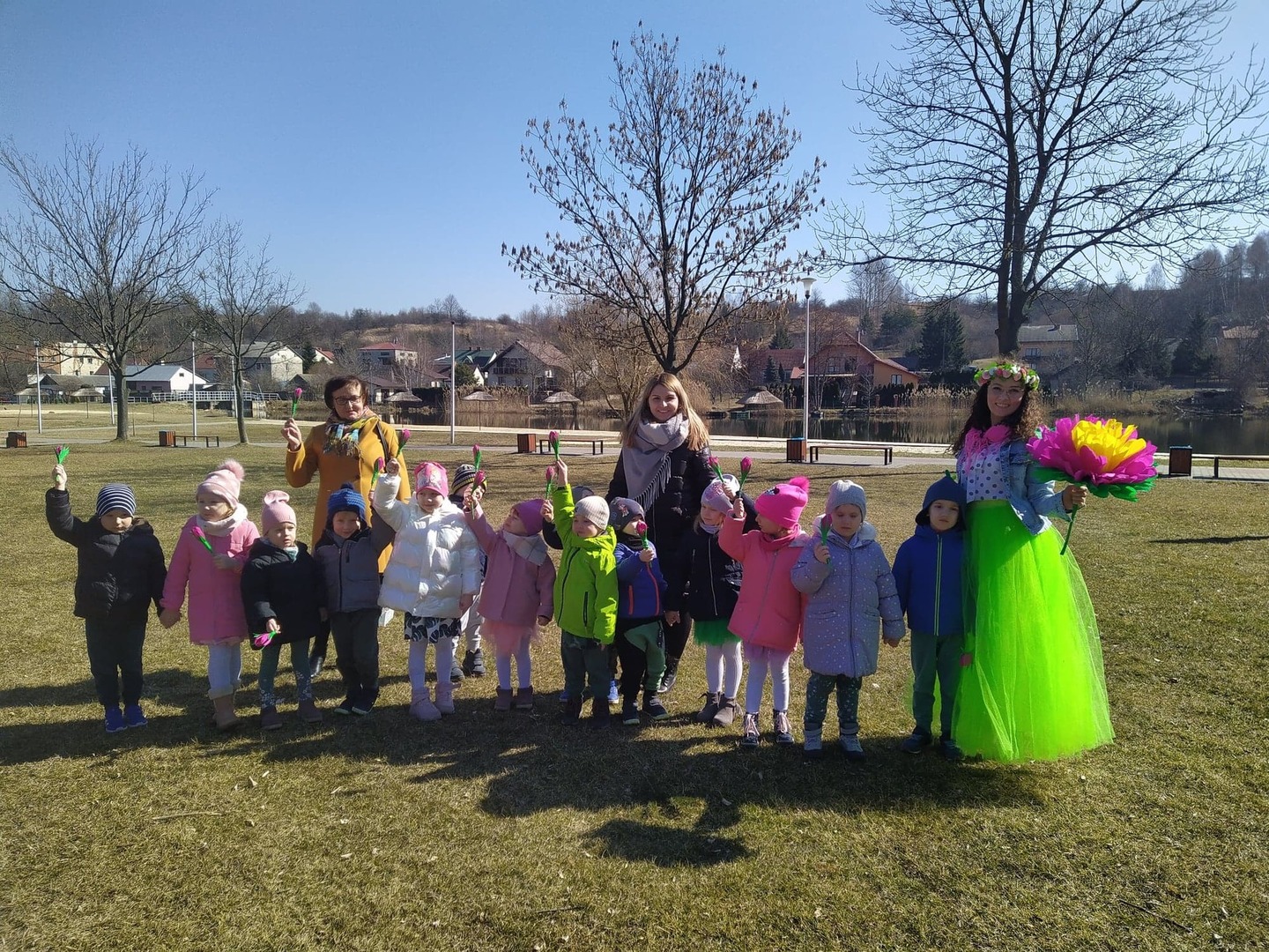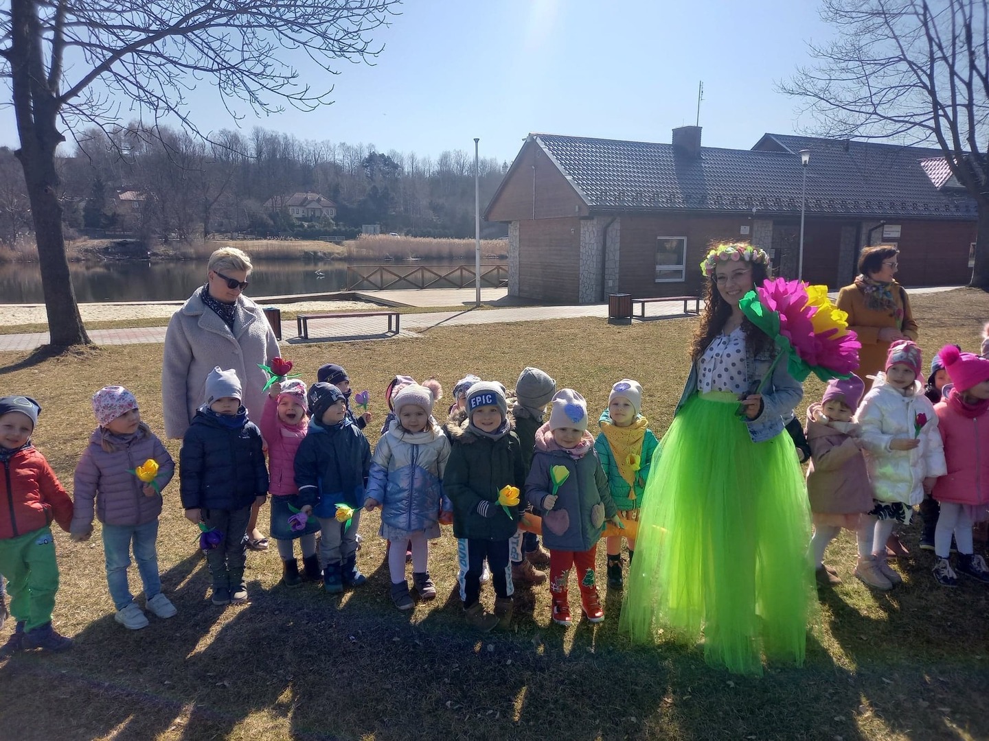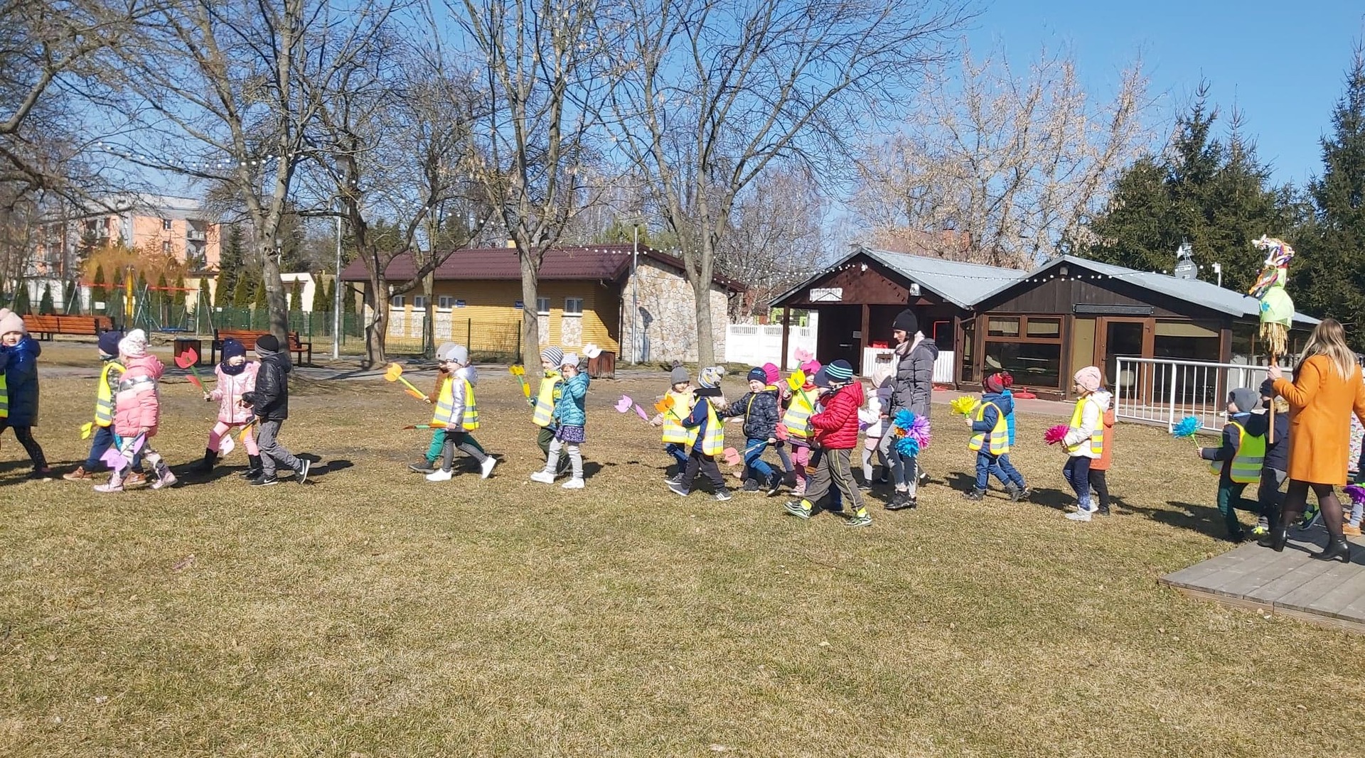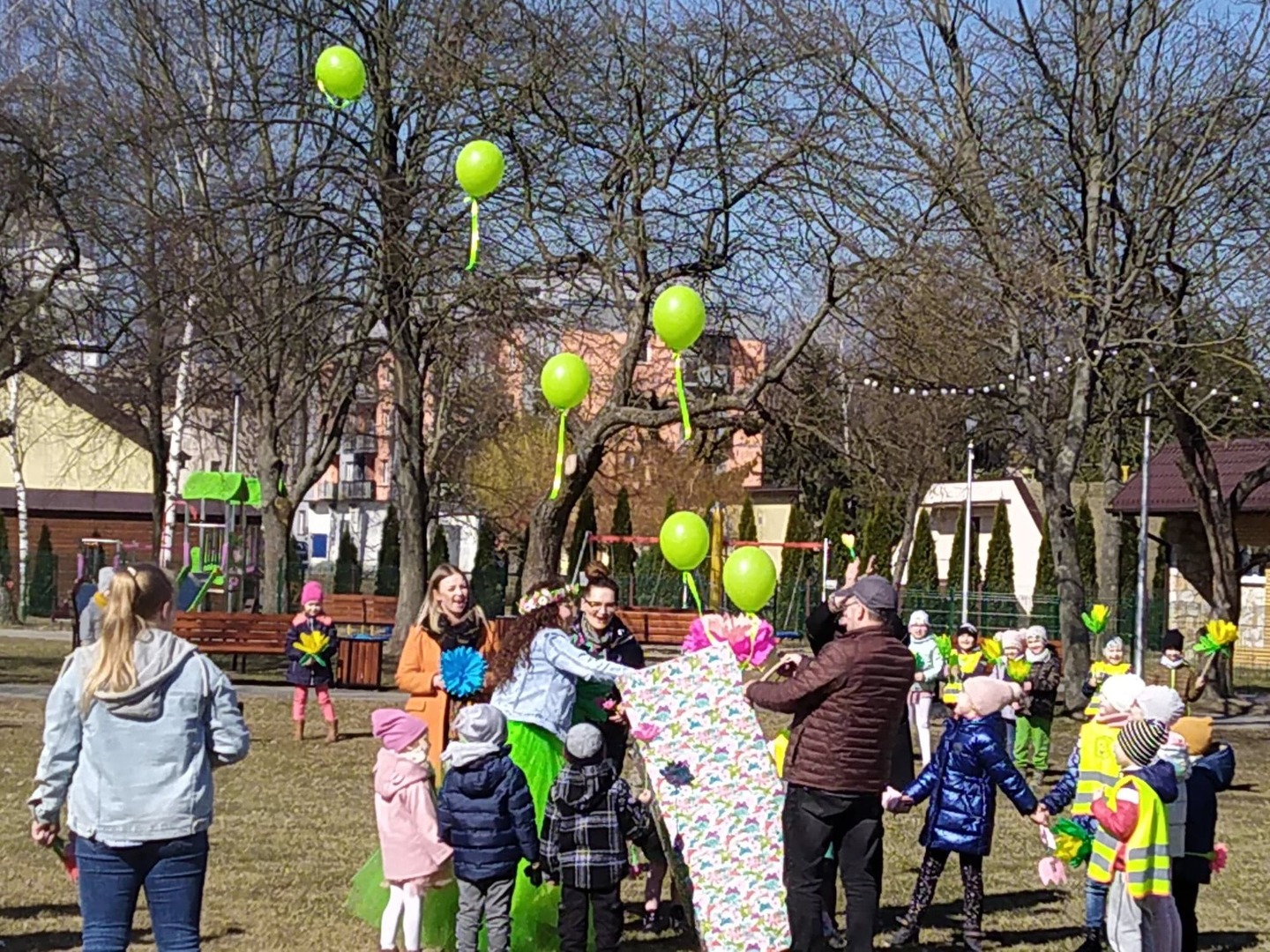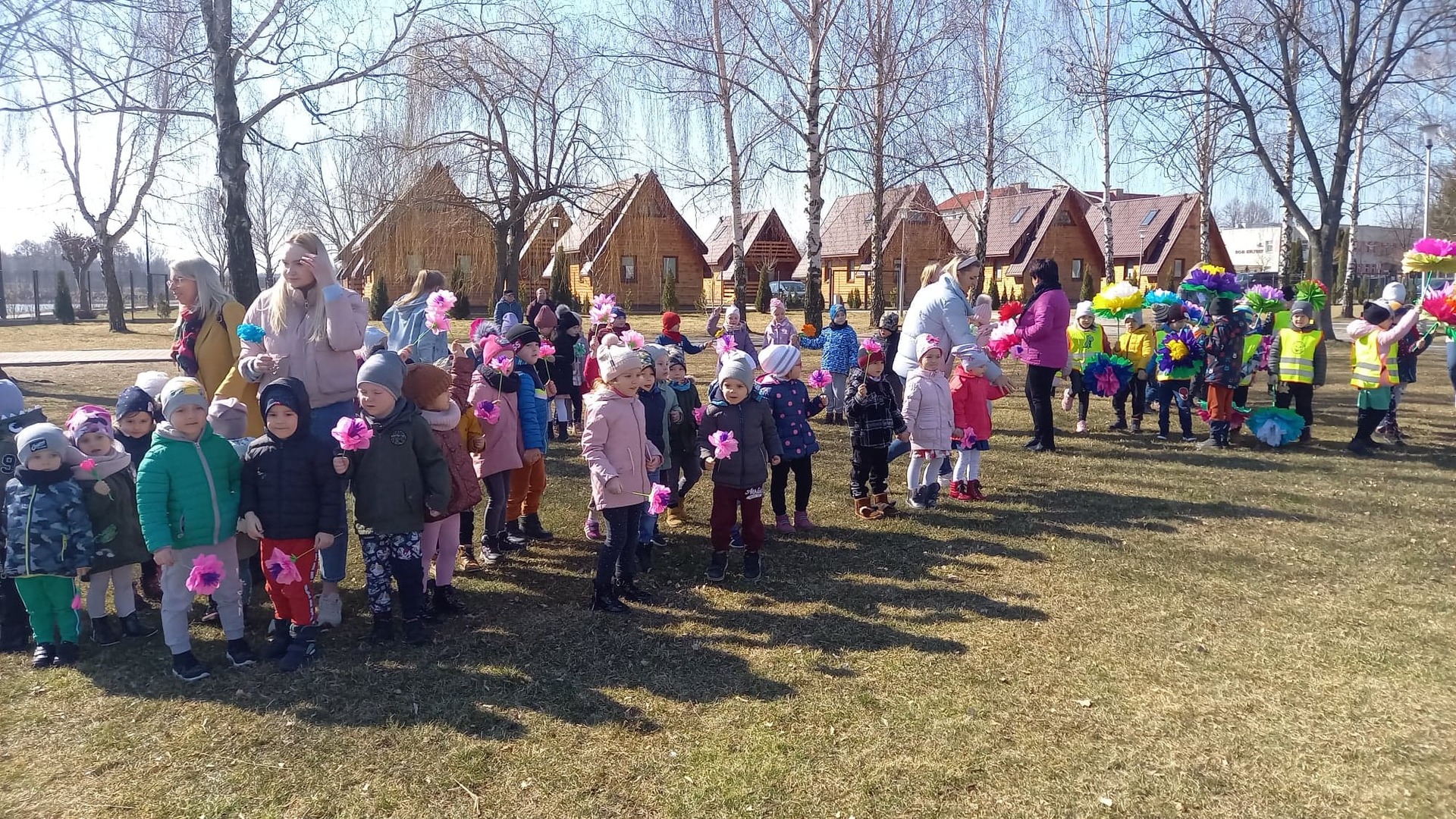 21 marca dzieci z naszego przedszkola uroczyście powitały nową porę roku Wiosnę, zaś pożegnały Zimę. Barwnym korowodem wspólnie z Marzanną i kolorowymi kwiatami przemaszerowały ulicami naszego miasta. Następnie wszyscy udaliśmy się na Przystań, gdzie przywitała nas Pani Wiosna - kolorowa i radosna. Przedszkolaki zaśpiewały dla niej piosenki i razem z nią zatańczyły. Wspólnie pożegnaliśmy Marzannę, powtarzając głośno „Marzanno, Marzanno Ty zimowa panno! Ciebie żegnamy, wiosnę witamy!” Na koniec Pani Wiosna przygotowała dla nas niespodziankę. Były to zielone baloniki, które wspólnie wypuściliśmy wysoko w górę, mając nadzieję, że Wiosna zostanie z nami na dobre a Zimę zobaczymy dopiero za rok.