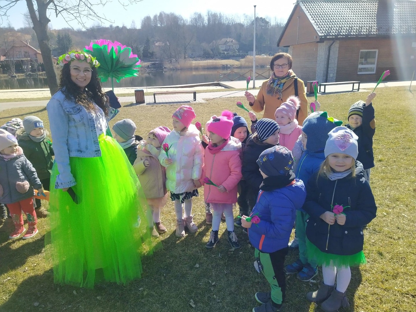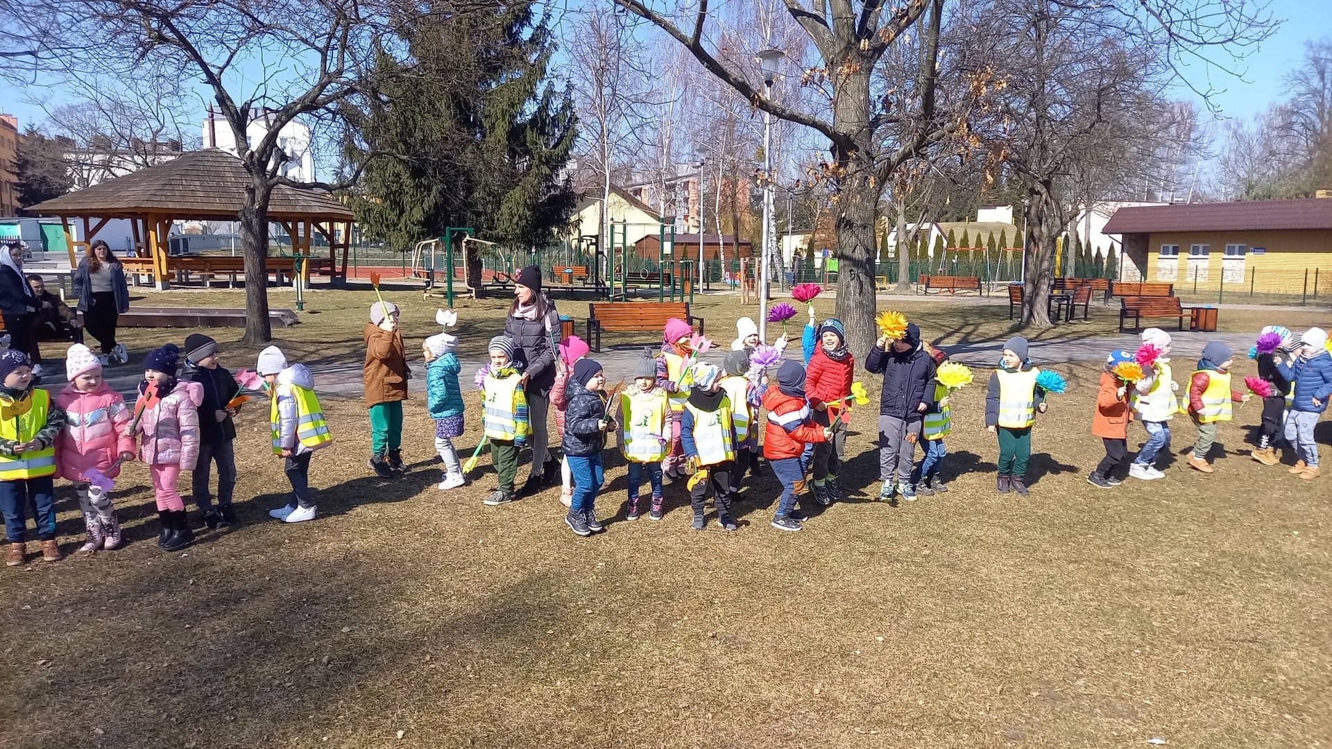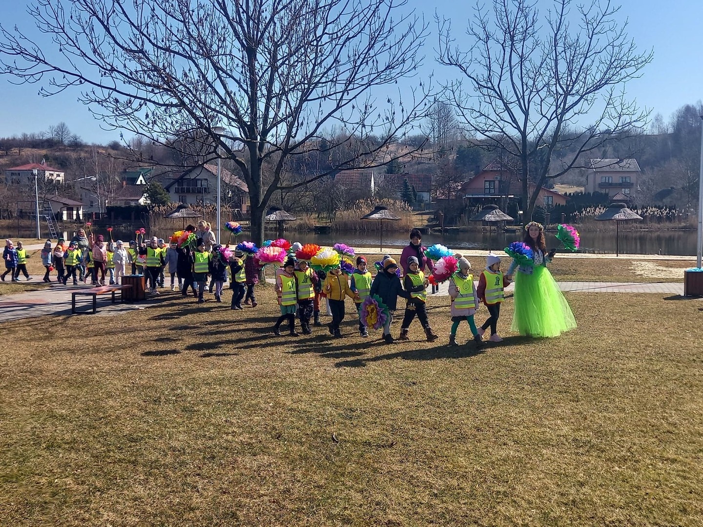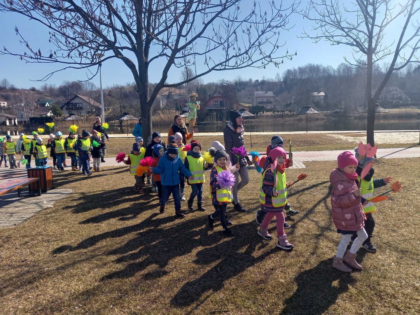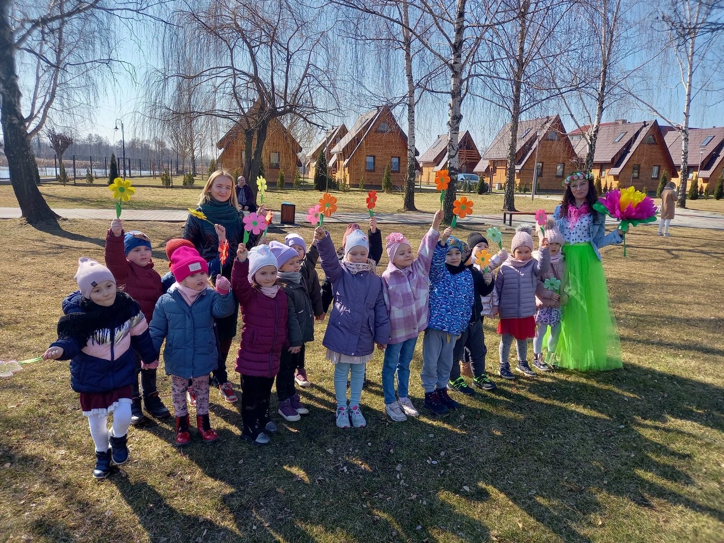 21 marca dzieci z naszego przedszkola uroczyście powitały nową porę roku Wiosnę, zaś pożegnały Zimę. Barwnym korowodem wspólnie z Marzanną i kolorowymi kwiatami przemaszerowały ulicami naszego miasta. Następnie wszyscy udaliśmy się na Przystań, gdzie przywitała nas Pani Wiosna - kolorowa i radosna. Przedszkolaki zaśpiewały dla niej piosenki i razem z nią zatańczyły. Wspólnie pożegnaliśmy Marzannę, powtarzając głośno „Marzanno, Marzanno Ty zimowa panno! Ciebie żegnamy, wiosnę witamy!” Na koniec Pani Wiosna przygotowała dla nas niespodziankę. Były to zielone baloniki, które wspólnie wypuściliśmy wysoko w górę, mając nadzieję, że Wiosna zostanie z nami na dobre a Zimę zobaczymy dopiero za rok.