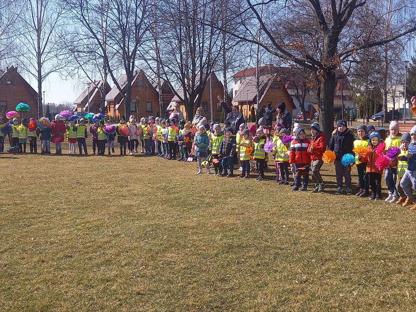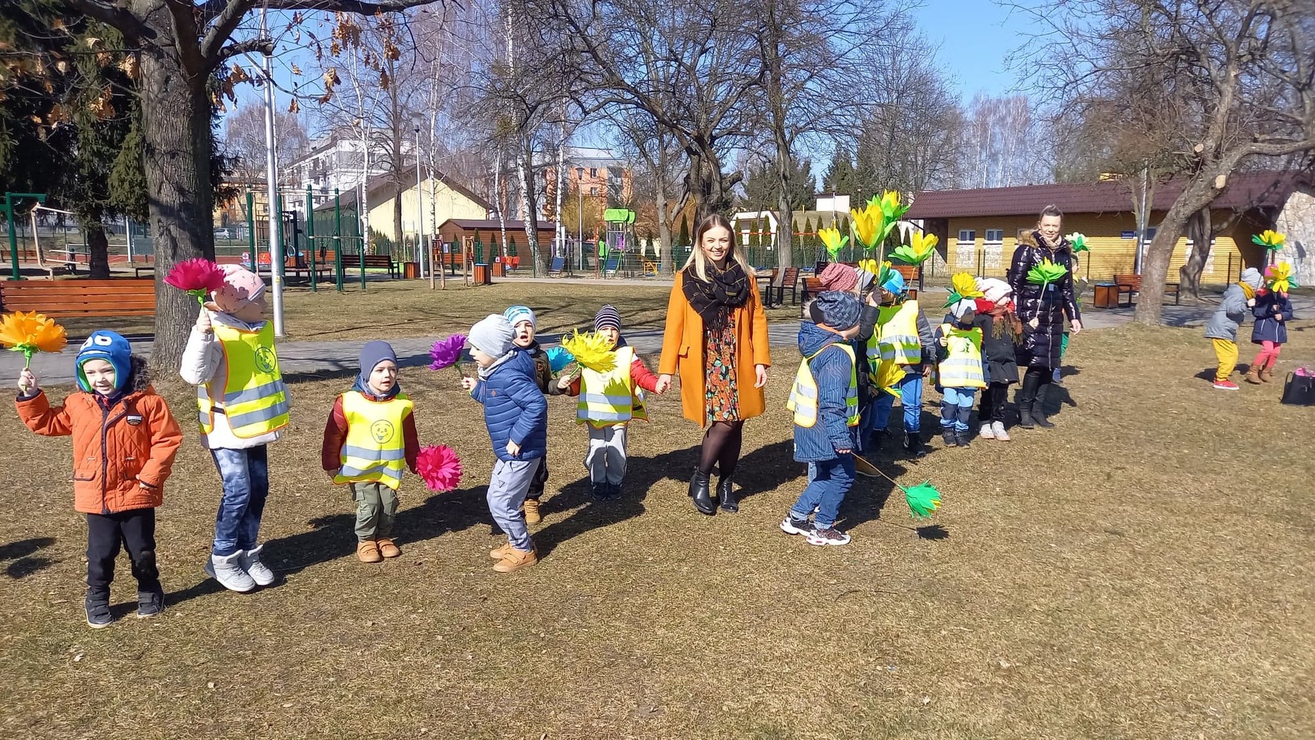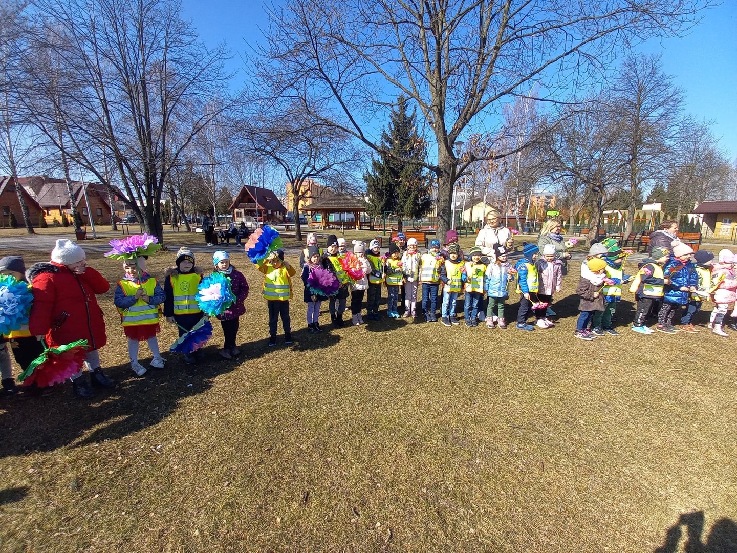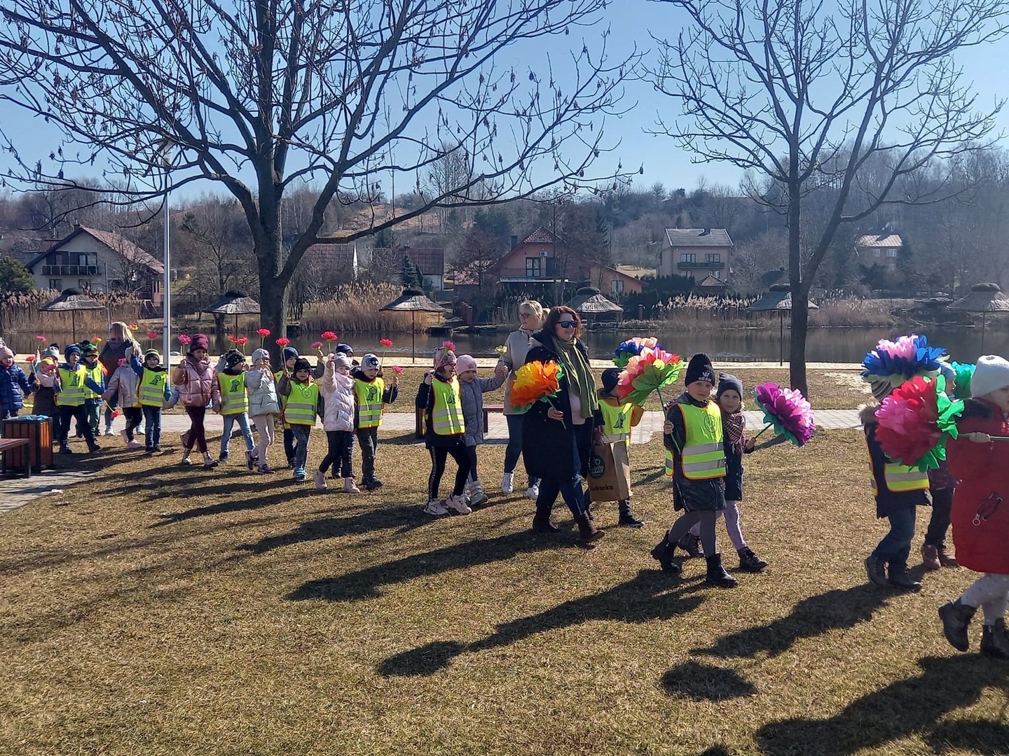 21 marca dzieci z naszego przedszkola uroczyście powitały nową porę roku Wiosnę, zaś pożegnały Zimę. Barwnym korowodem wspólnie z Marzanną i kolorowymi kwiatami przemaszerowały ulicami naszego miasta. Następnie wszyscy udaliśmy się na Przystań, gdzie przywitała nas Pani Wiosna - kolorowa i radosna. Przedszkolaki zaśpiewały dla niej piosenki i razem z nią zatańczyły. Wspólnie pożegnaliśmy Marzannę, powtarzając głośno „Marzanno, Marzanno Ty zimowa panno! Ciebie żegnamy, wiosnę witamy!” Na koniec Pani Wiosna przygotowała dla nas niespodziankę. Były to zielone baloniki, które wspólnie wypuściliśmy wysoko w górę, mając nadzieję, że Wiosna zostanie z nami na dobre a Zimę zobaczymy dopiero za rok.