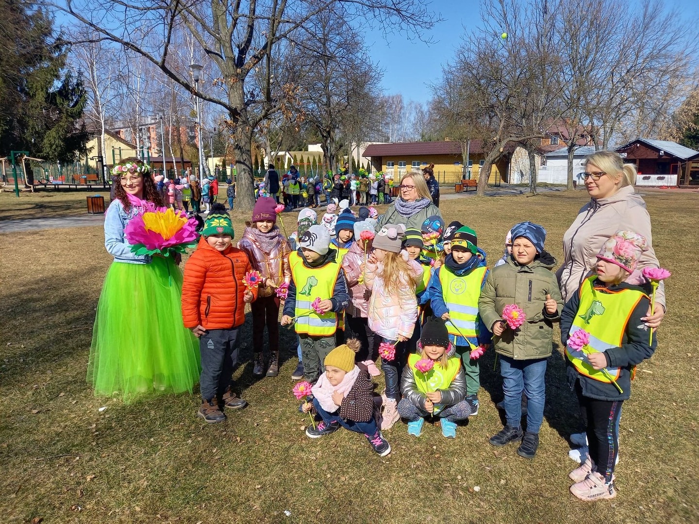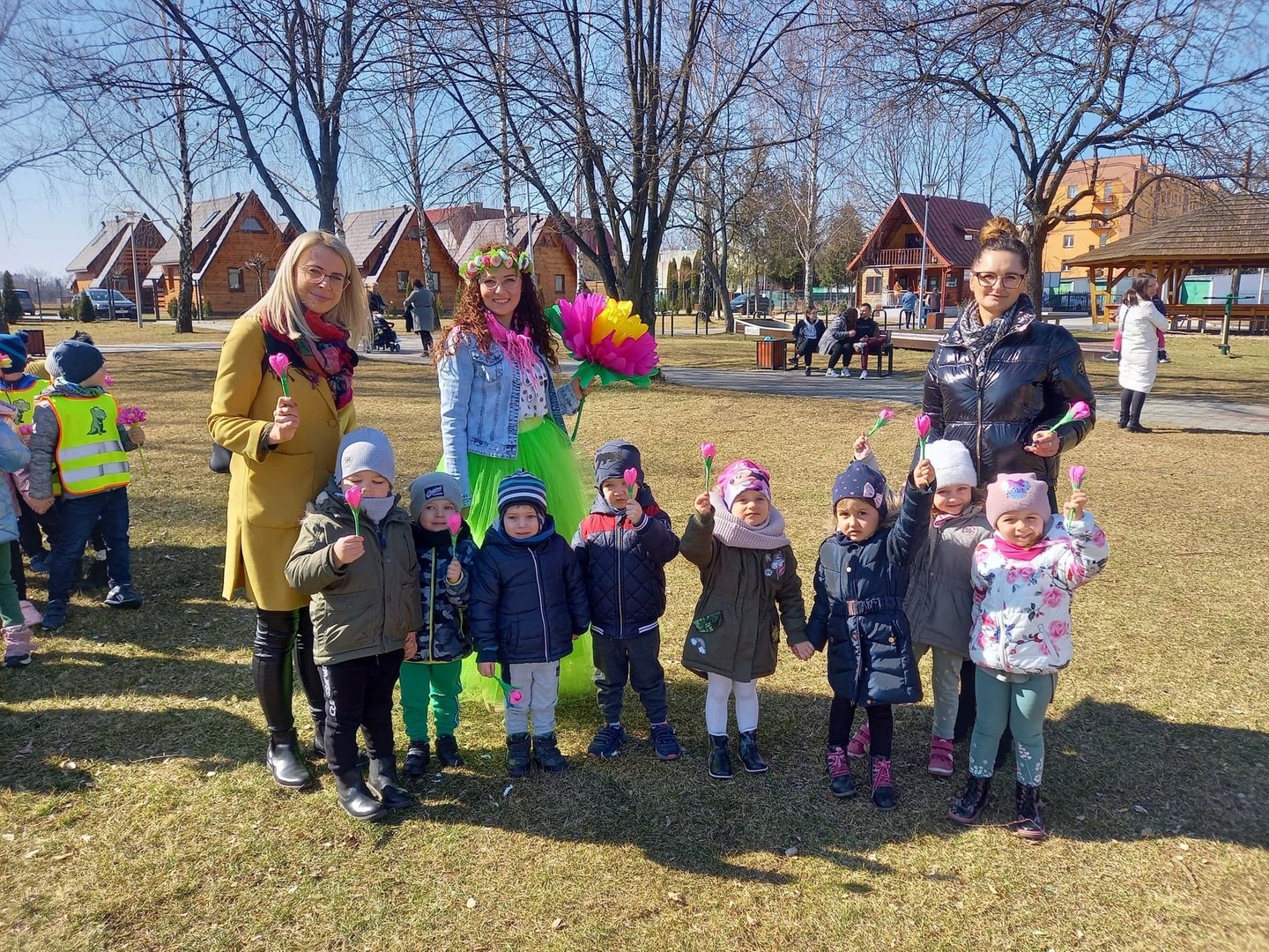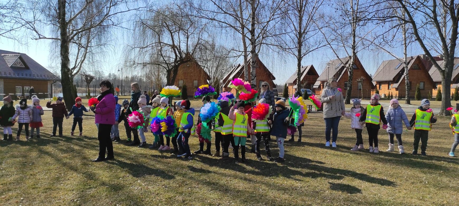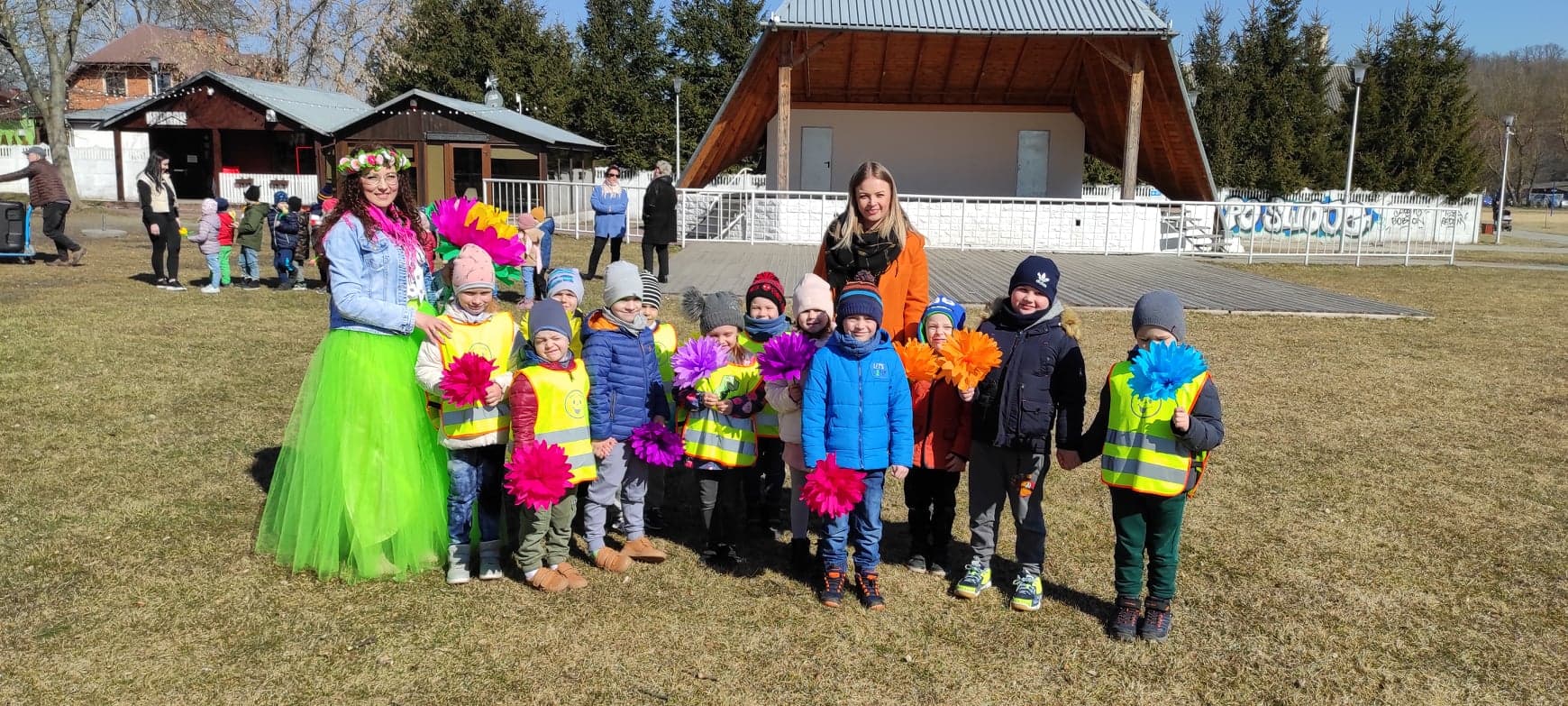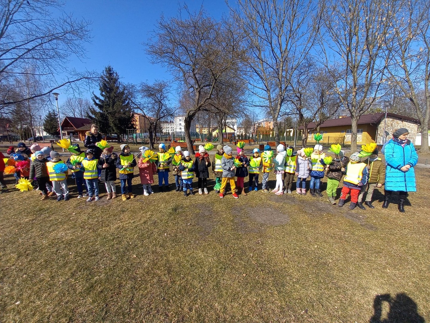 21 marca dzieci z naszego przedszkola uroczyście powitały nową porę roku Wiosnę, zaś pożegnały Zimę. Barwnym korowodem wspólnie z Marzanną i kolorowymi kwiatami przemaszerowały ulicami naszego miasta. Następnie wszyscy udaliśmy się na Przystań, gdzie przywitała nas Pani Wiosna - kolorowa i radosna. Przedszkolaki zaśpiewały dla niej piosenki i razem z nią zatańczyły. Wspólnie pożegnaliśmy Marzannę, powtarzając głośno „Marzanno, Marzanno Ty zimowa panno! Ciebie żegnamy, wiosnę witamy!” Na koniec Pani Wiosna przygotowała dla nas niespodziankę. Były to zielone baloniki, które wspólnie wypuściliśmy wysoko w górę, mając nadzieję, że Wiosna zostanie z nami na dobre a Zimę zobaczymy dopiero za rok.