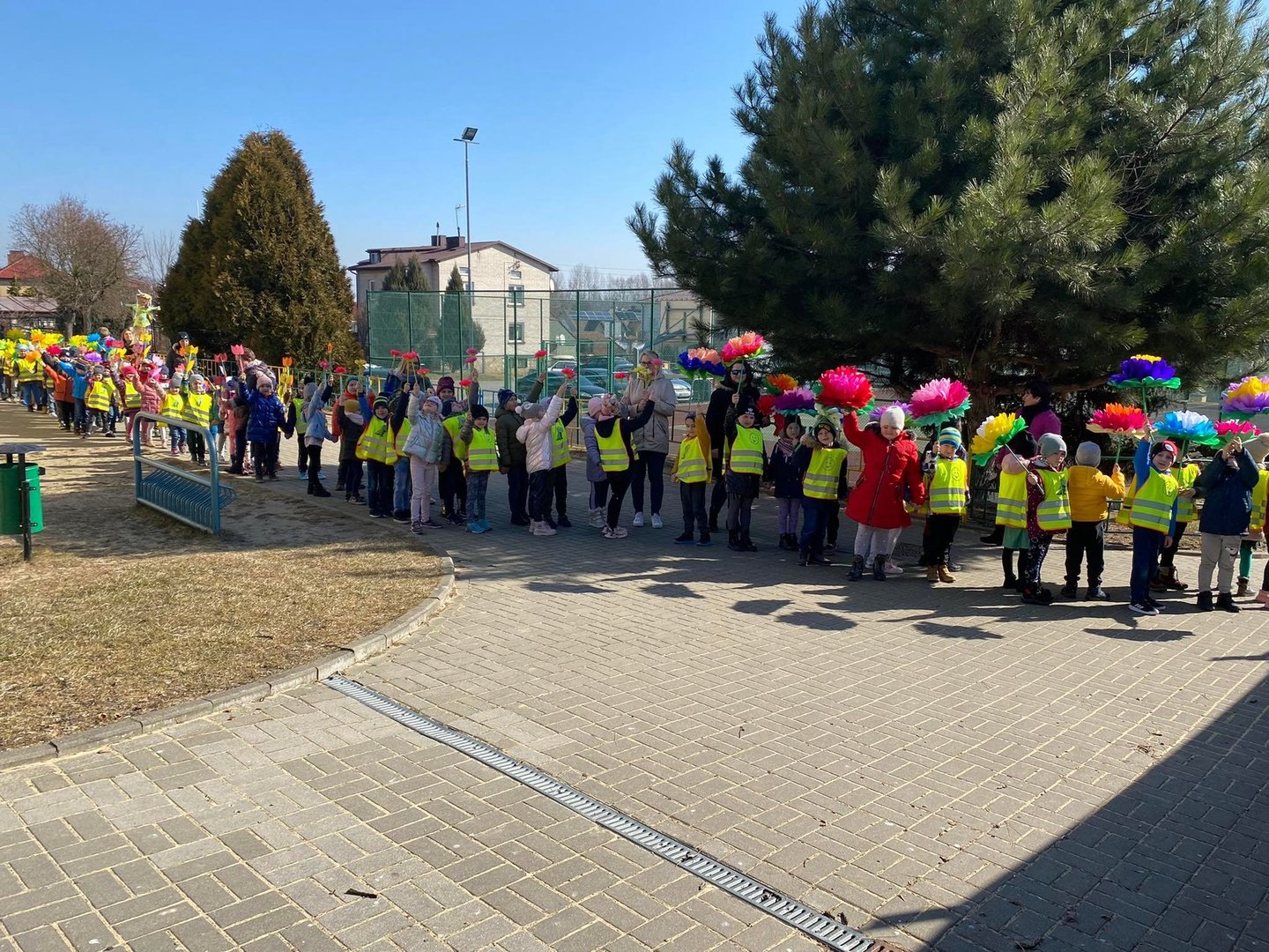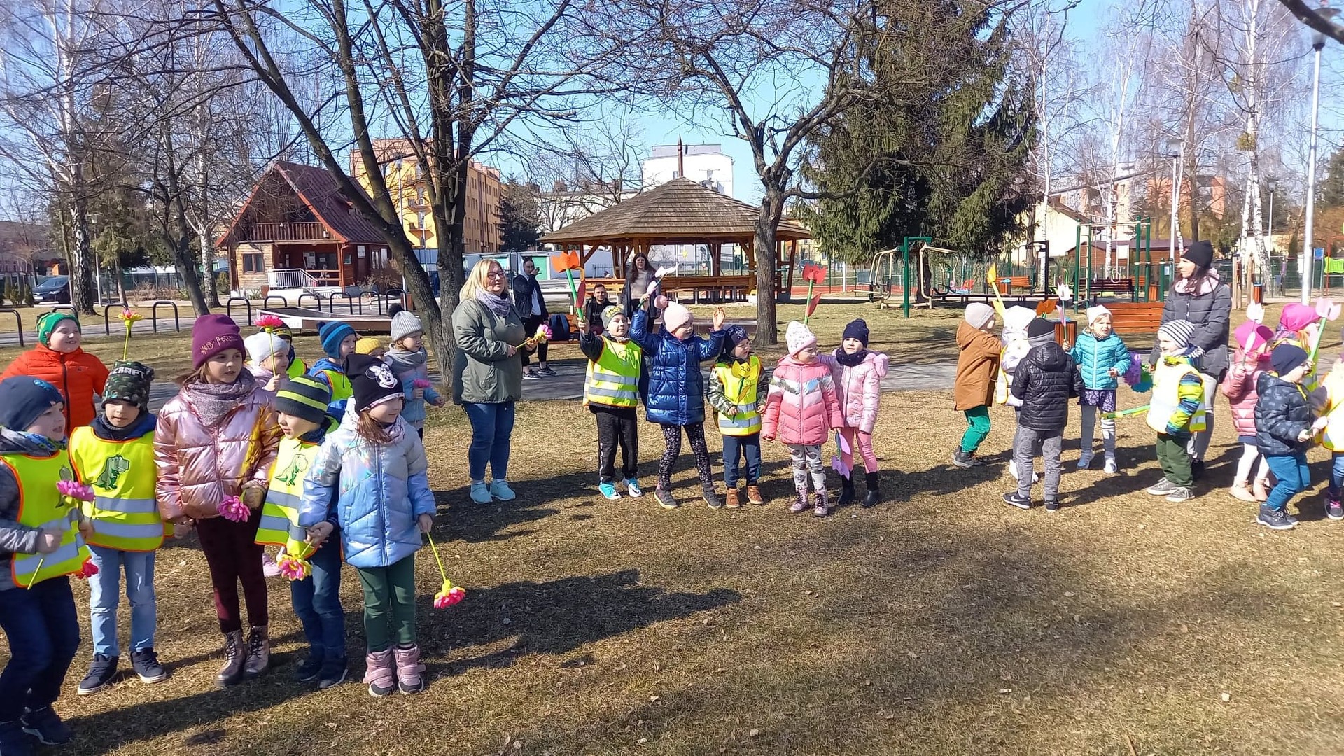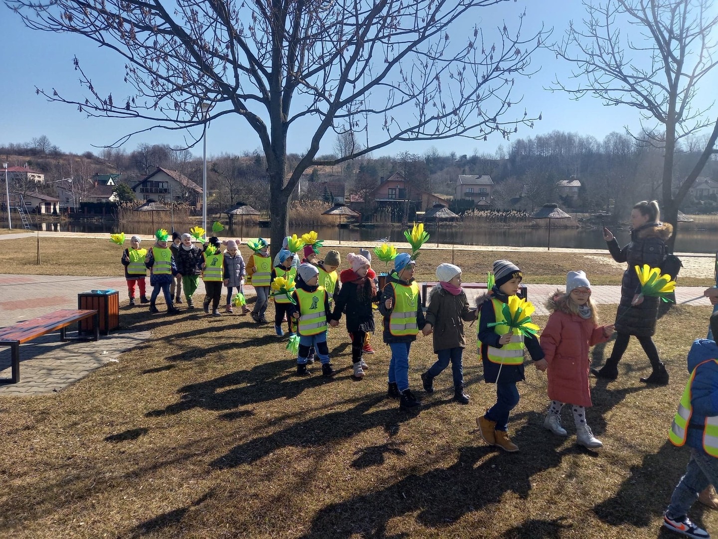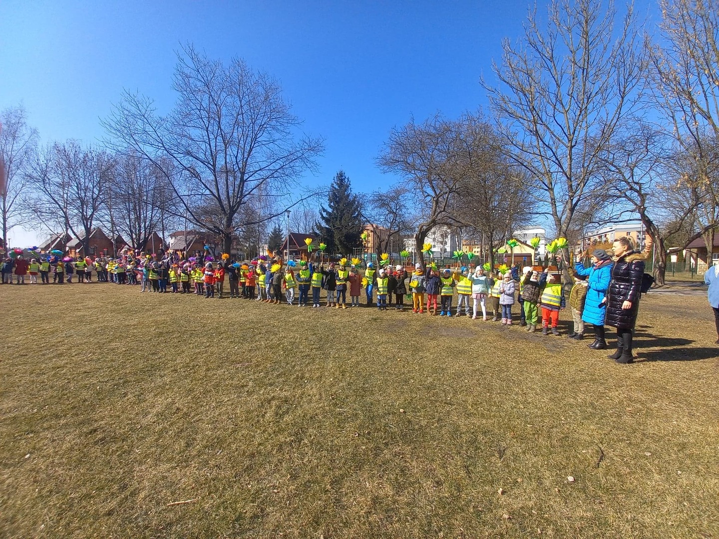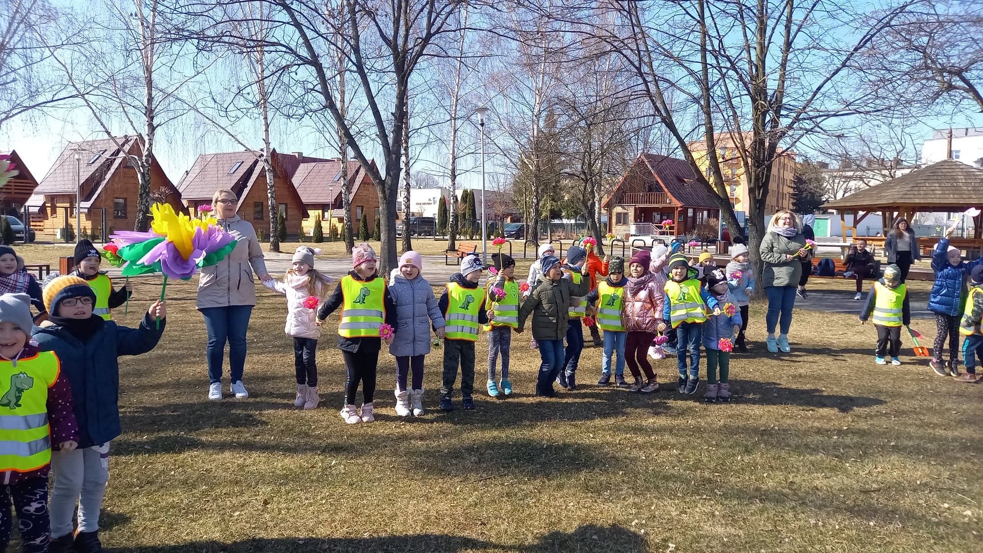 21 marca dzieci z naszego przedszkola uroczyście powitały nową porę roku Wiosnę, zaś pożegnały Zimę. Barwnym korowodem wspólnie z Marzanną i kolorowymi kwiatami przemaszerowały ulicami naszego miasta. Następnie wszyscy udaliśmy się na Przystań, gdzie przywitała nas Pani Wiosna - kolorowa i radosna. Przedszkolaki zaśpiewały dla niej piosenki i razem z nią zatańczyły. Wspólnie pożegnaliśmy Marzannę, powtarzając głośno „Marzanno, Marzanno Ty zimowa panno! Ciebie żegnamy, wiosnę witamy!” Na koniec Pani Wiosna przygotowała dla nas niespodziankę. Były to zielone baloniki, które wspólnie wypuściliśmy wysoko w górę, mając nadzieję, że Wiosna zostanie z nami na dobre a Zimę zobaczymy dopiero za rok.