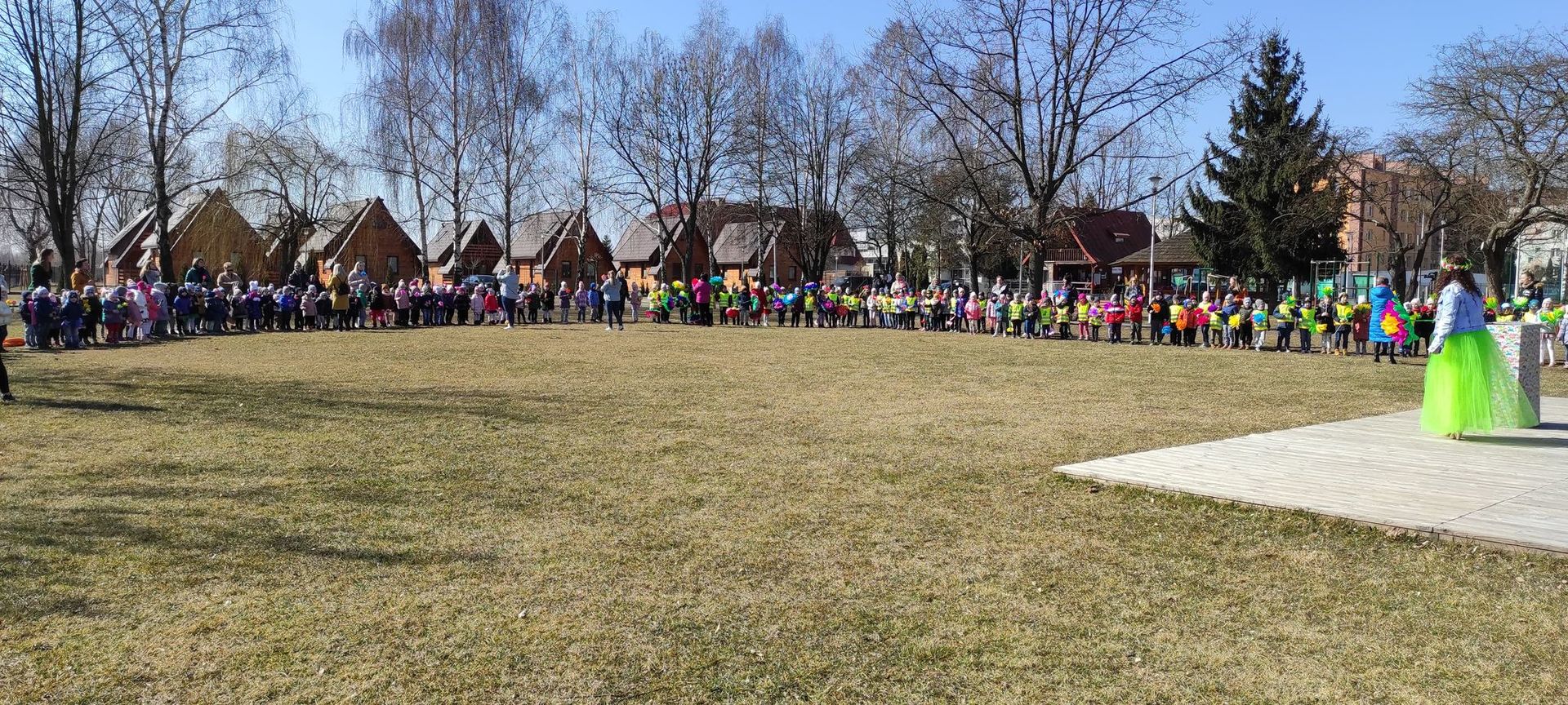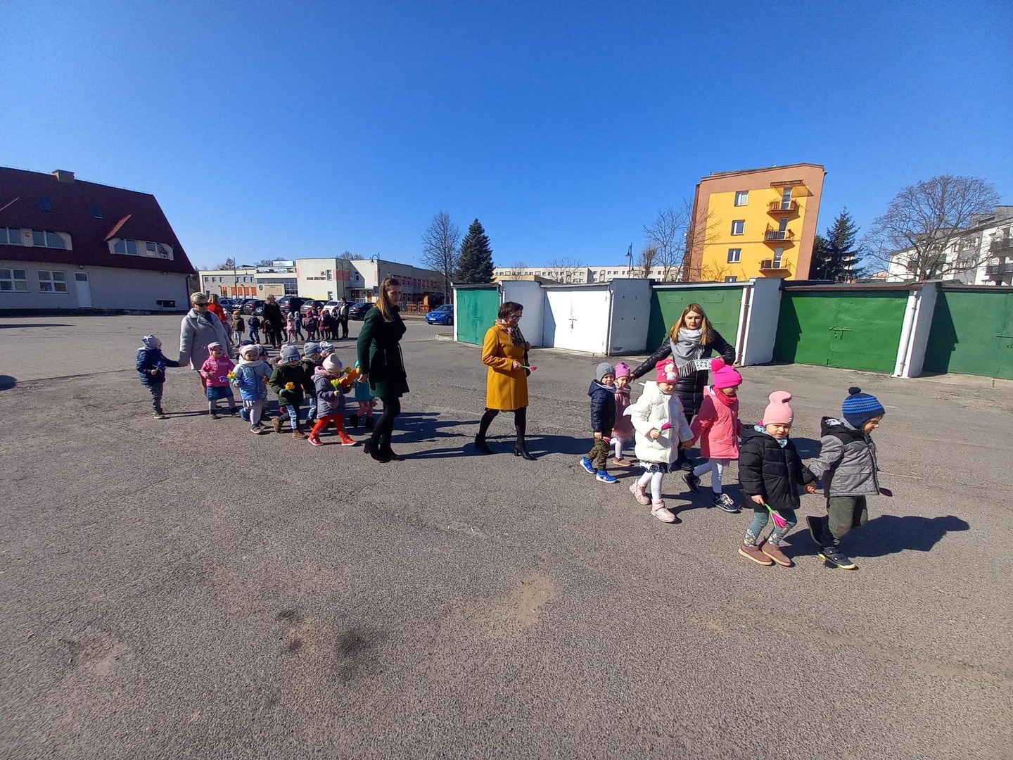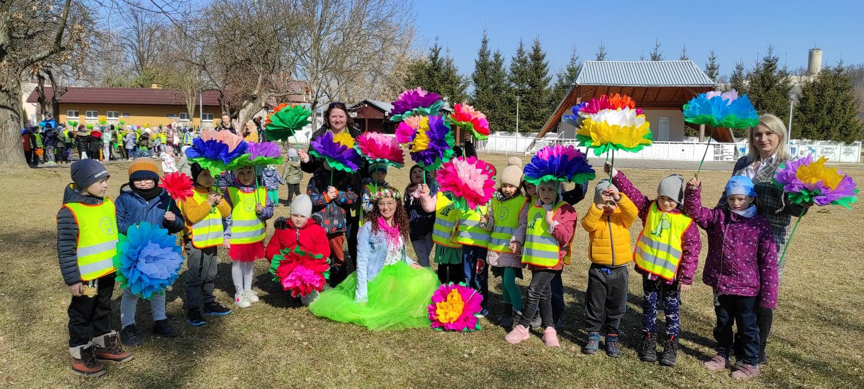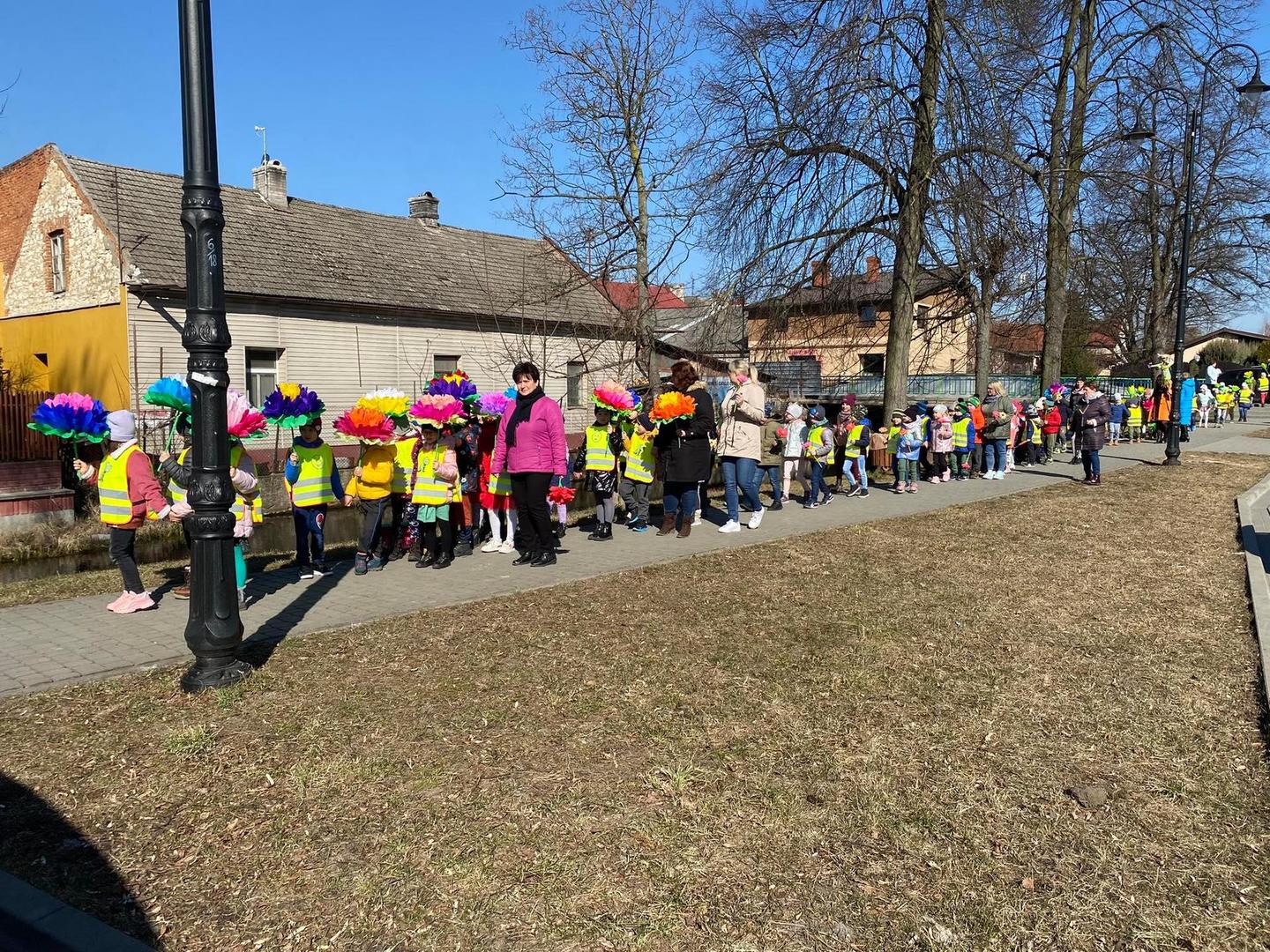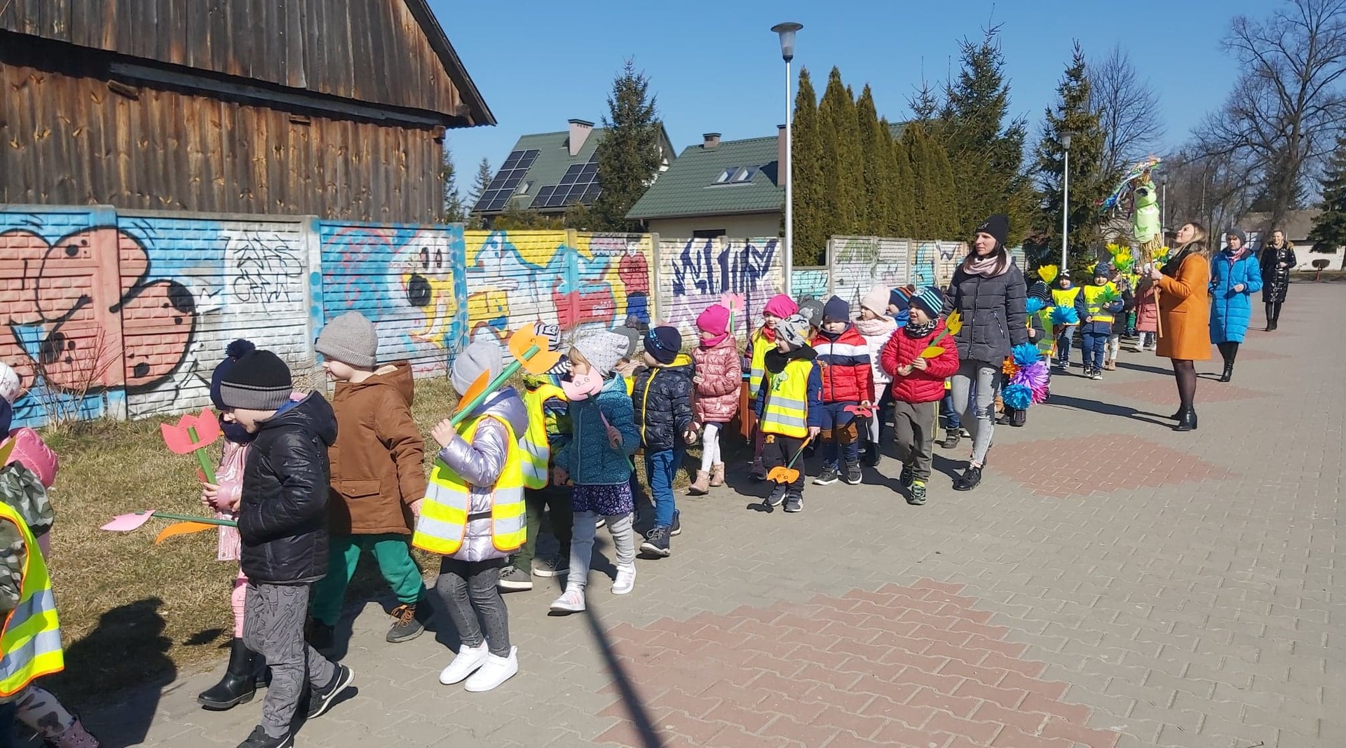 21 marca dzieci z naszego przedszkola uroczyście powitały nową porę roku Wiosnę, zaś pożegnały Zimę. Barwnym korowodem wspólnie z Marzanną i kolorowymi kwiatami przemaszerowały ulicami naszego miasta. Następnie wszyscy udaliśmy się na Przystań, gdzie przywitała nas Pani Wiosna - kolorowa i radosna. Przedszkolaki zaśpiewały dla niej piosenki i razem z nią zatańczyły. Wspólnie pożegnaliśmy Marzannę, powtarzając głośno „Marzanno, Marzanno Ty zimowa panno! Ciebie żegnamy, wiosnę witamy!” Na koniec Pani Wiosna przygotowała dla nas niespodziankę. Były to zielone baloniki, które wspólnie wypuściliśmy wysoko w górę, mając nadzieję, że Wiosna zostanie z nami na dobre a Zimę zobaczymy dopiero za rok.