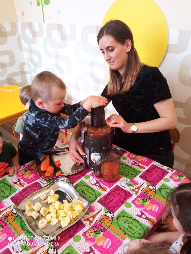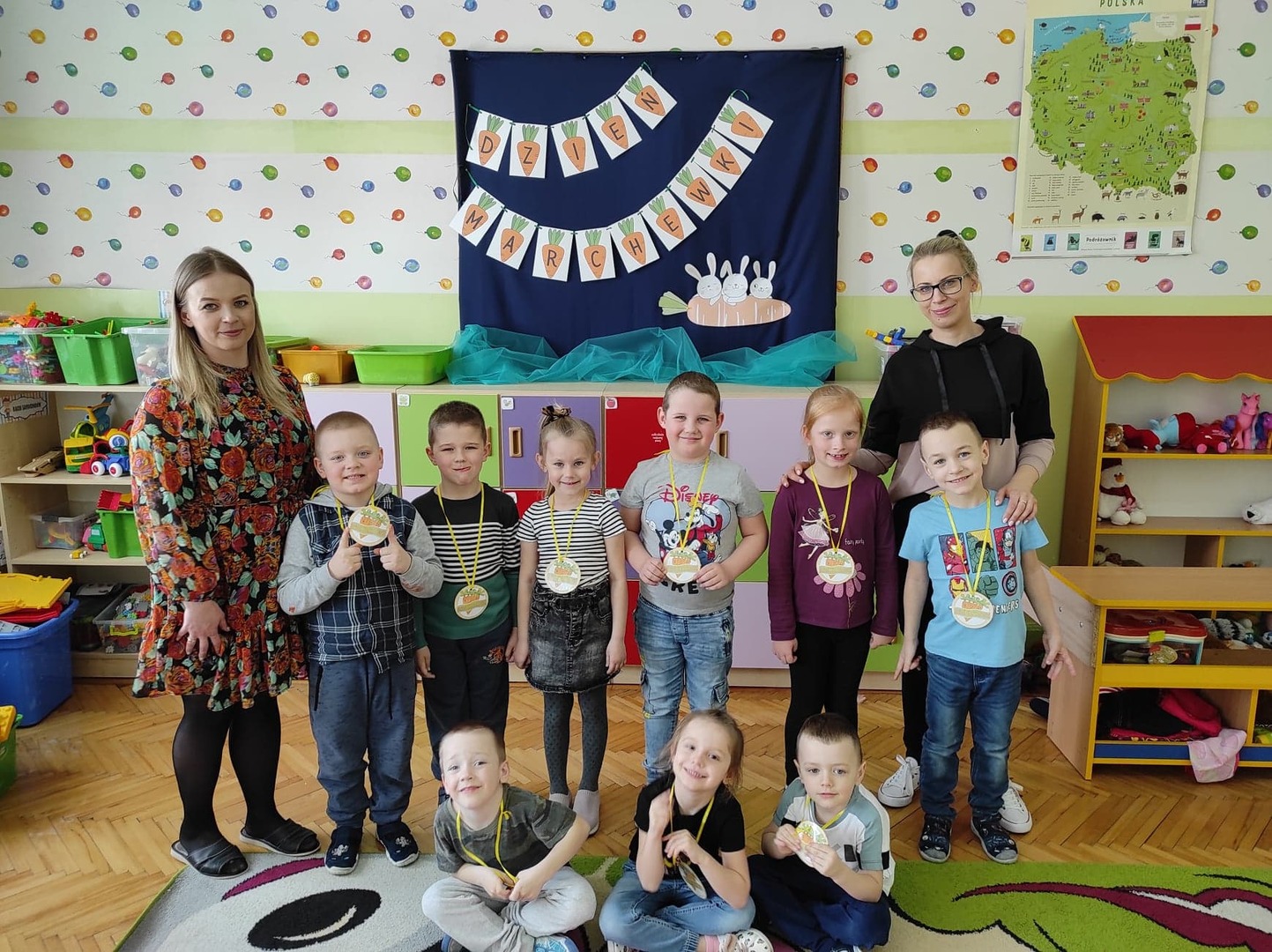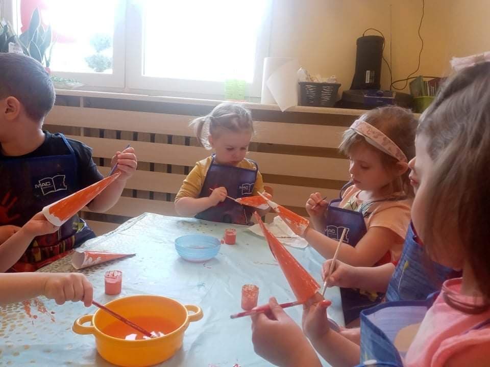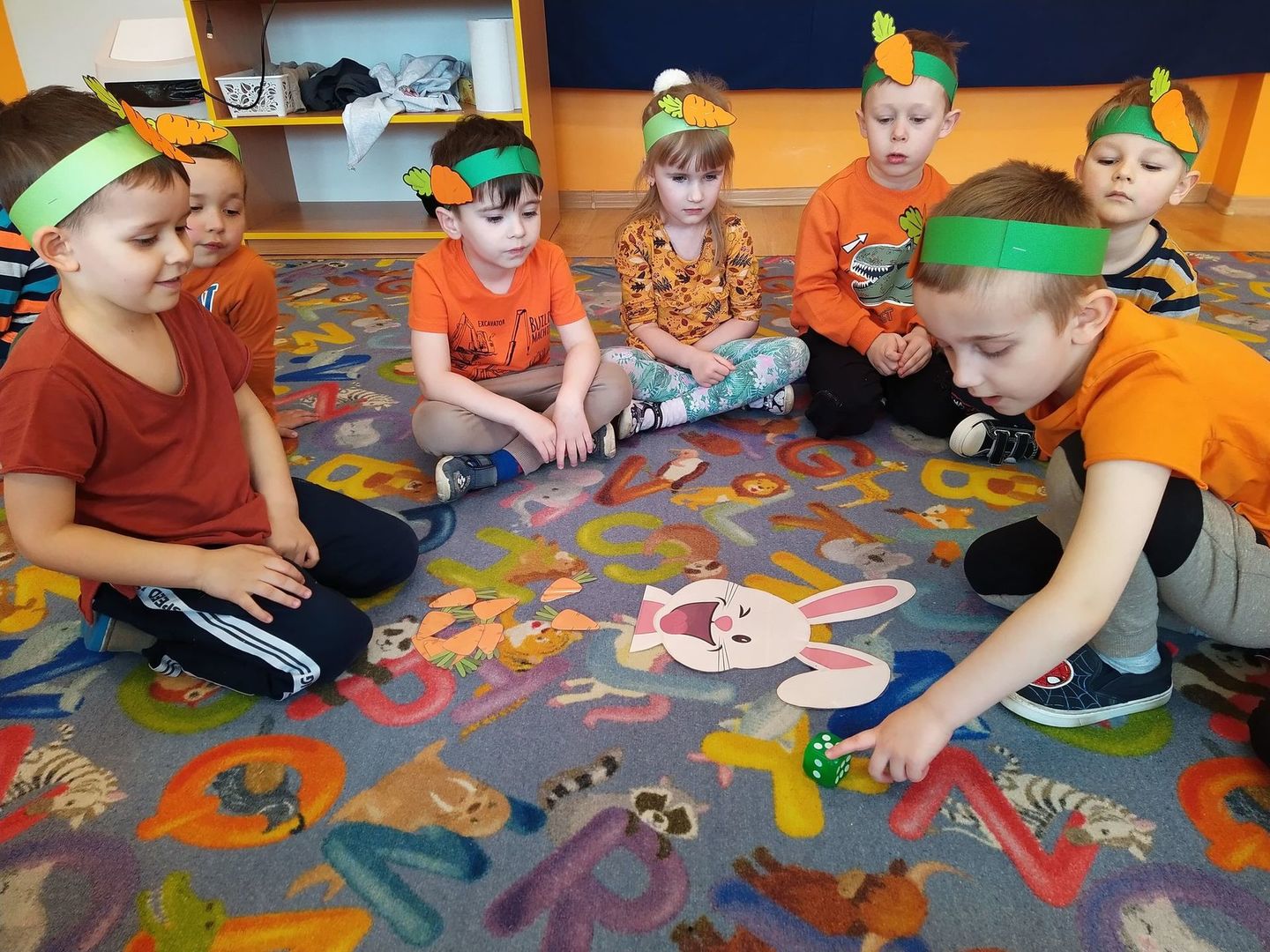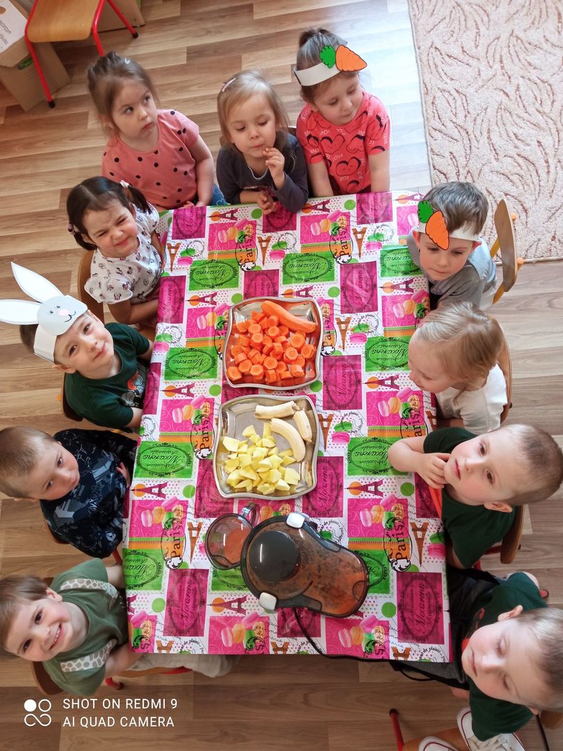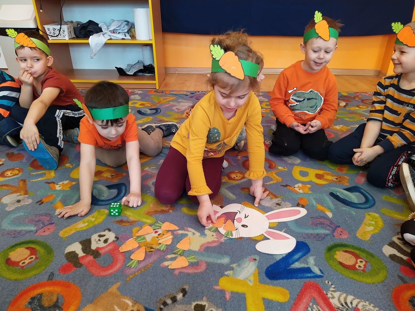 Dzień 04.04.2022r. był dniem wyjątkowo- pomarańczowym, marchewkowym, zdrowym i witaminowym. W tym dniu przedszkolaki poznały zalety i walory marchewki. Dzieci mogły się dowiedzieć wiele ciekawych rzeczy: jak bardzo jest zdrowa, zawiera wiele cennych witamin i składników odżywczych, korzystnie wpływa na skórę, włosy oraz wzrok. Warto pić także sok z marchwi, bo to witaminowa „bomba”. Ten dzień wypełniony był zabawami przy piosenkach o marchewce, pracami plastycznymi, chrupaniem surowych marchewek, próbowaniem marchewkowego soku a także degustacją marchewkowego ciasta. Dzięki takim działaniom prowadzonym już od najmłodszych lat, rozbudzamy u dzieci zainteresowanie własnym zdrowiem, potrzebę prawidłowego odżywiania się i rozróżniania produktów warunkujących zdrowie.