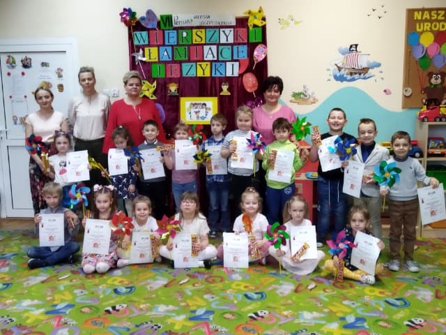 W dniu 26.04.2022 roku w Samorządowym Przedszkolu w Iłży odbył się po raz siódmy Przegląd Wiersza Logopedycznego pod hasłem ,,Wierszyki łamiące języki”. Wzięło w nim udział 17 dzieci 5 i 6 letnich (z grup VII,VIII, IX,X,XI i XII) , uczęszczających na zajęcia logopedyczne w przedszkolu. Celem przeglądu było umożliwienie dzieciom z trudnościami w wymowie prezentacji swoich umiejętności recytatorskich oraz możliwości, tj. sprawności artykulacyjnej i kompetencji językowej. Wspólne zaangażowanie logopedy , nauczycieli oraz rodziców w pracy nad rozwojem mowy sprawiło, że dzieci bardzo dobrze zaprezentowały wiersze. Wszyscy uczestnicy otrzymali za udział pamiątkowe dyplomy , nagrody rzeczowe oraz słodkości. Wydarzenie przebiegło w serdecznej atmosferze i dostarczyło dzieciom miłych wrażeń.