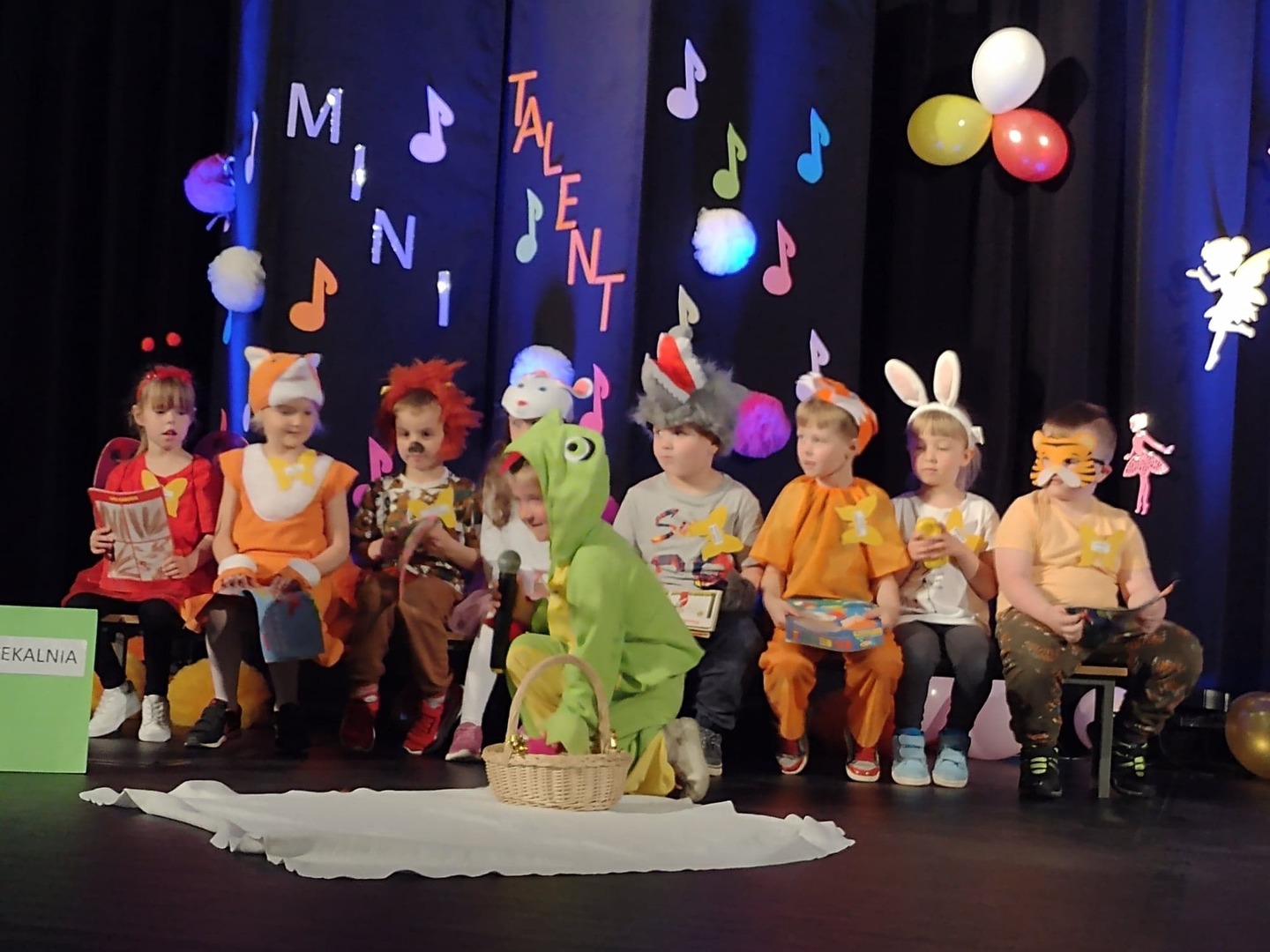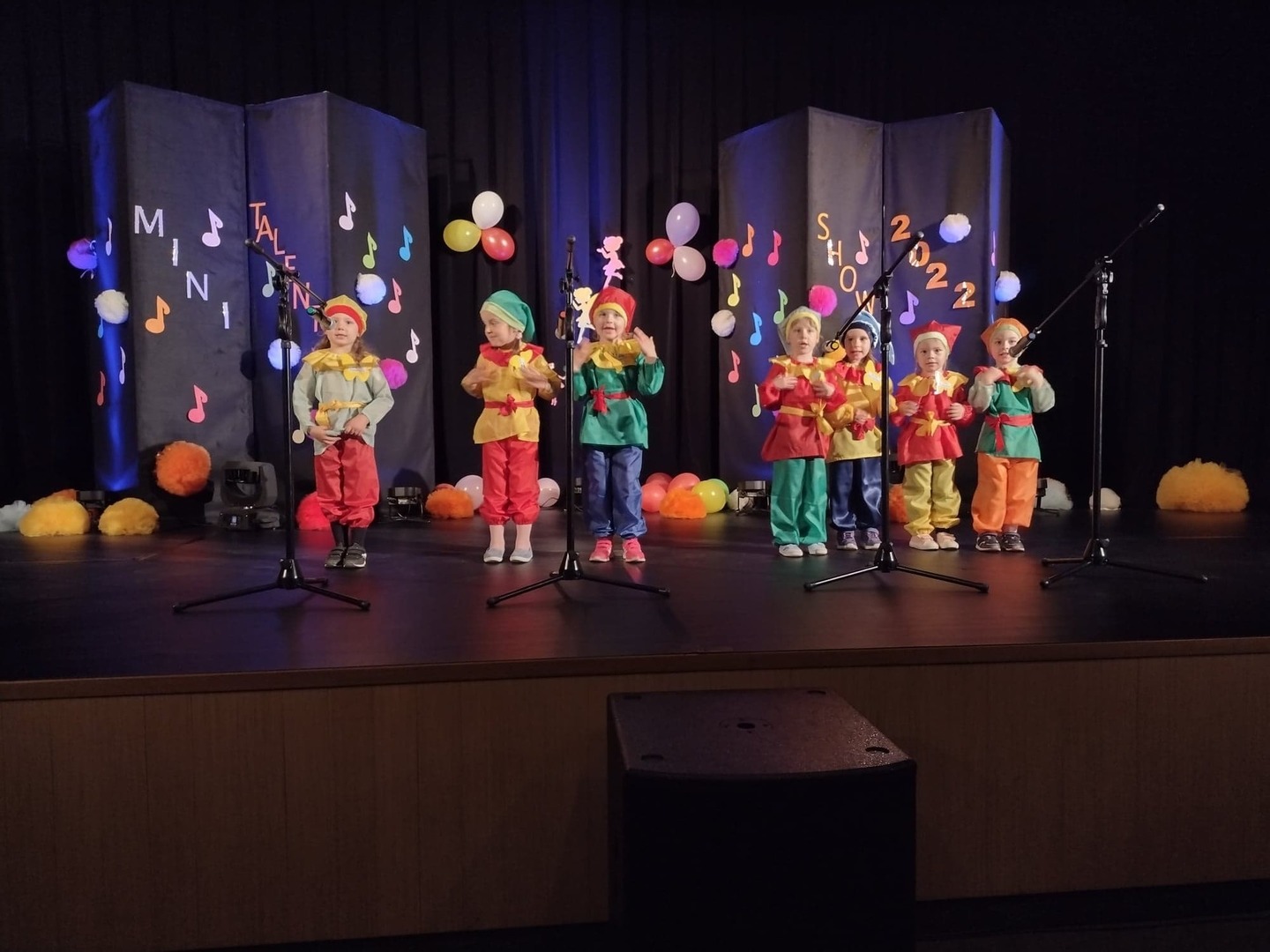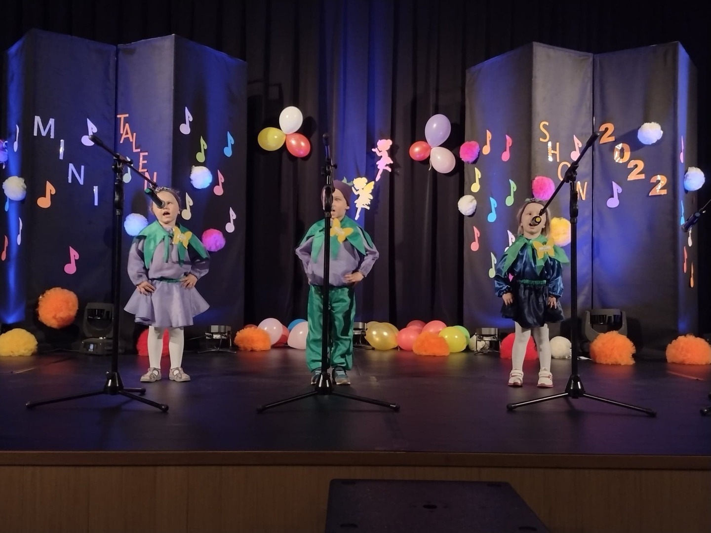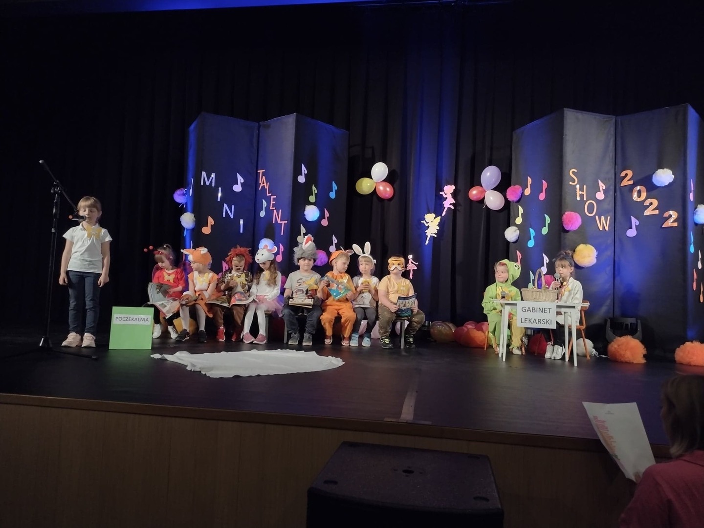 27 maja w Centrum Kultury i Turystyki odbył się konkurs dla naszych przedszkolaków pt. „Mini Talent Show 2022”. Prezentowali się na nim przedstawiciele wszystkich grup przedszkolnych, od maluszków – 3 – latków, po najstarsze dzieci 6-cio letnie. Występy naszych milusińskich podzielone zostały na kategorie: śpiew solowy; śpiew zespołowy; taniec oraz wiersz. Jako pierwsze zaprezentowały się dziewczynki z grupy Krasnoludki: Marysia , Zosia , Klara , Aniela , Antosia , Zosia , Maja , które zaśpiewały i zatańczyły do piosenki grupowej pt. „My jesteśmy Krasnoludki”. Następnie wystąpiło troje przedstawicieli z grupy Jagódki: Emilka , Stasio , Ola także w piosence grupowej pt. ”Jesteśmy Jagódki”. Kolejny występ to reprezentanci grupy Motylki, których mogliśmy usłyszeć podczas wykonywania dwóch piosenek. Pierwsza z nich to „Pluszowe niedźwiadki” wykonane przez Michalinkę, Wojtusia oraz Nadię; druga piosenka to „Kaczka dziwaczka” w wykonaniu Poli Kolejną prezentującą się była Hania z grupy Żabki w wierszu „Żaba” Jana Brzechwy. Z grupy Biedronki wystąpiły Ala i Zosia w wierszu „Dla Mamy i Taty”. Kolejnym uczestnikiem był Krzysio z grupy Pszczółki w wierszu Juliana Tuwima pt. „Okulary”. Z grupy Stokrotki zaprezentowała się prawie cała grupa :w inscenizacji wiersz „Żaba” Jana Brzechwy. Z grupy Muchomorki mieliśmy przyjemność zobaczyć dwa występy, pierwszy z nich to wiersz w wykonaniu Julii pt. „ Murzynek Bambo”, kolejny to piosenka „Nie bój się chcieć” w wykonaniu Julii oraz Zosi. Z grupy Smerfy Marcelinka zainscenizowała wiersz „Przyjęcie” Doroty Gellner, piosenkę „Tańcz, tańcz” wykonały Tatiana, Marcelina oraz Natalka. Reprezentanci grupy Piraci również przedstawili nam dwa występy, a były to piosenki „Kaczka dziwaczka” w wykonaniu Zuzi, Wiktoria i Nikola, a w piosence „ Moja fantazja” mogliśmy usłyszeć Olę, Oliwię i Wiktorię. Słoneczka w składzie: Ala, Zuzia i Natalia zaśpiewały piosenkę pt. „Moja rodzina”, a Kuba zaskoczył wszystkich tańcem – improwizacją typu break dance. Leśne Duszki przygotowały dwa występy wokalne: „Jest jak jest” w wykonaniu Frania oraz „A ja wolę moją mamę” zaśpiewane przez Marysię.