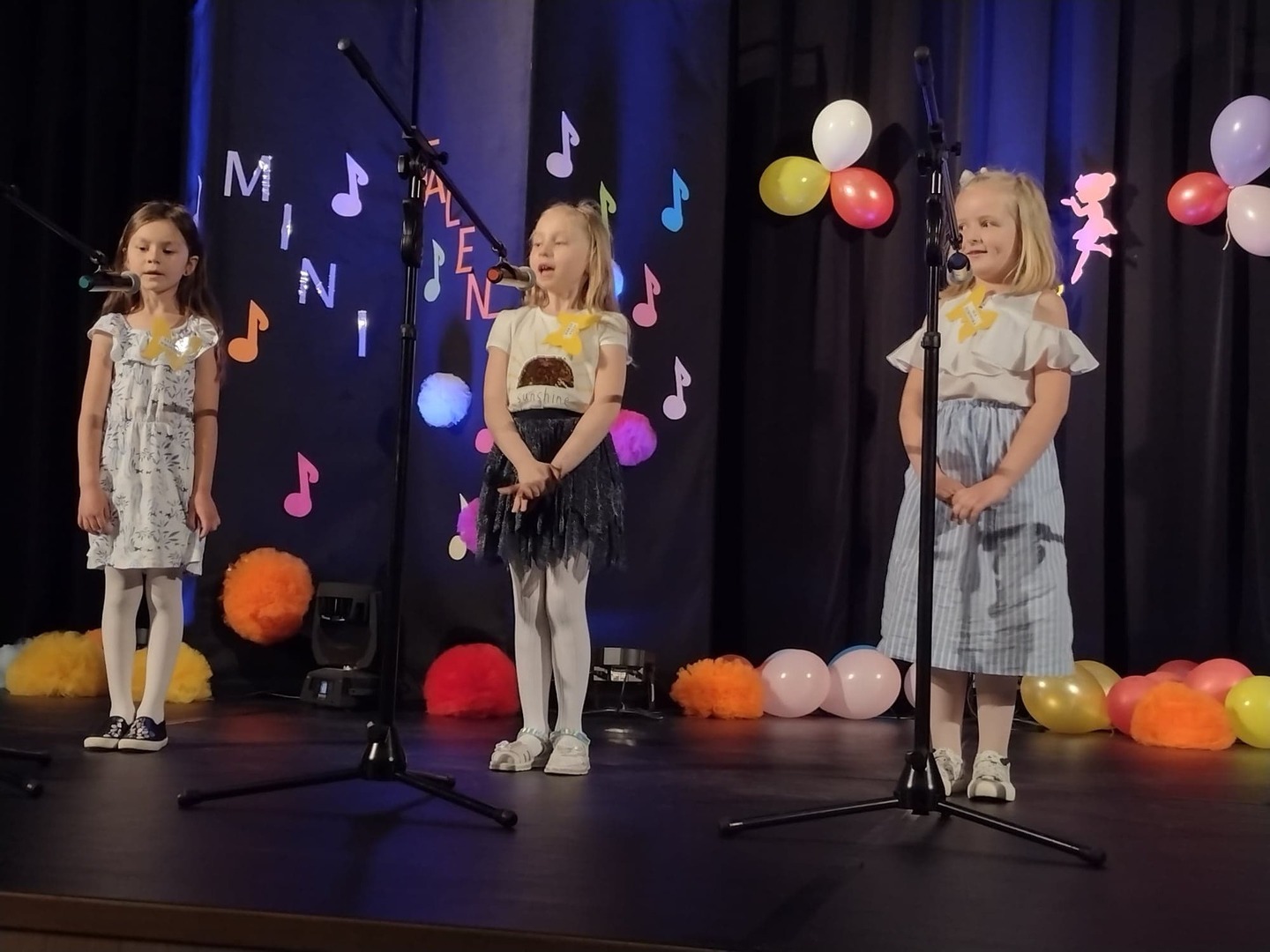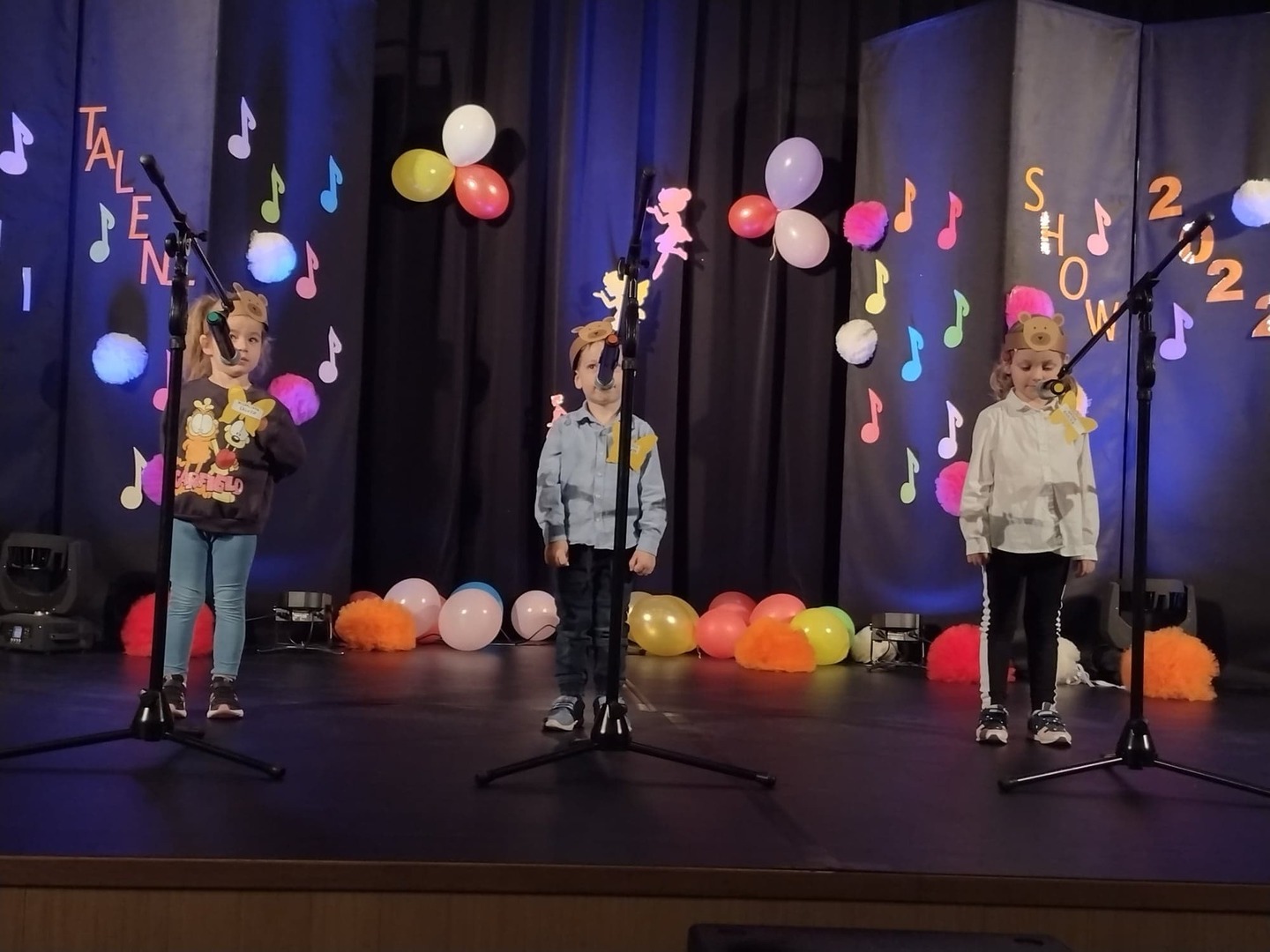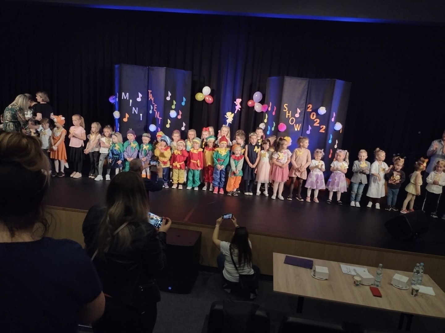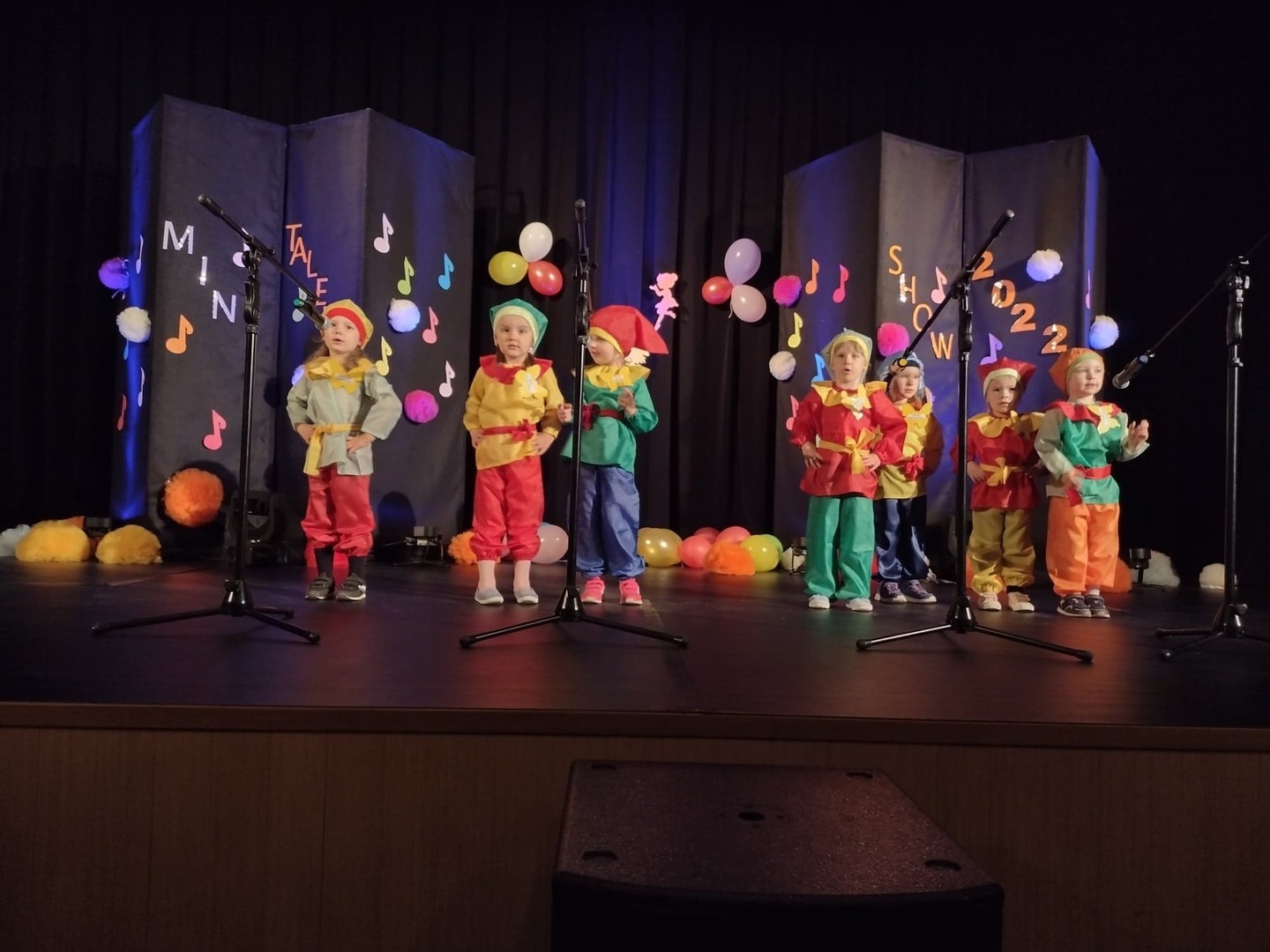 27 maja w Centrum Kultury i Turystyki odbył się konkurs dla naszych przedszkolaków pt. „Mini Talent Show 2022”. Prezentowali się na nim przedstawiciele wszystkich grup przedszkolnych, od maluszków – 3 – latków, po najstarsze dzieci 6-cio letnie. Występy naszych milusińskich podzielone zostały na kategorie: śpiew solowy; śpiew zespołowy; taniec oraz wiersz. Jako pierwsze zaprezentowały się dziewczynki z grupy Krasnoludki: Marysia , Zosia , Klara , Aniela , Antosia , Zosia , Maja , które zaśpiewały i zatańczyły do piosenki grupowej pt. „My jesteśmy Krasnoludki”. Następnie wystąpiło troje przedstawicieli z grupy Jagódki: Emilka , Stasio , Ola także w piosence grupowej pt. ”Jesteśmy Jagódki”. Kolejny występ to reprezentanci grupy Motylki, których mogliśmy usłyszeć podczas wykonywania dwóch piosenek. Pierwsza z nich to „Pluszowe niedźwiadki” wykonane przez Michalinkę, Wojtusia oraz Nadię; druga piosenka to „Kaczka dziwaczka” w wykonaniu Poli Kolejną prezentującą się była Hania z grupy Żabki w wierszu „Żaba” Jana Brzechwy. Z grupy Biedronki wystąpiły Ala i Zosia w wierszu „Dla Mamy i Taty”. Kolejnym uczestnikiem był Krzysio z grupy Pszczółki w wierszu Juliana Tuwima pt. „Okulary”. Z grupy Stokrotki zaprezentowała się prawie cała grupa :w inscenizacji wiersz „Żaba” Jana Brzechwy. Z grupy Muchomorki mieliśmy przyjemność zobaczyć dwa występy, pierwszy z nich to wiersz w wykonaniu Julii pt. „ Murzynek Bambo”, kolejny to piosenka „Nie bój się chcieć” w wykonaniu Julii oraz Zosi. Z grupy Smerfy Marcelinka zainscenizowała wiersz „Przyjęcie” Doroty Gellner, piosenkę „Tańcz, tańcz” wykonały Tatiana, Marcelina oraz Natalka. Reprezentanci grupy Piraci również przedstawili nam dwa występy, a były to piosenki „Kaczka dziwaczka” w wykonaniu Zuzi, Wiktoria i Nikola, a w piosence „ Moja fantazja” mogliśmy usłyszeć Olę, Oliwię i Wiktorię. Słoneczka w składzie: Ala, Zuzia i Natalia zaśpiewały piosenkę pt. „Moja rodzina”, a Kuba zaskoczył wszystkich tańcem – improwizacją typu break dance. Leśne Duszki przygotowały dwa występy wokalne: „Jest jak jest” w wykonaniu Frania oraz „A ja wolę moją mamę” zaśpiewane przez Marysię.