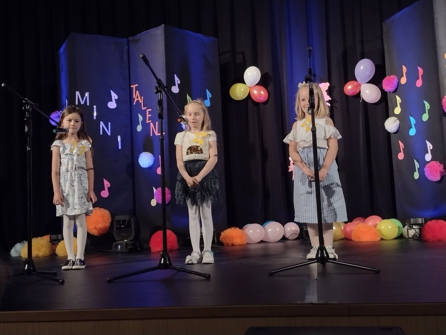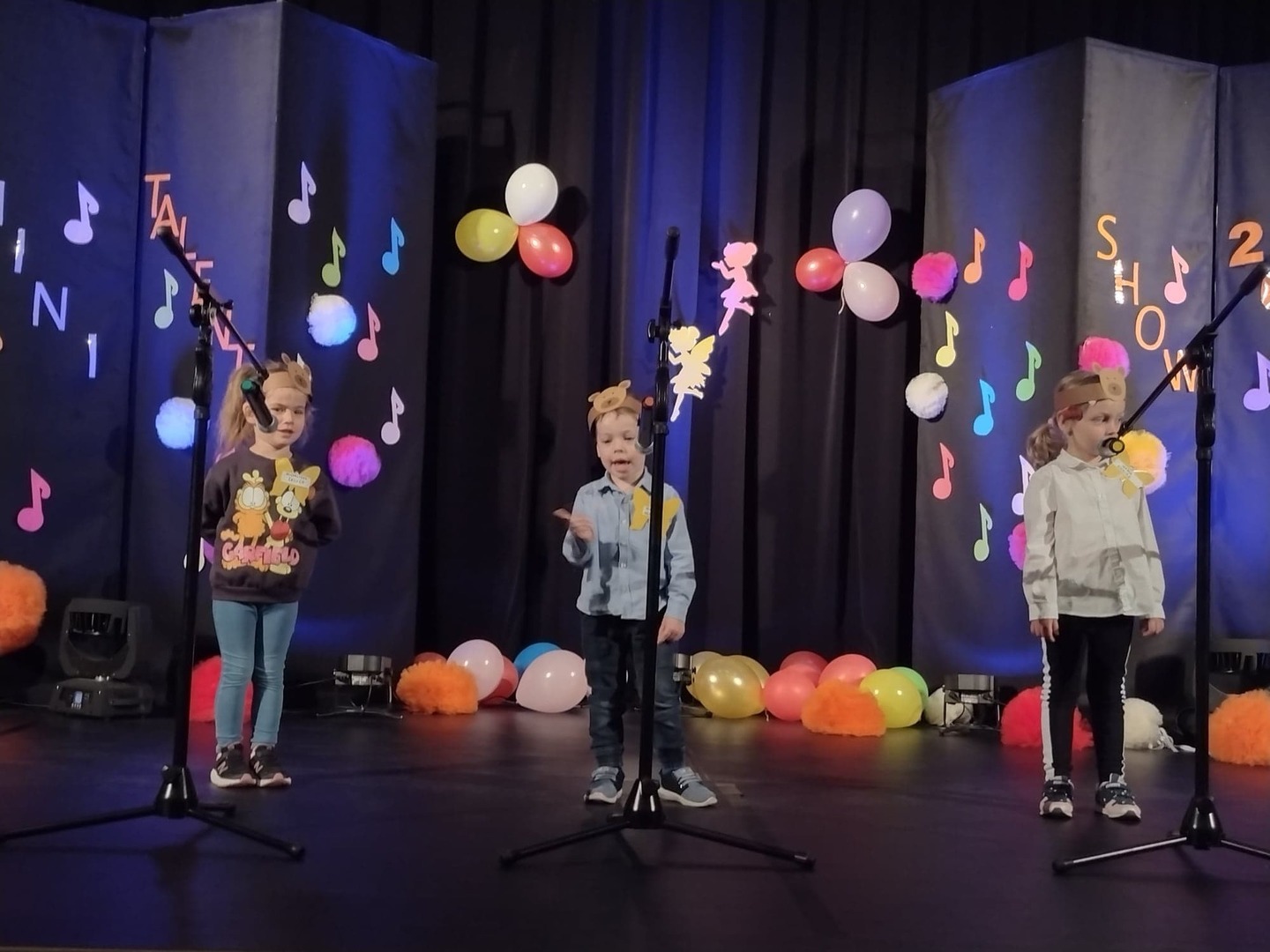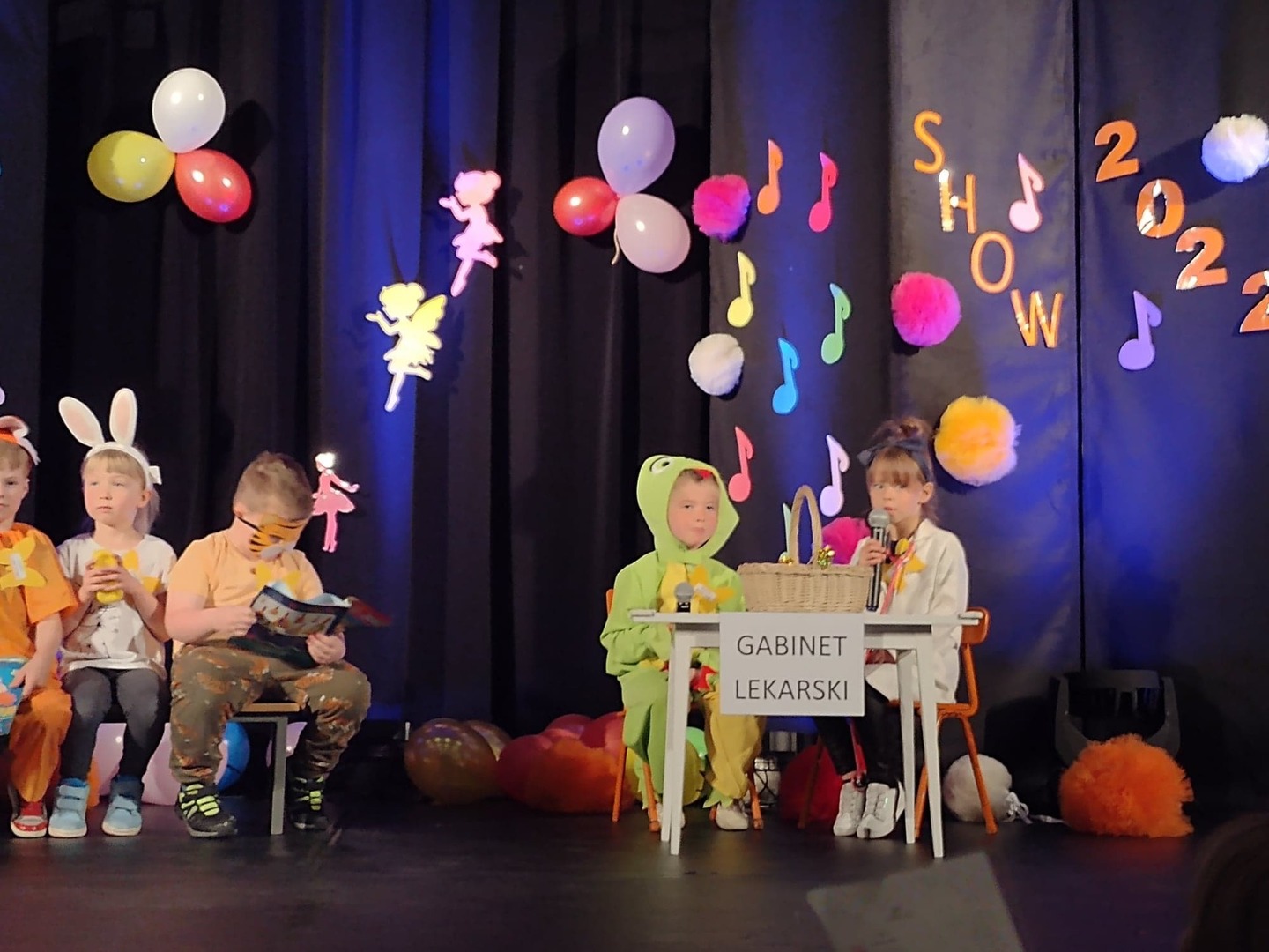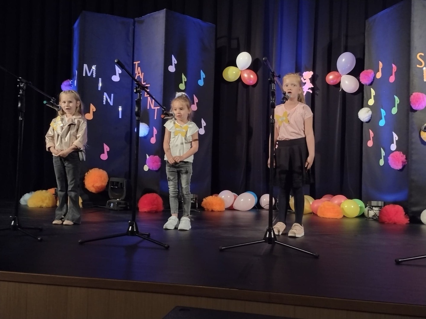 27 maja w Centrum Kultury i Turystyki odbył się konkurs dla naszych przedszkolaków pt. „Mini Talent Show 2022”. Prezentowali się na nim przedstawiciele wszystkich grup przedszkolnych, od maluszków – 3 – latków, po najstarsze dzieci 6-cio letnie. Występy naszych milusińskich podzielone zostały na kategorie: śpiew solowy; śpiew zespołowy; taniec oraz wiersz. Jako pierwsze zaprezentowały się dziewczynki z grupy Krasnoludki: Marysia , Zosia , Klara , Aniela , Antosia , Zosia , Maja , które zaśpiewały i zatańczyły do piosenki grupowej pt. „My jesteśmy Krasnoludki”. Następnie wystąpiło troje przedstawicieli z grupy Jagódki: Emilka , Stasio , Ola także w piosence grupowej pt. ”Jesteśmy Jagódki”. Kolejny występ to reprezentanci grupy Motylki, których mogliśmy usłyszeć podczas wykonywania dwóch piosenek. Pierwsza z nich to „Pluszowe niedźwiadki” wykonane przez Michalinkę, Wojtusia oraz Nadię; druga piosenka to „Kaczka dziwaczka” w wykonaniu Poli Kolejną prezentującą się była Hania z grupy Żabki w wierszu „Żaba” Jana Brzechwy. Z grupy Biedronki wystąpiły Ala i Zosia w wierszu „Dla Mamy i Taty”. Kolejnym uczestnikiem był Krzysio z grupy Pszczółki w wierszu Juliana Tuwima pt. „Okulary”. Z grupy Stokrotki zaprezentowała się prawie cała grupa :w inscenizacji wiersz „Żaba” Jana Brzechwy. Z grupy Muchomorki mieliśmy przyjemność zobaczyć dwa występy, pierwszy z nich to wiersz w wykonaniu Julii pt. „ Murzynek Bambo”, kolejny to piosenka „Nie bój się chcieć” w wykonaniu Julii oraz Zosi. Z grupy Smerfy Marcelinka zainscenizowała wiersz „Przyjęcie” Doroty Gellner, piosenkę „Tańcz, tańcz” wykonały Tatiana, Marcelina oraz Natalka. Reprezentanci grupy Piraci również przedstawili nam dwa występy, a były to piosenki „Kaczka dziwaczka” w wykonaniu Zuzi, Wiktoria i Nikola, a w piosence „ Moja fantazja” mogliśmy usłyszeć Olę, Oliwię i Wiktorię. Słoneczka w składzie: Ala, Zuzia i Natalia zaśpiewały piosenkę pt. „Moja rodzina”, a Kuba zaskoczył wszystkich tańcem – improwizacją typu break dance. Leśne Duszki przygotowały dwa występy wokalne: „Jest jak jest” w wykonaniu Frania oraz „A ja wolę moją mamę” zaśpiewane przez Marysię.
