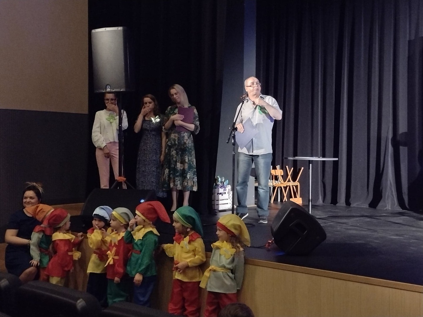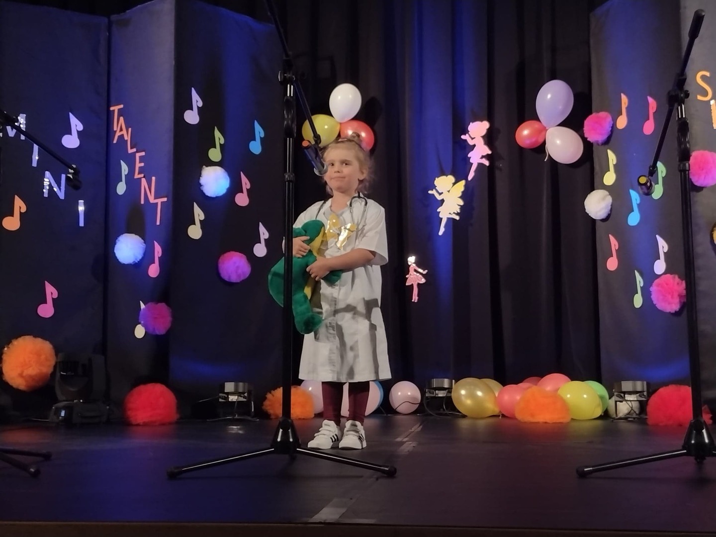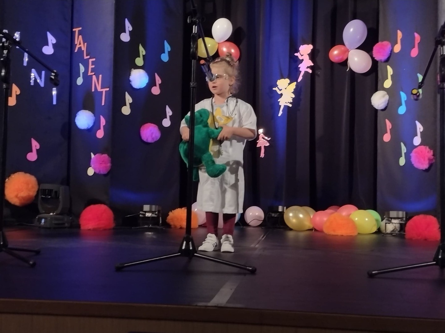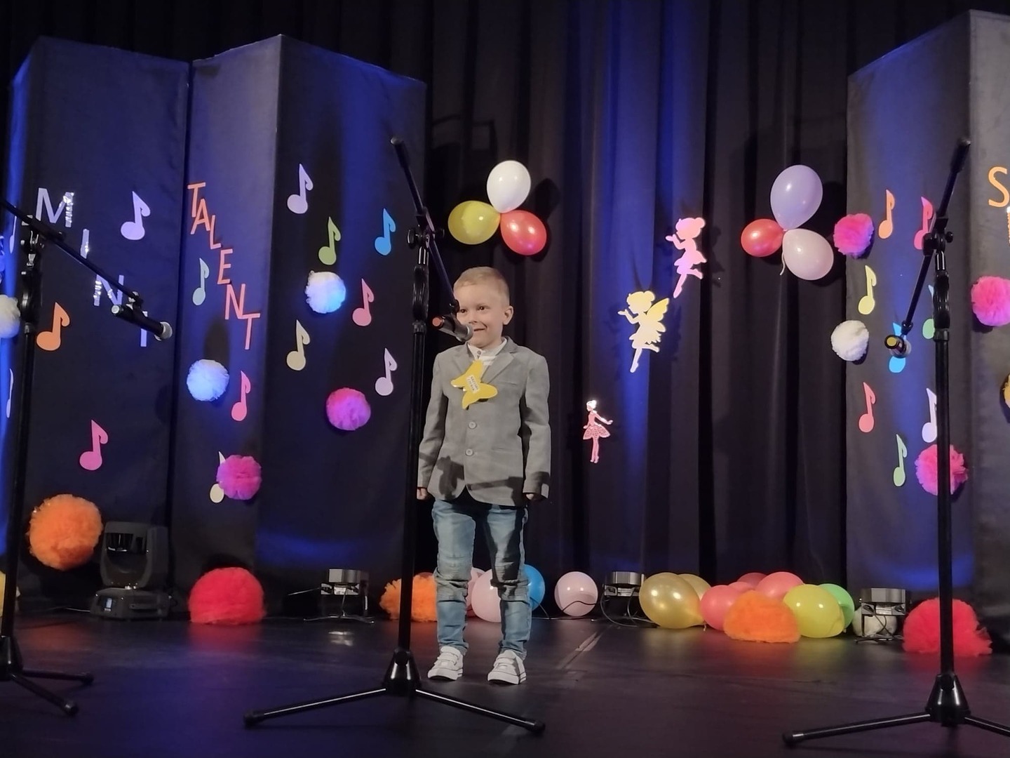 27 maja w Centrum Kultury i Turystyki odbył się konkurs dla naszych przedszkolaków pt. „Mini Talent Show 2022”. Prezentowali się na nim przedstawiciele wszystkich grup przedszkolnych, od maluszków – 3 – latków, po najstarsze dzieci 6-cio letnie. Występy naszych milusińskich podzielone zostały na kategorie: śpiew solowy; śpiew zespołowy; taniec oraz wiersz. Jako pierwsze zaprezentowały się dziewczynki z grupy Krasnoludki: Marysia , Zosia , Klara , Aniela , Antosia , Zosia , Maja , które zaśpiewały i zatańczyły do piosenki grupowej pt. „My jesteśmy Krasnoludki”. Następnie wystąpiło troje przedstawicieli z grupy Jagódki: Emilka , Stasio , Ola także w piosence grupowej pt. ”Jesteśmy Jagódki”. Kolejny występ to reprezentanci grupy Motylki, których mogliśmy usłyszeć podczas wykonywania dwóch piosenek. Pierwsza z nich to „Pluszowe niedźwiadki” wykonane przez Michalinkę, Wojtusia oraz Nadię; druga piosenka to „Kaczka dziwaczka” w wykonaniu Poli Kolejną prezentującą się była Hania z grupy Żabki w wierszu „Żaba” Jana Brzechwy. Z grupy Biedronki wystąpiły Ala i Zosia w wierszu „Dla Mamy i Taty”. Kolejnym uczestnikiem był Krzysio z grupy Pszczółki w wierszu Juliana Tuwima pt. „Okulary”. Z grupy Stokrotki zaprezentowała się prawie cała grupa :w inscenizacji wiersz „Żaba” Jana Brzechwy. Z grupy Muchomorki mieliśmy przyjemność zobaczyć dwa występy, pierwszy z nich to wiersz w wykonaniu Julii pt. „ Murzynek Bambo”, kolejny to piosenka „Nie bój się chcieć” w wykonaniu Julii oraz Zosi. Z grupy Smerfy Marcelinka zainscenizowała wiersz „Przyjęcie” Doroty Gellner, piosenkę „Tańcz, tańcz” wykonały Tatiana, Marcelina oraz Natalka. Reprezentanci grupy Piraci również przedstawili nam dwa występy, a były to piosenki „Kaczka dziwaczka” w wykonaniu Zuzi, Wiktoria i Nikola, a w piosence „ Moja fantazja” mogliśmy usłyszeć Olę, Oliwię i Wiktorię. Słoneczka w składzie: Ala, Zuzia i Natalia zaśpiewały piosenkę pt. „Moja rodzina”, a Kuba zaskoczył wszystkich tańcem – improwizacją typu break dance. Leśne Duszki przygotowały dwa występy wokalne: „Jest jak jest” w wykonaniu Frania oraz „A ja wolę moją mamę” zaśpiewane przez Marysię.