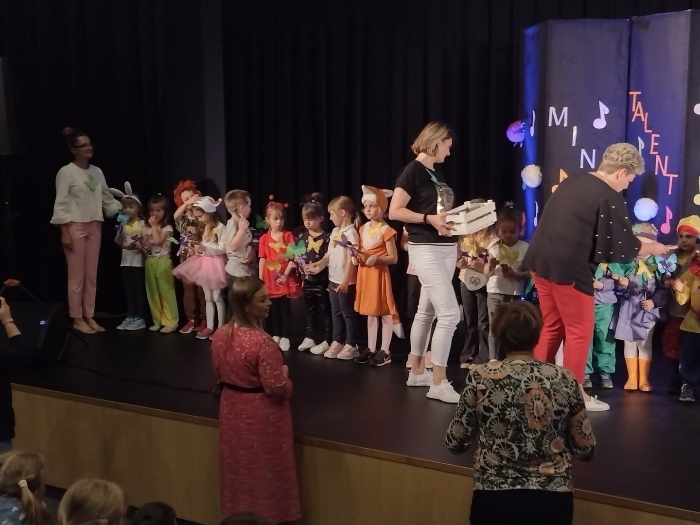 Wszystkie występy były niezwykle emocjonujące, co sprawiło, że jury miało bardzo utrudnione zadanie. W związku z tym przyznało 4 główne nagrody oraz 1 wyróżnienie. W kategorii śpiew solowy nagrodę otrzymała Marysia z grupy Leśne Duszki; w kategorii śpiew zespołowy nagrody otrzymał zespół wokalny z grupy Piraci w składzie: Zuzia, Wiktoria i Nikola za inscenizację piosenki. W kategorii wiersz nagrodę otrzymał Krzysio z Pszczółek, a w kategorii taniec nagrodę otrzymał Kuba z grupy Słoneczka. Dziękujemy serdecznie wszystkim występującym, paniom nauczycielkom, które przygotowały tak wspaniałe występy oraz stroje i dekoracje, a także rodzicom za pomoc w przygotowaniach dzieci. Mamy nadzieję, że konkurs „Mini Talent Show” zagości na dobre w harmonogramie naszych przedszkolnych imprez.