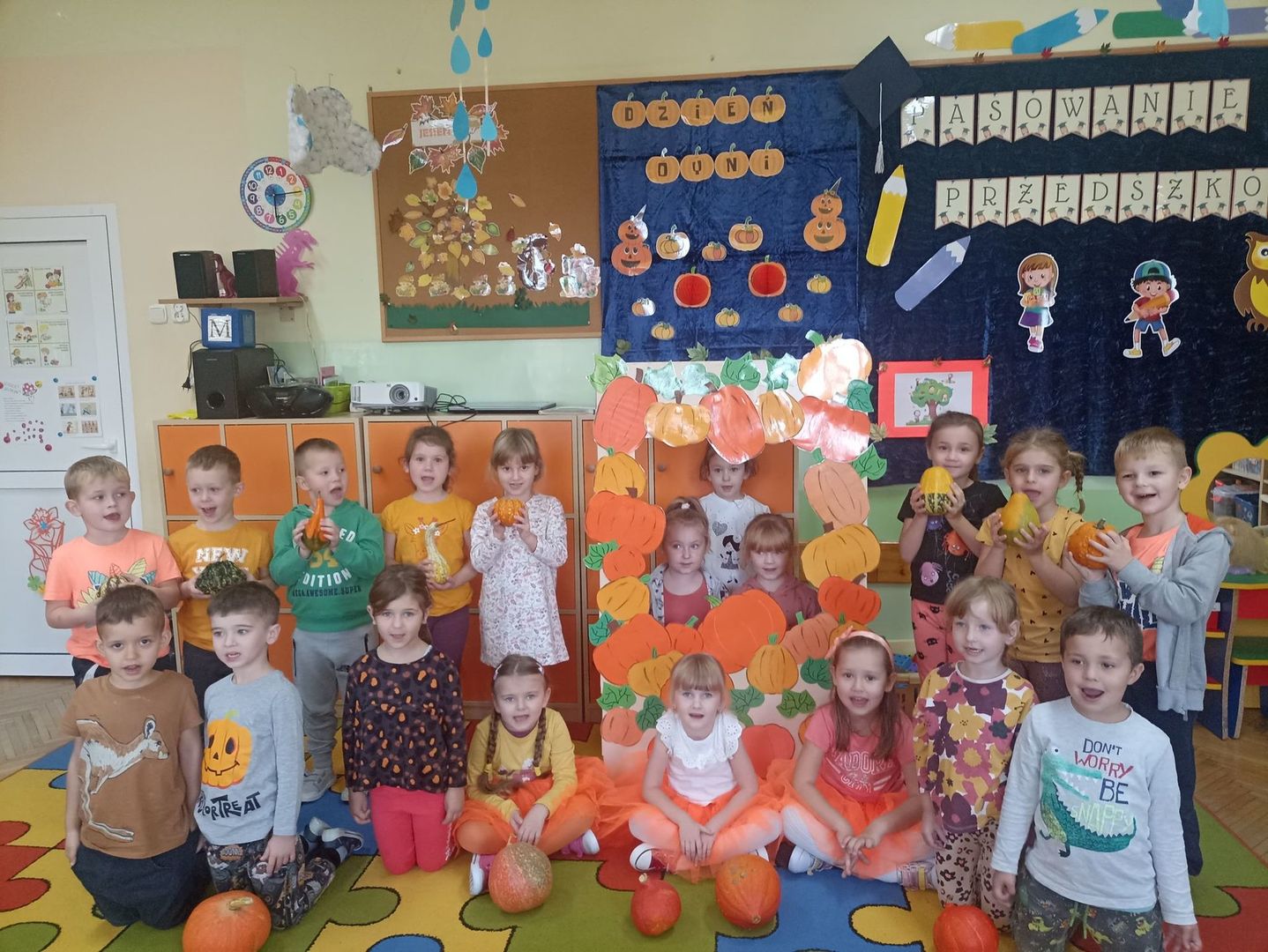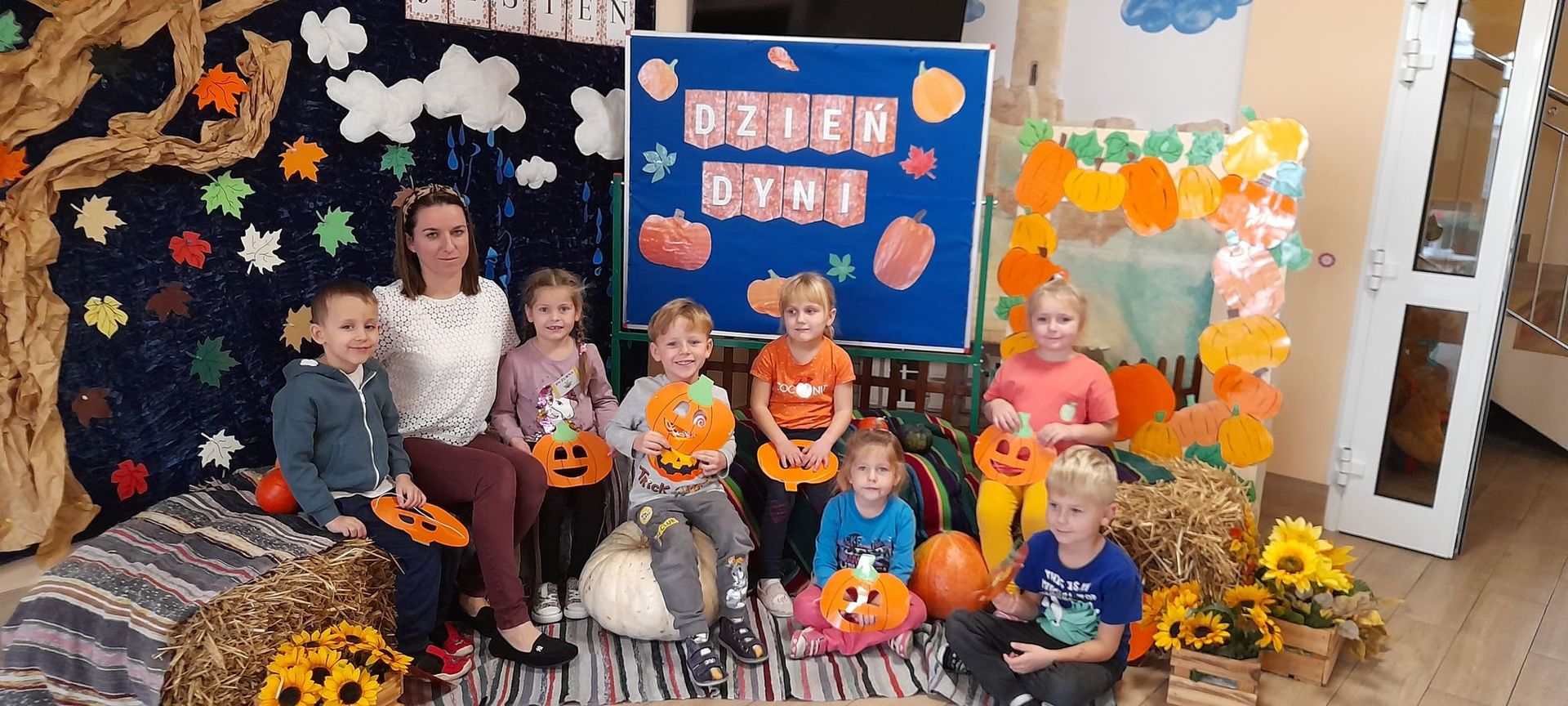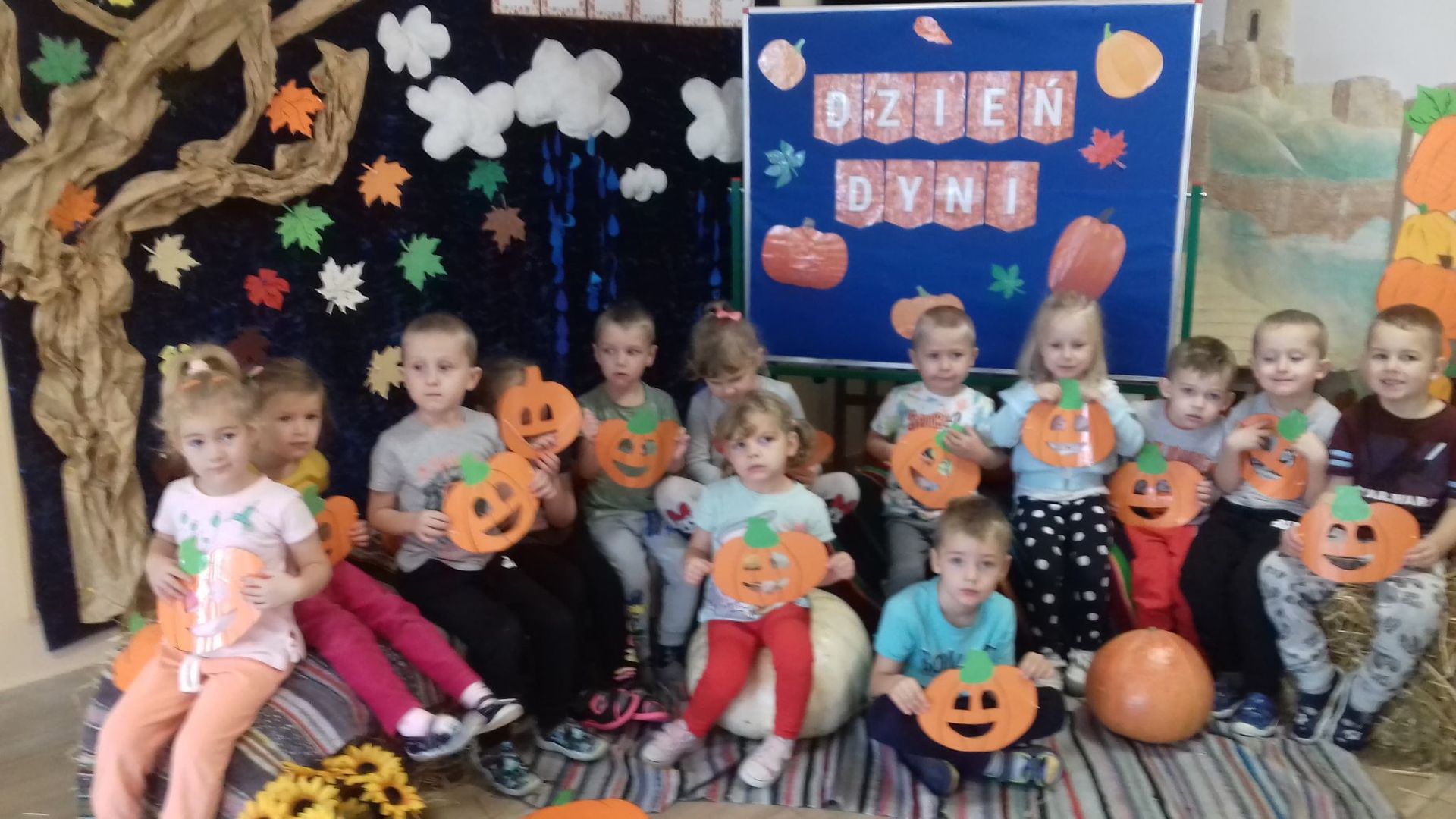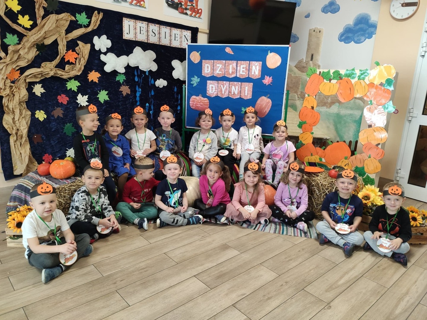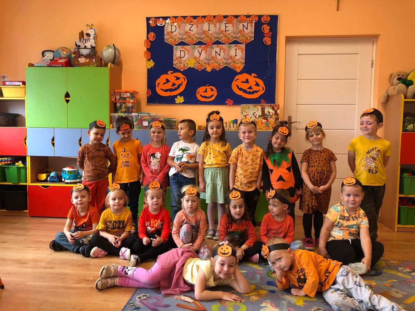 W naszym przedszkolu, jak co roku, nadchodzi taki czas, w którym wszelkie nasze działania kierujemy w stronę koloru pomarańczowego i 20.10 w czwartek obchodziliśmy „Dzień dyni”. Było u nas naprawdę „dyniowo”. Cały dzień przedszkolny, zajęcia edukacyjne, a nawet spożywanie posiłków, było związane z owym świętem. Przedszkolaki miały okazję poznać lub przypomnieć sobie o licznych zaletach dyni, sposobach jej wykorzystywania. W tym dniu wiele z naszych dzieci ubrane były w pomarańczowe ubranka. Przyniesione do przedszkola okazałe dynie, służyły dzieciom do sensorycznego poznania, a także do zabawy z wycinaniem różnych kształtów przy pomocy nauczyciela. Prace plastyczne tego dnia także upamiętniły obchodzone święto. Dzięki naszym wspaniałym paniom kucharkom mieliśmy okazję poznać dynię także pod względem smakowym i skosztować wspaniałego dyniowego ciasta oraz zupy dyniowej, co było wspaniałym zwieńczeniem „dyniowego dnia”.