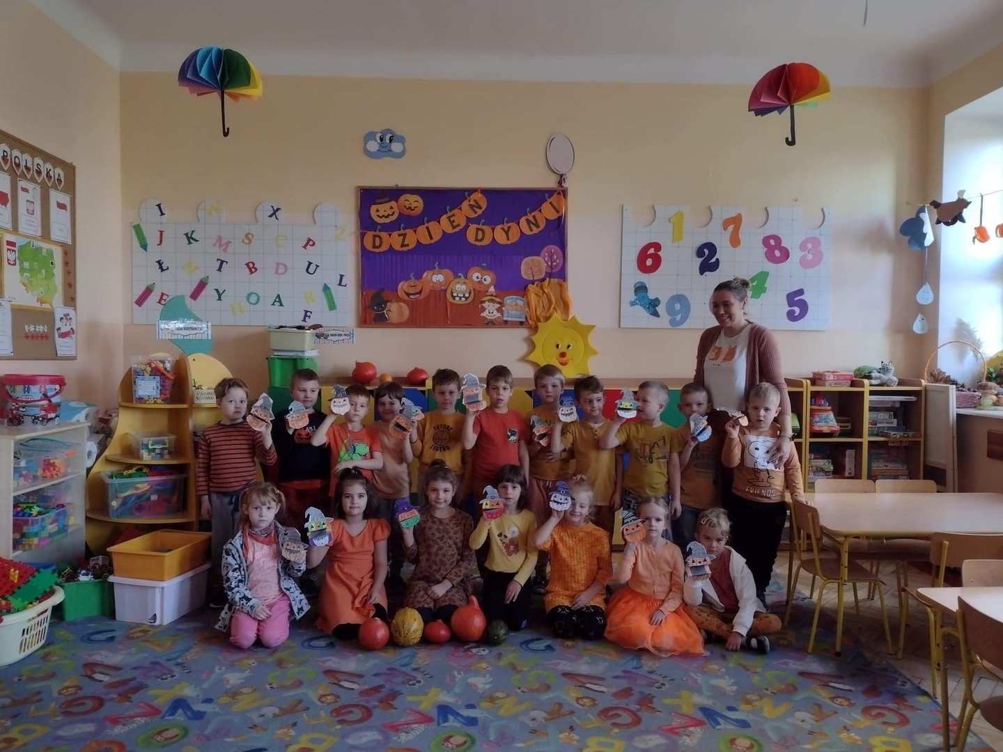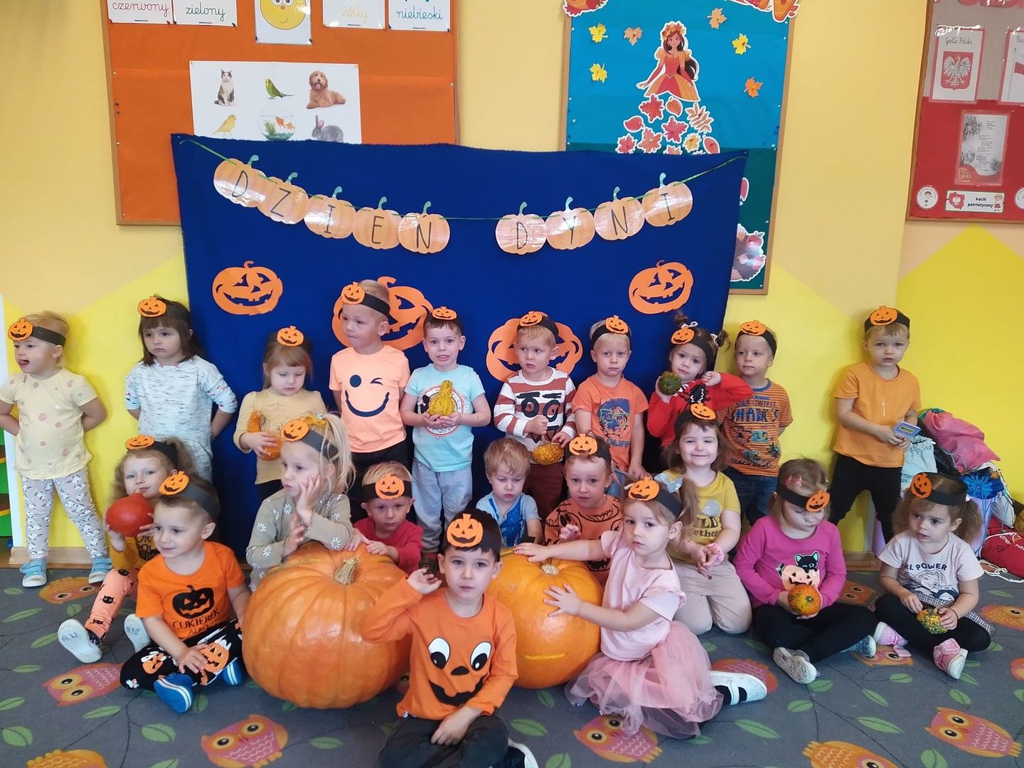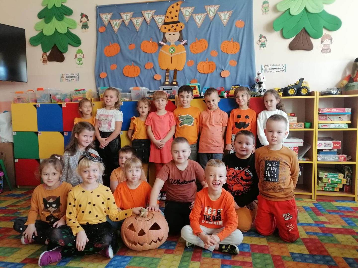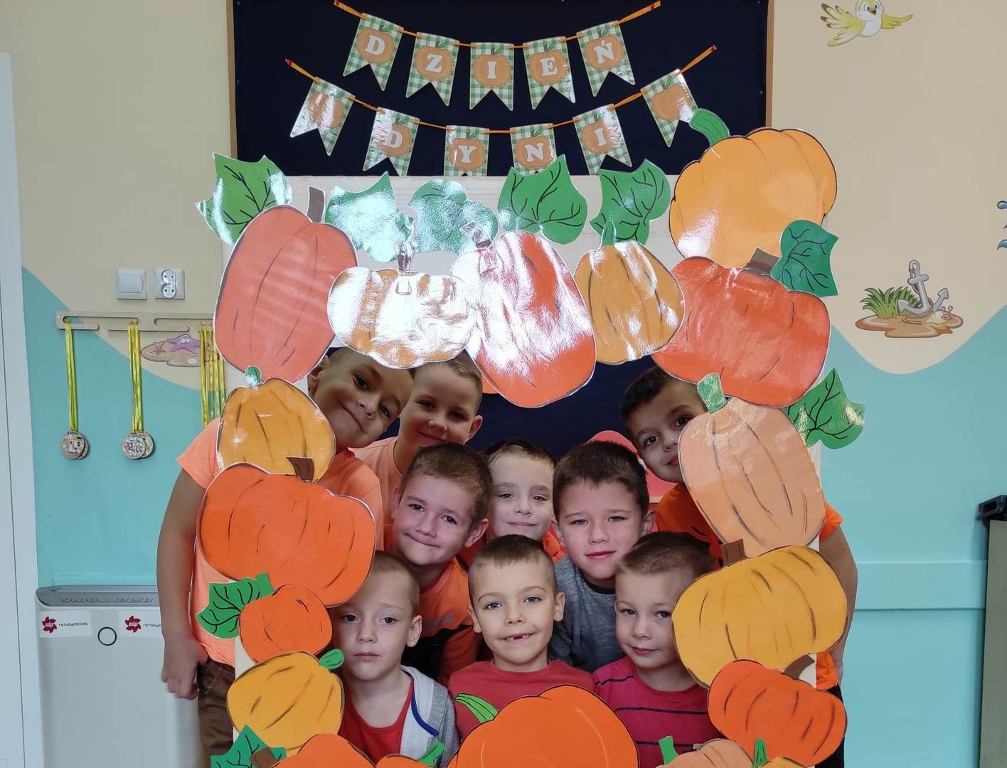 W naszym przedszkolu, jak co roku, nadchodzi taki czas, w którym wszelkie nasze działania kierujemy w stronę koloru pomarańczowego i 20.10 w czwartek obchodziliśmy „Dzień dyni”. Było u nas naprawdę „dyniowo”. Cały dzień przedszkolny, zajęcia edukacyjne, a nawet spożywanie posiłków, było związane z owym świętem. Przedszkolaki miały okazję poznać lub przypomnieć sobie o licznych zaletach dyni, sposobach jej wykorzystywania. W tym dniu wiele z naszych dzieci ubrane były w pomarańczowe ubranka. Przyniesione do przedszkola okazałe dynie, służyły dzieciom do sensorycznego poznania, a także do zabawy z wycinaniem różnych kształtów przy pomocy nauczyciela. Prace plastyczne tego dnia także upamiętniły obchodzone święto. Dzięki naszym wspaniałym paniom kucharkom mieliśmy okazję poznać dynię także pod względem smakowym i skosztować wspaniałego dyniowego ciasta oraz zupy dyniowej, co było wspaniałym zwieńczeniem „dyniowego dnia”.