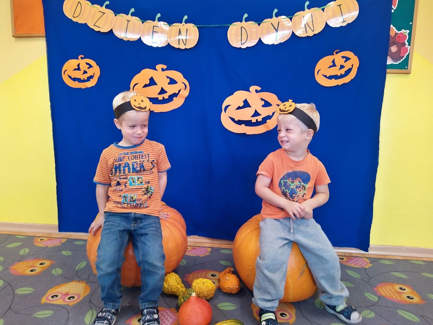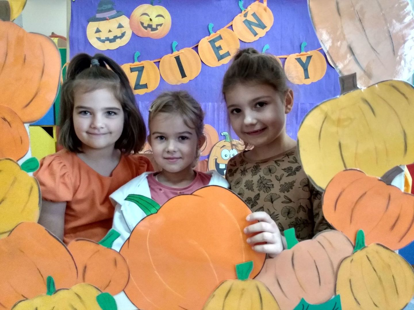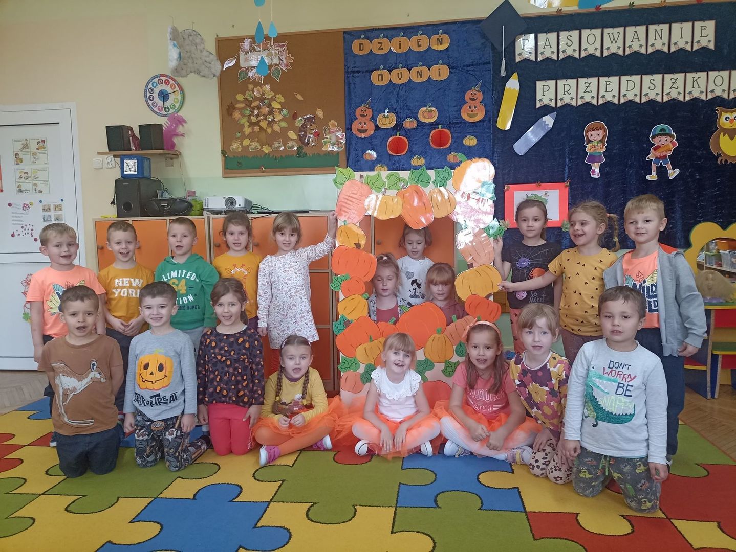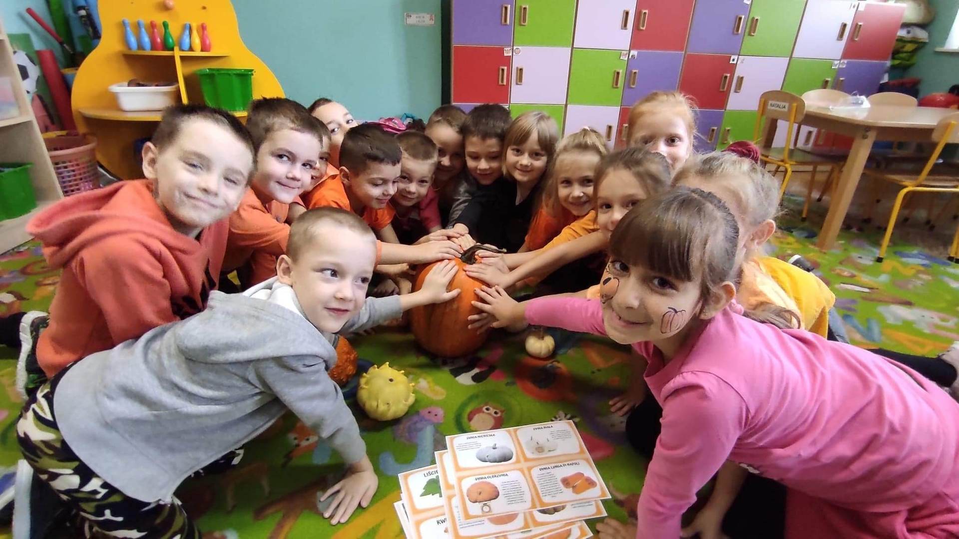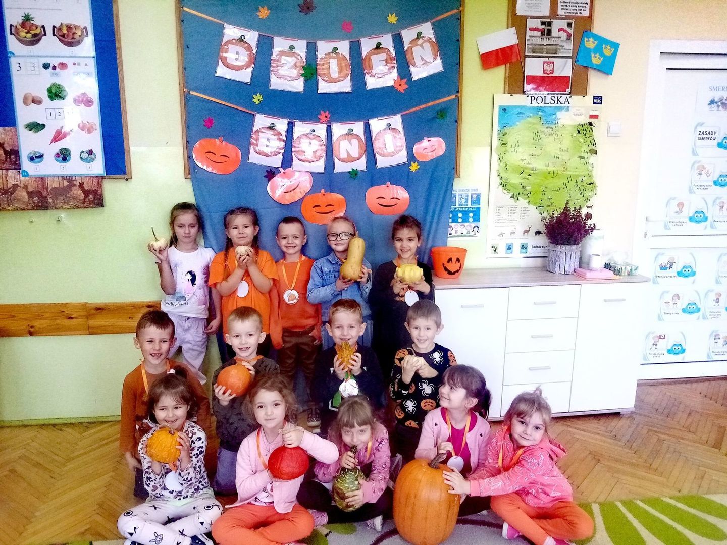 W naszym przedszkolu, jak co roku, nadchodzi taki czas, w którym wszelkie nasze działania kierujemy w stronę koloru pomarańczowego i 20.10 w czwartek obchodziliśmy „Dzień dyni”. Było u nas naprawdę „dyniowo”. Cały dzień przedszkolny, zajęcia edukacyjne, a nawet spożywanie posiłków, było związane z owym świętem. Przedszkolaki miały okazję poznać lub przypomnieć sobie o licznych zaletach dyni, sposobach jej wykorzystywania. W tym dniu wiele z naszych dzieci ubrane były w pomarańczowe ubranka. Przyniesione do przedszkola okazałe dynie, służyły dzieciom do sensorycznego poznania, a także do zabawy z wycinaniem różnych kształtów przy pomocy nauczyciela. Prace plastyczne tego dnia także upamiętniły obchodzone święto. Dzięki naszym wspaniałym paniom kucharkom mieliśmy okazję poznać dynię także pod względem smakowym i skosztować wspaniałego dyniowego ciasta oraz zupy dyniowej, co było wspaniałym zwieńczeniem „dyniowego dnia”.