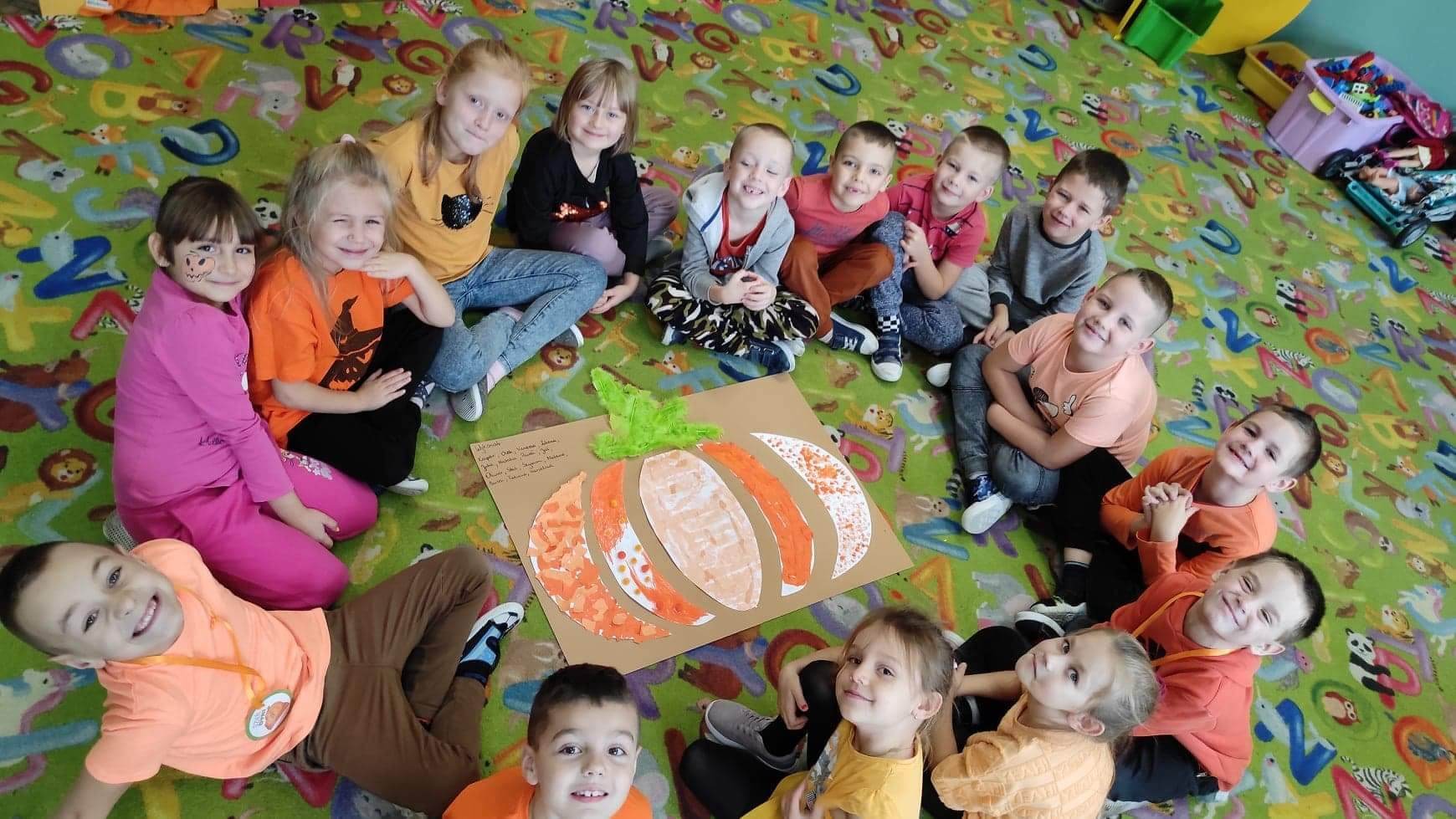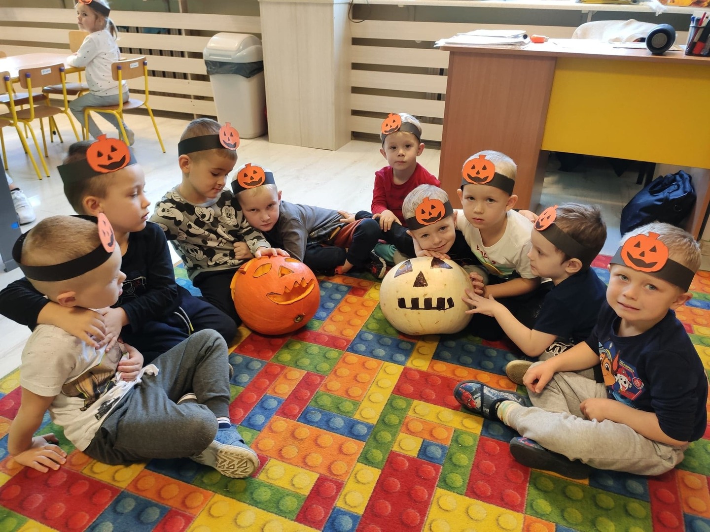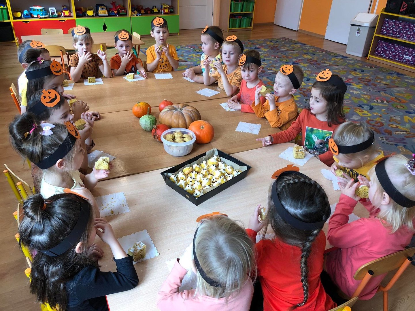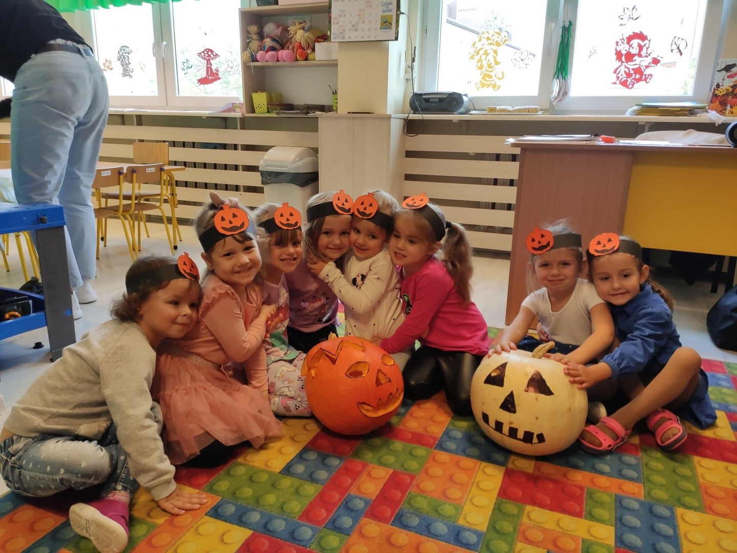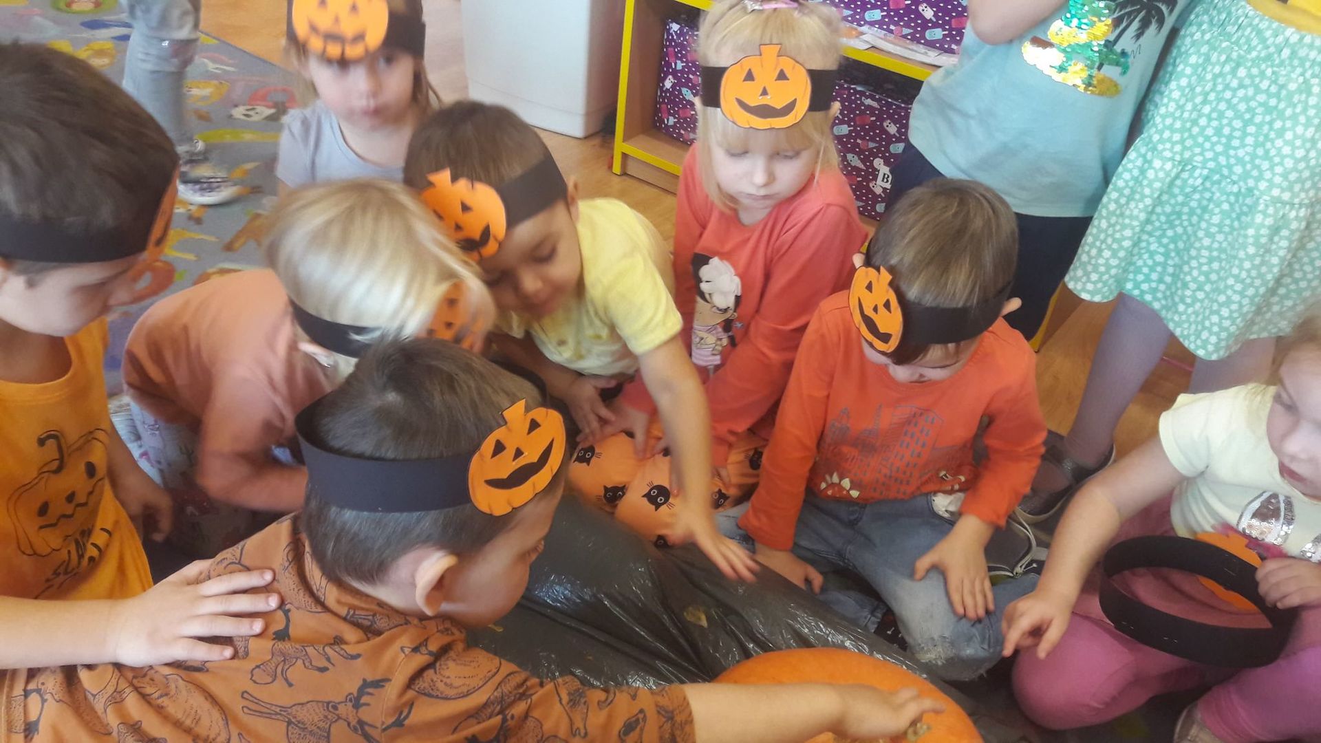 W naszym przedszkolu, jak co roku, nadchodzi taki czas, w którym wszelkie nasze działania kierujemy w stronę koloru pomarańczowego i 20.10 w czwartek obchodziliśmy „Dzień dyni”. Było u nas naprawdę „dyniowo”. Cały dzień przedszkolny, zajęcia edukacyjne, a nawet spożywanie posiłków, było związane z owym świętem. Przedszkolaki miały okazję poznać lub przypomnieć sobie o licznych zaletach dyni, sposobach jej wykorzystywania. W tym dniu wiele z naszych dzieci ubrane były w pomarańczowe ubranka. Przyniesione do przedszkola okazałe dynie, służyły dzieciom do sensorycznego poznania, a także do zabawy z wycinaniem różnych kształtów przy pomocy nauczyciela. Prace plastyczne tego dnia także upamiętniły obchodzone święto. Dzięki naszym wspaniałym paniom kucharkom mieliśmy okazję poznać dynię także pod względem smakowym i skosztować wspaniałego dyniowego ciasta oraz zupy dyniowej, co było wspaniałym zwieńczeniem „dyniowego dnia”.