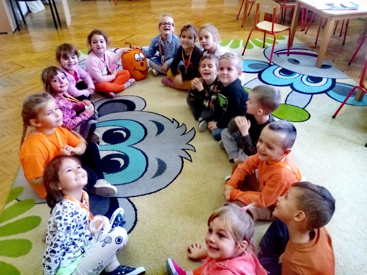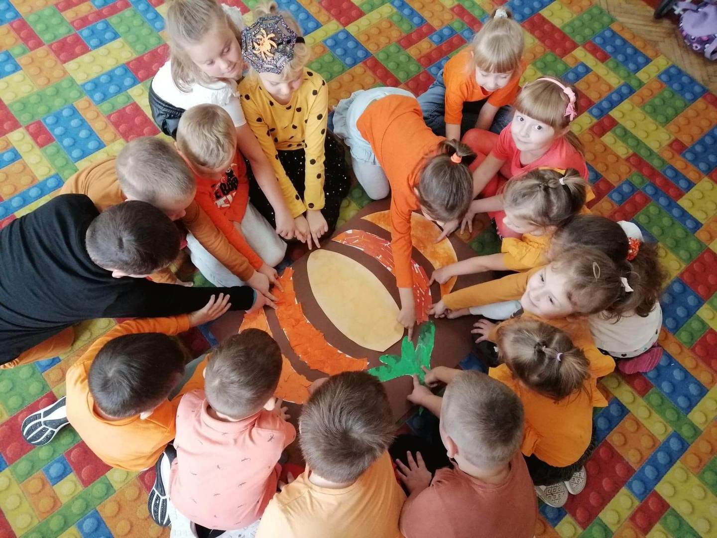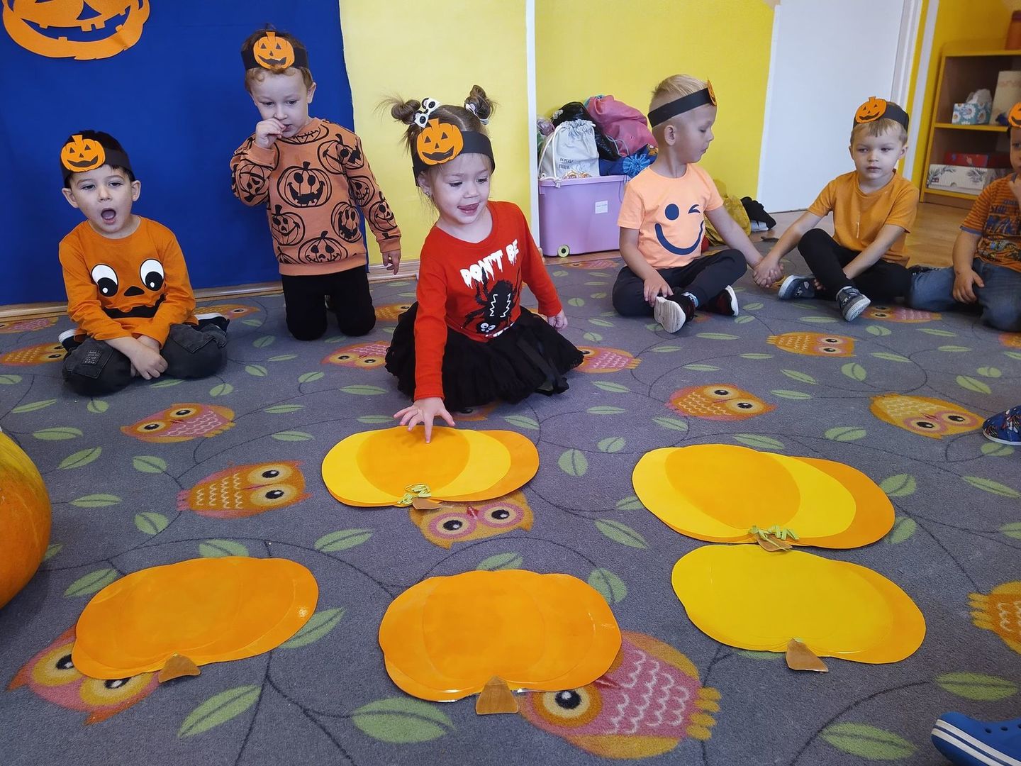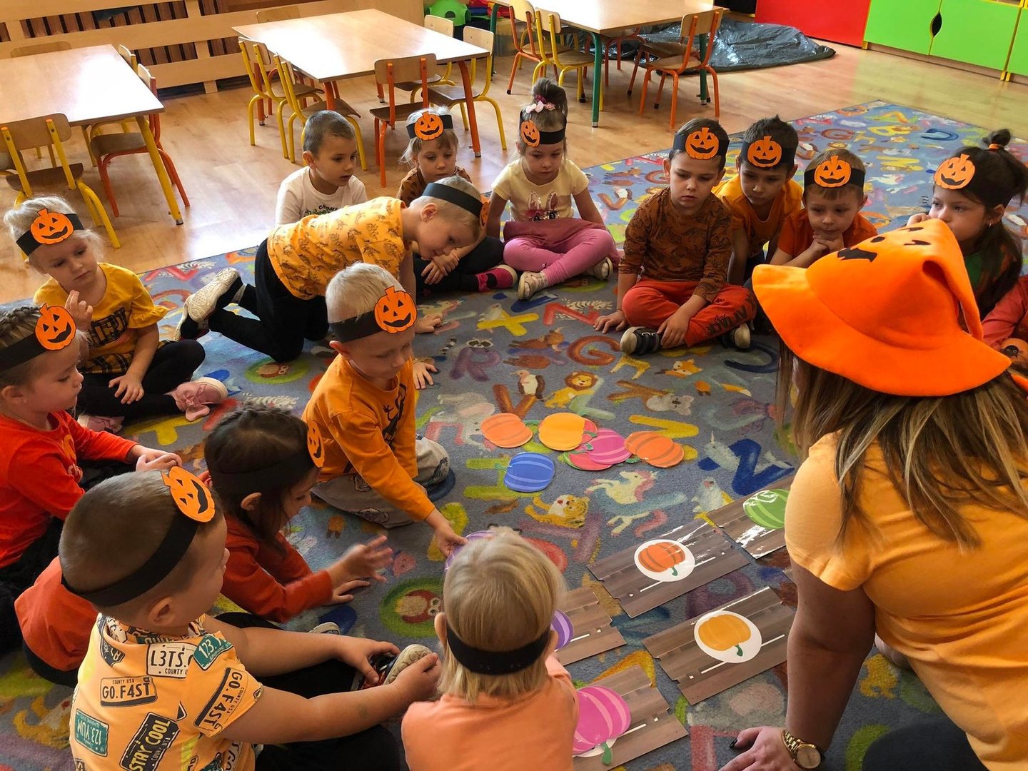 W naszym przedszkolu, jak co roku, nadchodzi taki czas, w którym wszelkie nasze działania kierujemy w stronę koloru pomarańczowego i 20.10 w czwartek obchodziliśmy „Dzień dyni”. Było u nas naprawdę „dyniowo”. Cały dzień przedszkolny, zajęcia edukacyjne, a nawet spożywanie posiłków, było związane z owym świętem. Przedszkolaki miały okazję poznać lub przypomnieć sobie o licznych zaletach dyni, sposobach jej wykorzystywania. W tym dniu wiele z naszych dzieci ubrane były w pomarańczowe ubranka. Przyniesione do przedszkola okazałe dynie, służyły dzieciom do sensorycznego poznania, a także do zabawy z wycinaniem różnych kształtów przy pomocy nauczyciela. Prace plastyczne tego dnia także upamiętniły obchodzone święto. Dzięki naszym wspaniałym paniom kucharkom mieliśmy okazję poznać dynię także pod względem smakowym i skosztować wspaniałego dyniowego ciasta oraz zupy dyniowej, co było wspaniałym zwieńczeniem „dyniowego dnia”.