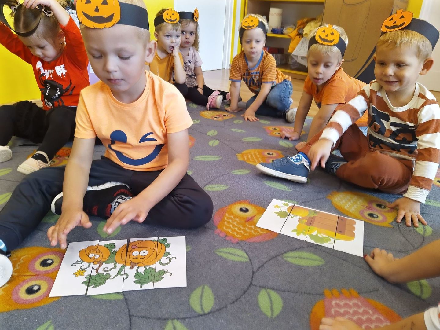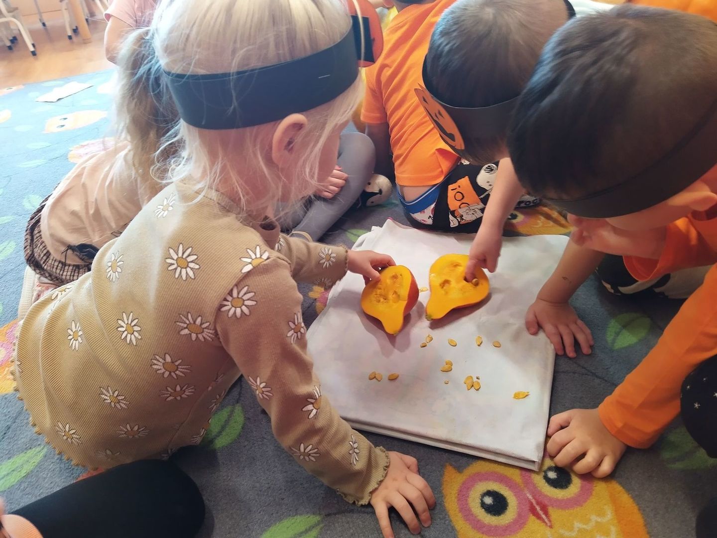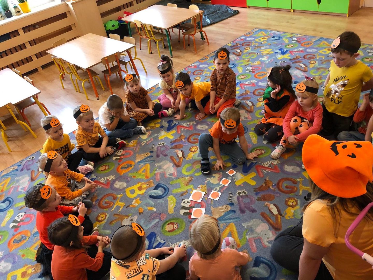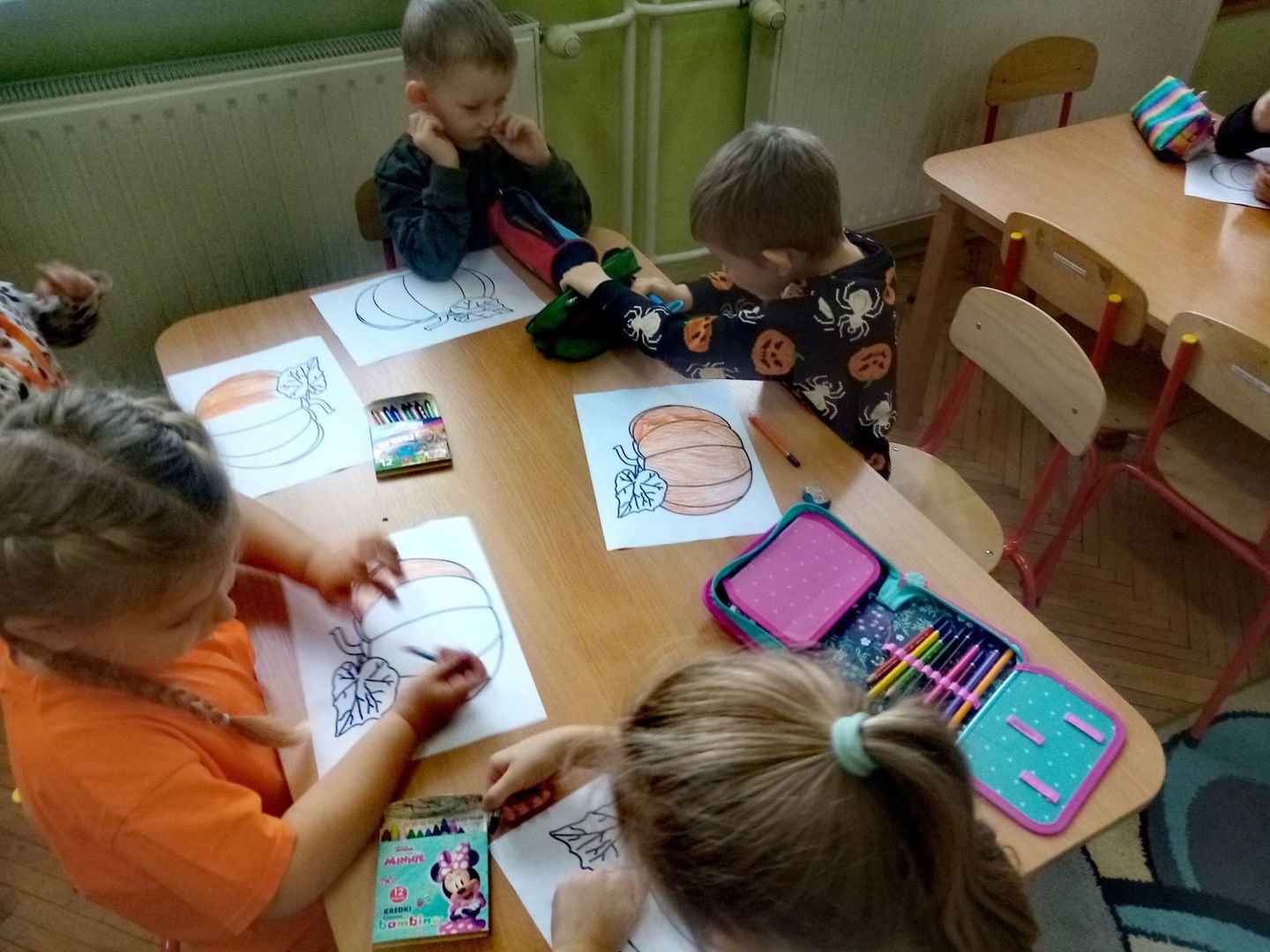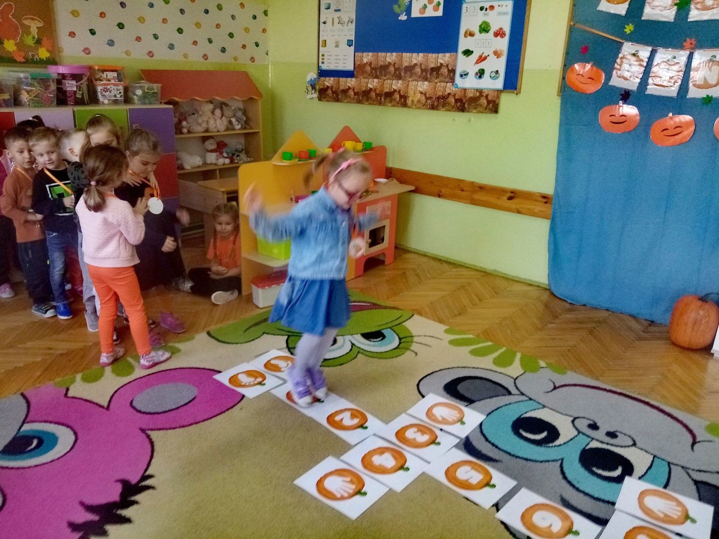 W naszym przedszkolu, jak co roku, nadchodzi taki czas, w którym wszelkie nasze działania kierujemy w stronę koloru pomarańczowego i 20.10 w czwartek obchodziliśmy „Dzień dyni”. Było u nas naprawdę „dyniowo”. Cały dzień przedszkolny, zajęcia edukacyjne, a nawet spożywanie posiłków, było związane z owym świętem. Przedszkolaki miały okazję poznać lub przypomnieć sobie o licznych zaletach dyni, sposobach jej wykorzystywania. W tym dniu wiele z naszych dzieci ubrane były w pomarańczowe ubranka. Przyniesione do przedszkola okazałe dynie, służyły dzieciom do sensorycznego poznania, a także do zabawy z wycinaniem różnych kształtów przy pomocy nauczyciela. Prace plastyczne tego dnia także upamiętniły obchodzone święto. Dzięki naszym wspaniałym paniom kucharkom mieliśmy okazję poznać dynię także pod względem smakowym i skosztować wspaniałego dyniowego ciasta oraz zupy dyniowej, co było wspaniałym zwieńczeniem „dyniowego dnia”.