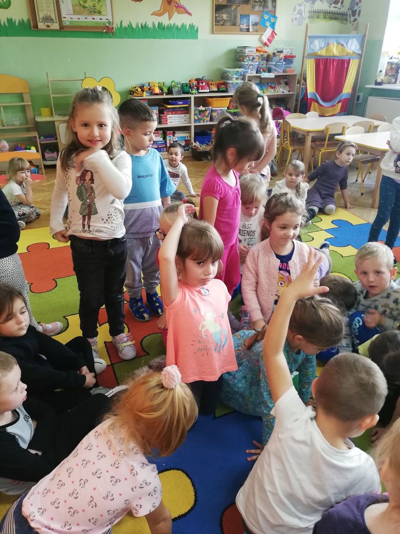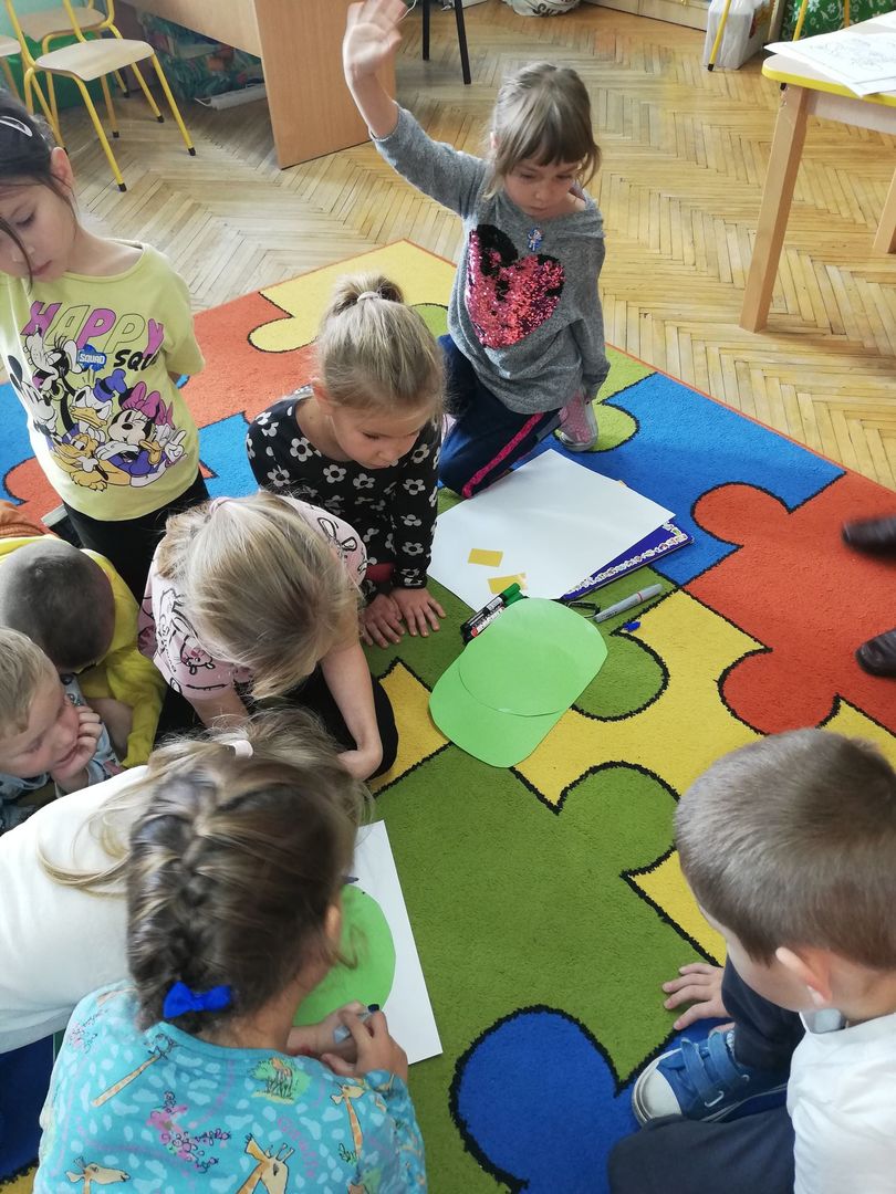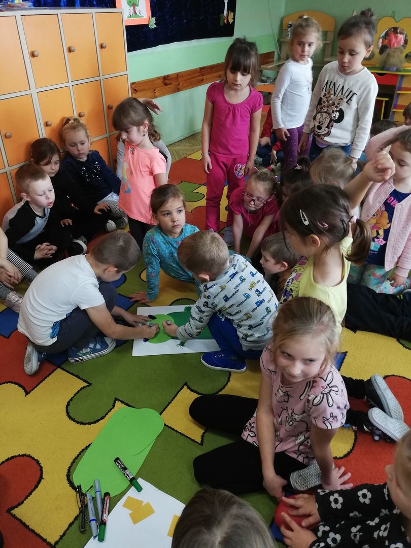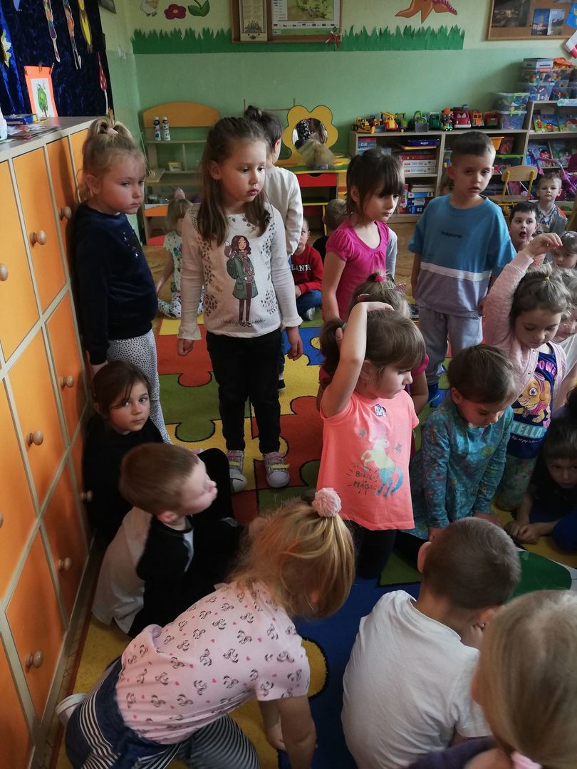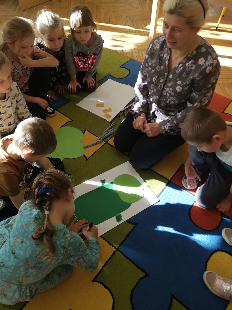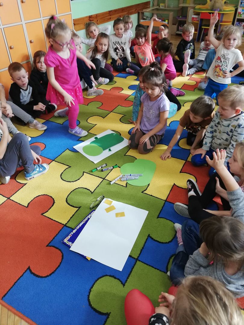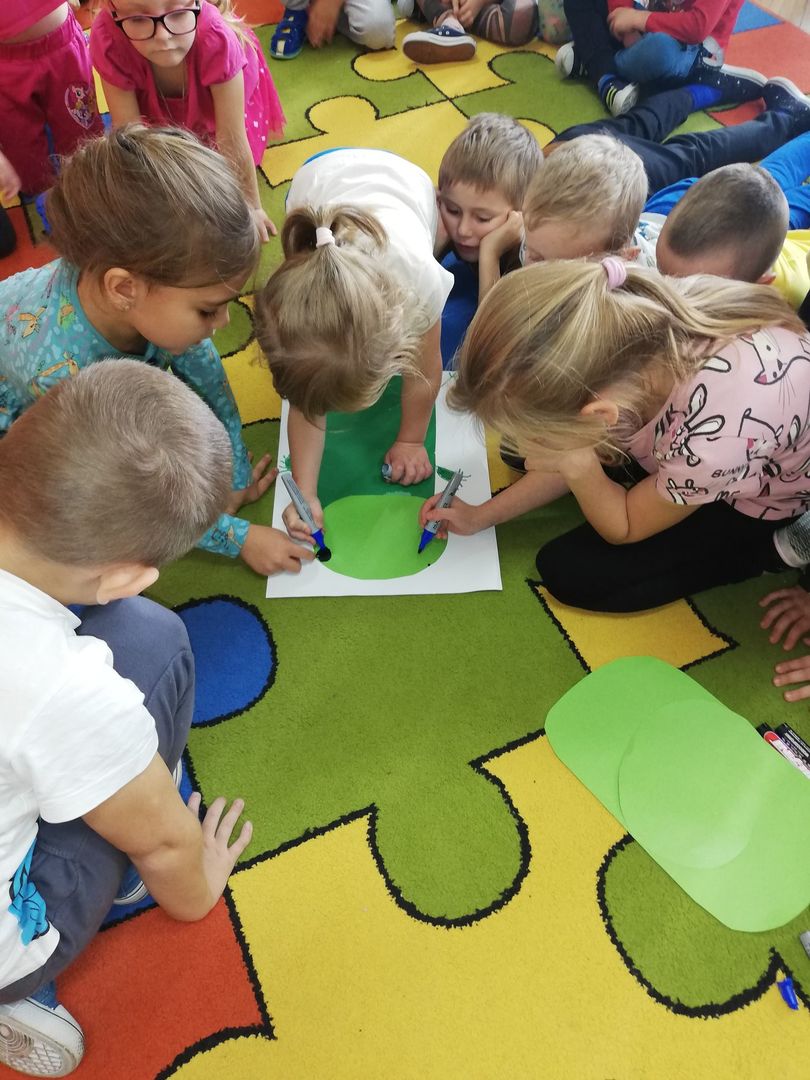 Dzieci z grup "Muchomorki" i "Smerfy" spotkały się 26. X. z panią Małgosią z MGBP w Iłży. Pani bibliotekarka zaprezentowala teatrzyk kamishibai " Bajka o Żabkach". Po jego obejrzeniu dzieci wykonywały różne zadania, kolorowały rysunki, ćwiczyły. Obcowały z literaturą przekazaną w ciekawej formie. Spotkanie przyczyniło się do rozwijania u dzieci wielu kompetencji kluczowych.