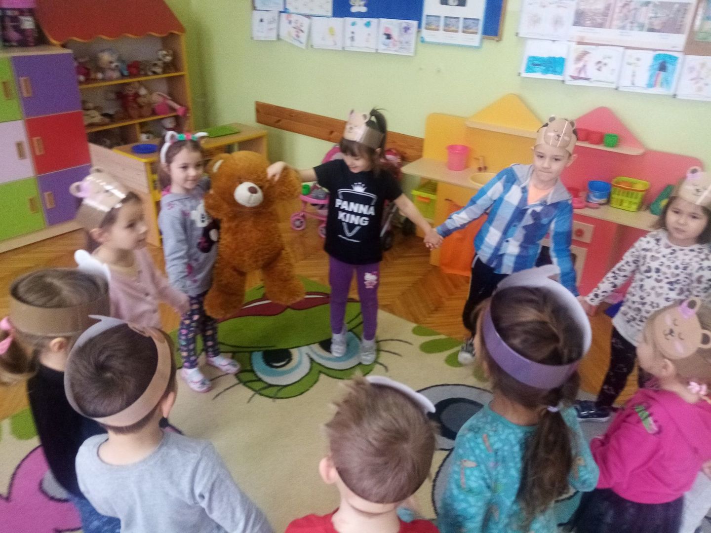 25.11 w naszym przedszkolu obchodziliśmy „Dzień Pluszowego Misia”. W tym dniu dzieci mogły przynieść ze sobą swojego ulubionego misia, a dzięki temu podzielić się z innymi swoimi uczuciami do ukochanej zabawki, pokazać jaka jest dla nich ważna, jak potrafią się nią opiekować. Było to naprawdę istotne dla naszych małych podopiecznych, gdyż mogli podzielić się w przedszkolu cząstką swojego domowego świata. Działania nauczycieli w tym dniu także były skierowane na podkreślenie wagi tej niezwykłej zabawki, która towarzyszy nam od tak bardzo odległych czasów, jako symbol dzieciństwa. Wychowawcy zorganizowali dzieciom wspaniałe zabawy z ulubionymi maskotkami, pomogli dzieciom wykonać prace plastyczne z wizerunkiem misia, a także opowiedzieli o najbardziej słynnych misiach, jakie mieliśmy okazje poznać w literaturze, bajkach i opowieściach. W tym dniu nawet podwieczorek był misiowy oraz niezwykle smaczny. Przedszkolaki po dniu pełnym wrażeń wróciły do swoich domów nie tylko ze swoją zabawką, ale także z upominkami przygotowanymi przez panie – medalami, odznakami, dyplomami – które miejmy nadzieję, będą im przypominały o ważnym wydarzeniu, jakim jest „Dzień Pluszowego Misia”.