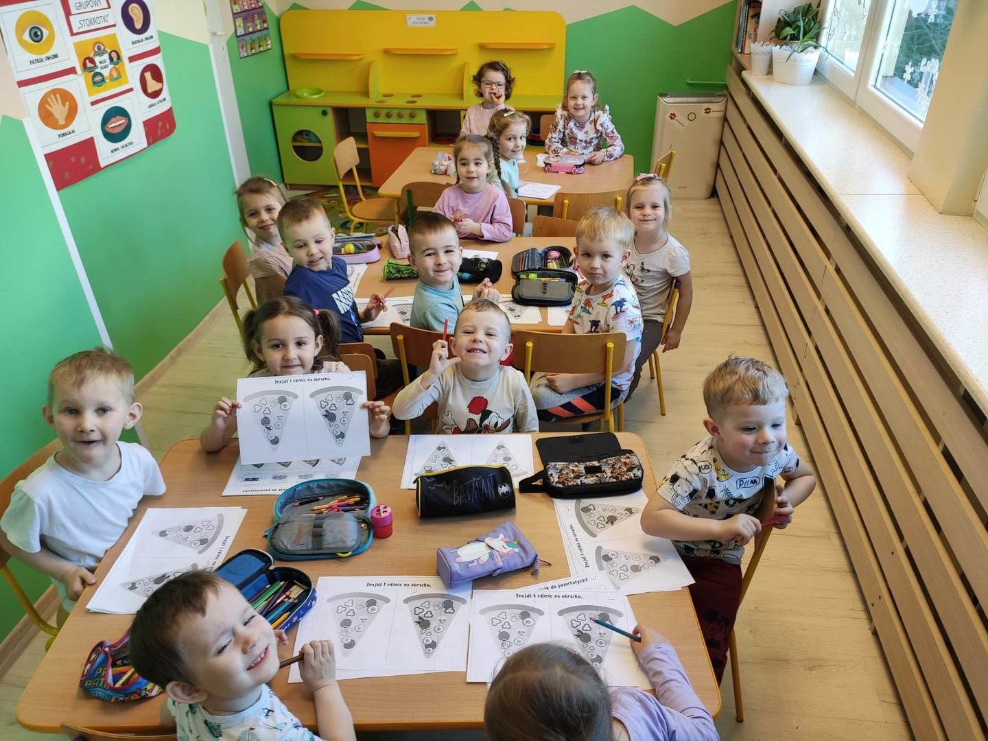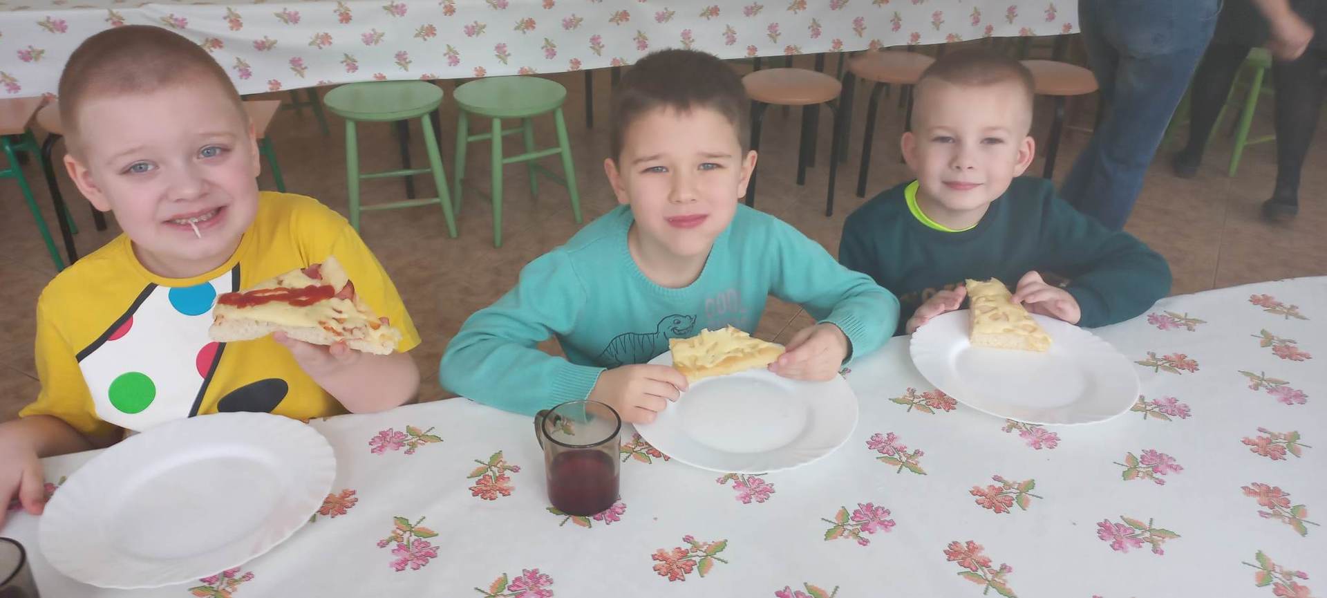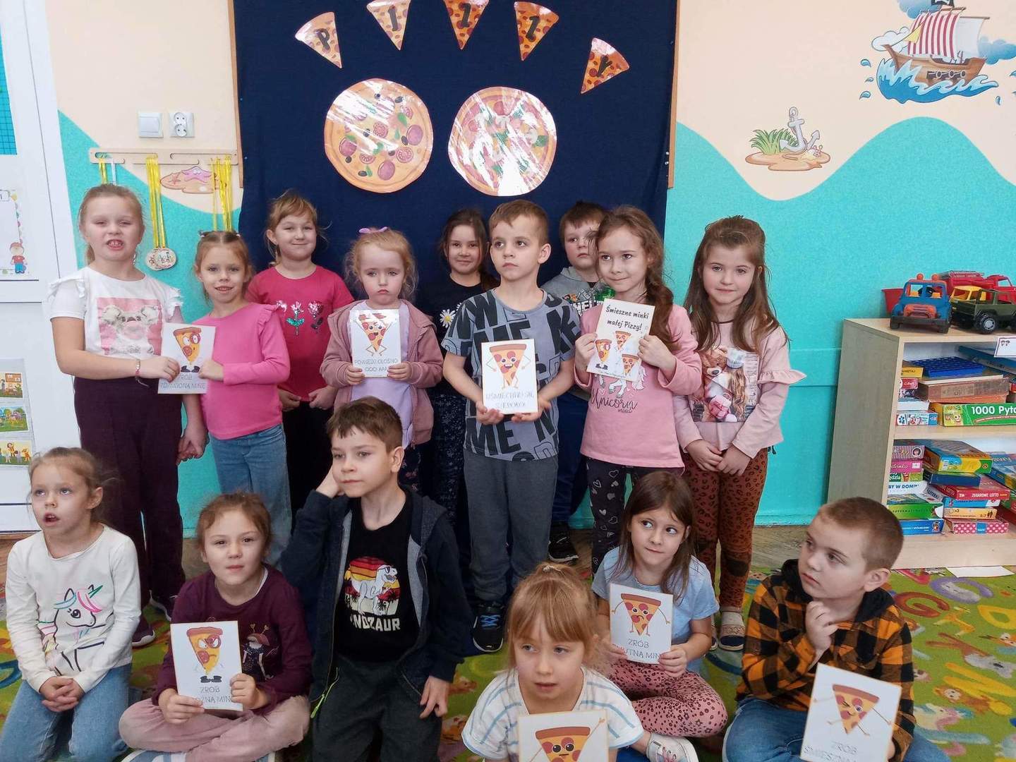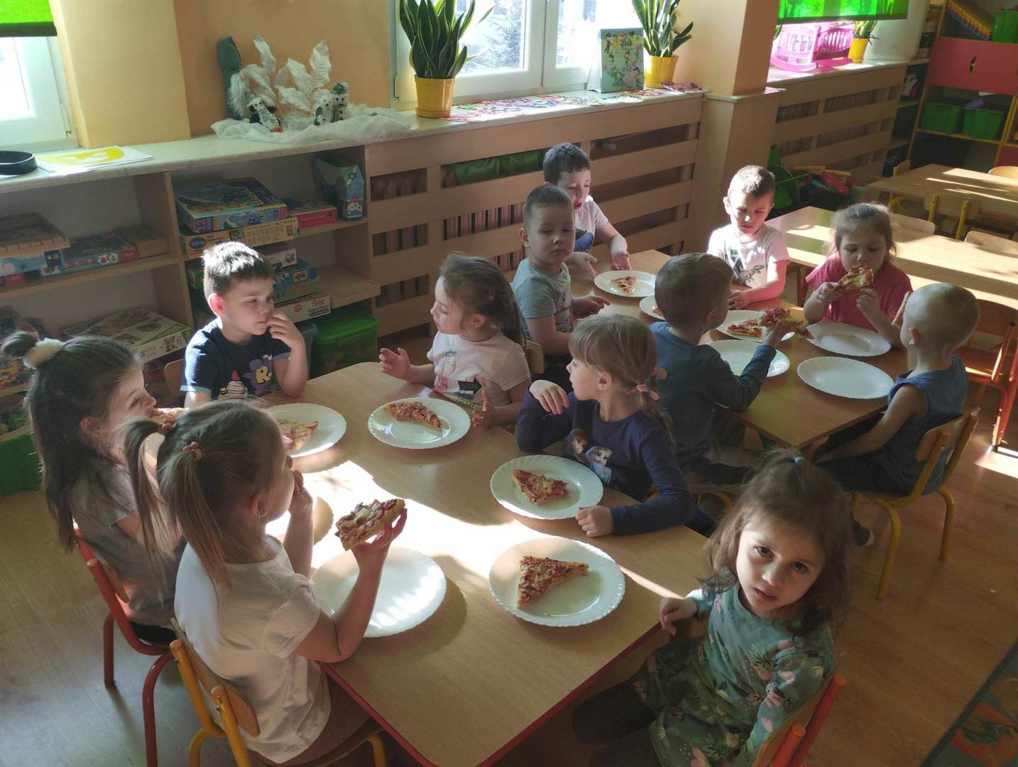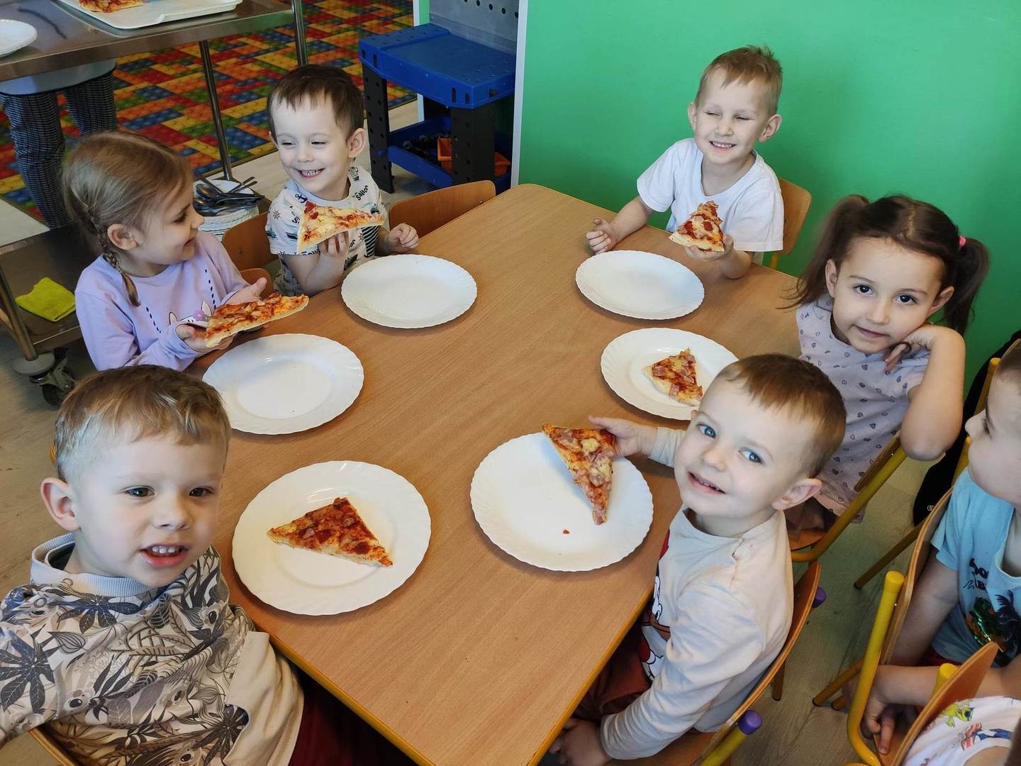 Jedną z najpopularniejszych potraw na świecie jest z pewnością pizza. Pizzę uwielbiają zarówno dorośli, jak też i dzieci, mając przy tym swoje ulubione rodzaje i składniki. 9 lutego wszystkie grupy przedszkolne świętowały Dzień Pizzy – był to oczywiście bardzo przyjemny dzień. W naszych salach zrobiło się iście „pizzowo” – mogliśmy zobaczyć piękne kolorowe dekoracje, dzieci wykonywały pizzę z papieru, plakaty, brały udział w zabawach o tejże tematyce, co wszystkich wprawiło w doskonałe humory. Nauczyciele wszelkie swoje działania skupili przede wszystkim na podkreśleniu zdrowego sposobu przyrządzenia pizzy, doboru odpowiednich składników i na tym, że pizza to danie, które też w pewien sposób łączy tradycje i pokolenia. Najmilszym zaskoczeniem okazała się pizza na drugie danie obiadowe, panie kucharki przyrządziły dzieciom przepyszną niespodziankę, która zniknęła z talerzy w mgnieniu oka