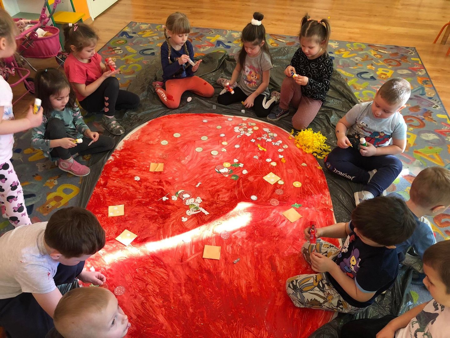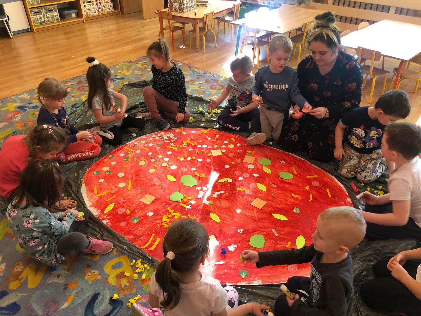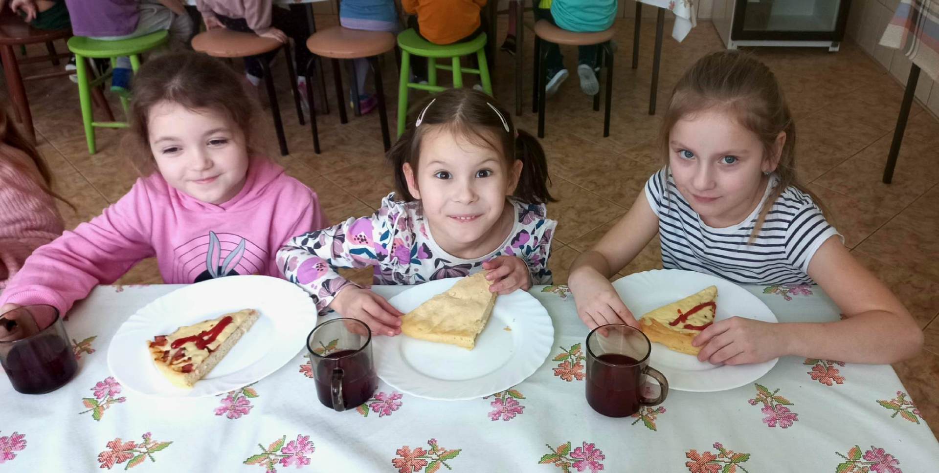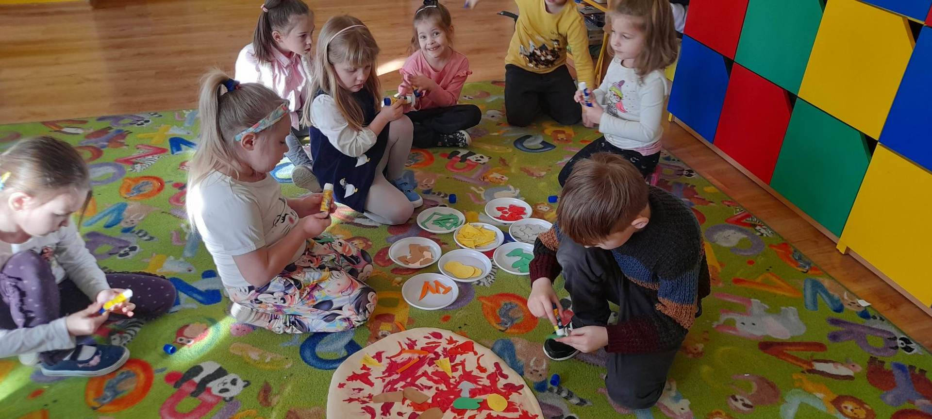 Jedną z najpopularniejszych potraw na świecie jest z pewnością pizza. Pizzę uwielbiają zarówno dorośli, jak też i dzieci, mając przy tym swoje ulubione rodzaje i składniki. 9 lutego wszystkie grupy przedszkolne świętowały Dzień Pizzy – był to oczywiście bardzo przyjemny dzień. W naszych salach zrobiło się iście „pizzowo” – mogliśmy zobaczyć piękne kolorowe dekoracje, dzieci wykonywały pizzę z papieru, plakaty, brały udział w zabawach o tejże tematyce, co wszystkich wprawiło w doskonałe humory. Nauczyciele wszelkie swoje działania skupili przede wszystkim na podkreśleniu zdrowego sposobu przyrządzenia pizzy, doboru odpowiednich składników i na tym, że pizza to danie, które też w pewien sposób łączy tradycje i pokolenia. Najmilszym zaskoczeniem okazała się pizza na drugie danie obiadowe, panie kucharki przyrządziły dzieciom przepyszną niespodziankę, która zniknęła z talerzy w mgnieniu oka